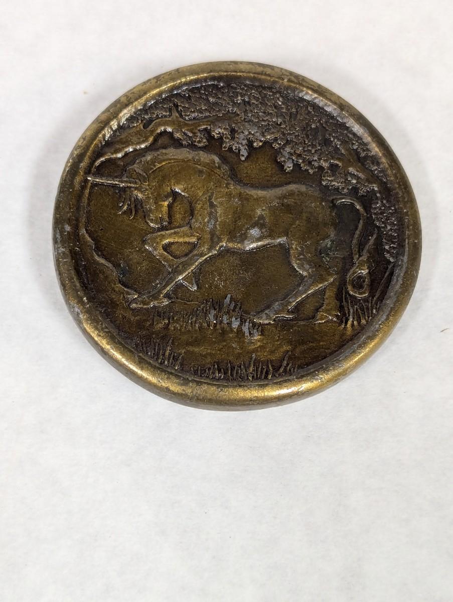 Unicorn Brass Belt Buckle 1976 Indiana Metal Craft