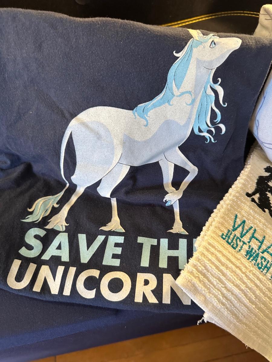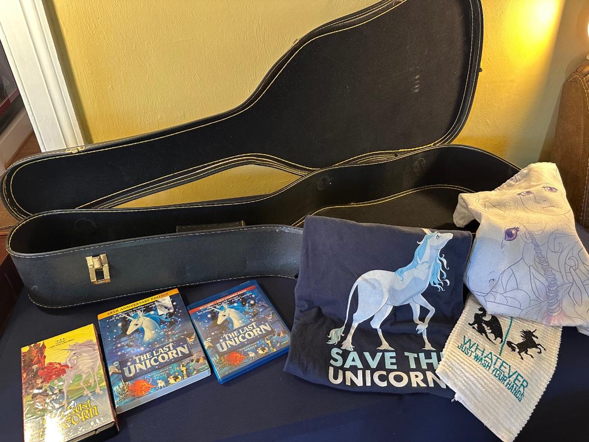 GUITAR CASE, UNICORN TEA TOWEL, THE LAST UNICORN MOVIE LOT
