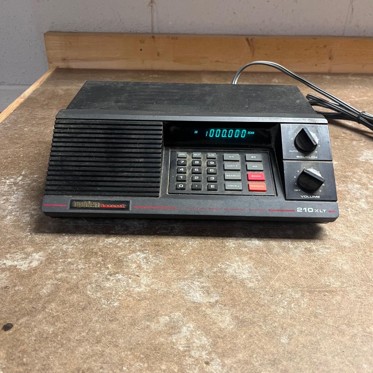 Lot includes a Uniden Bearcat 40 channel scanning radio with operating instructions. Radio powered on when plugged in and measures 20.5” x 8” x 3.5”H.