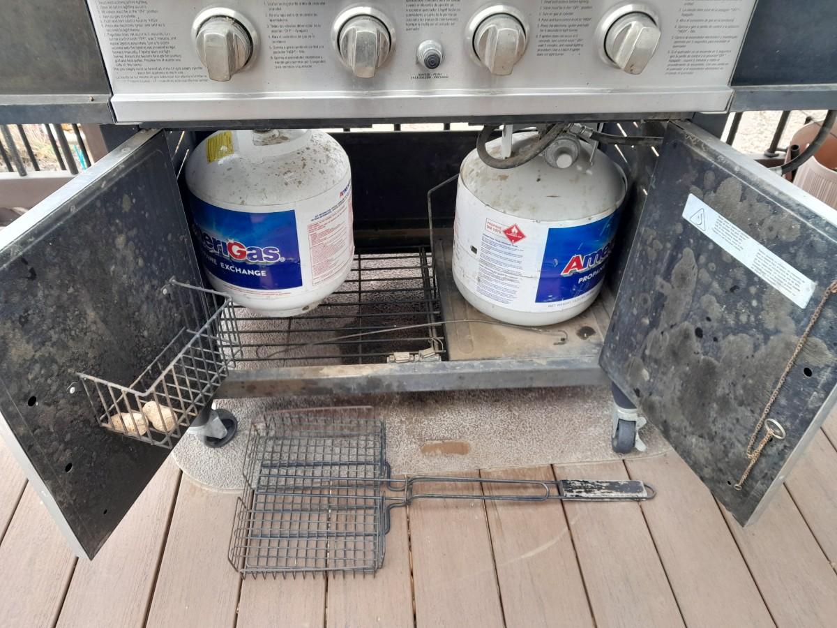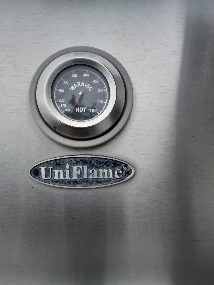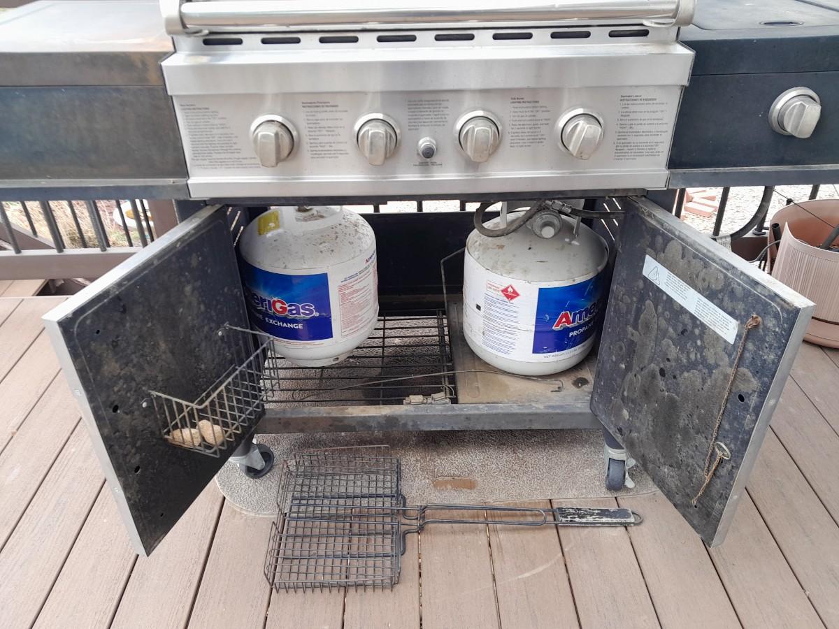 UNIFLAME STAINLESS STEEL BARBEQUE GRILL WITH TWO PROPANE TANKS