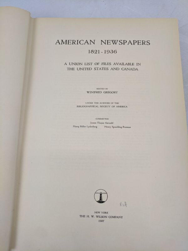 Union List of Newspapers, 1821-1936