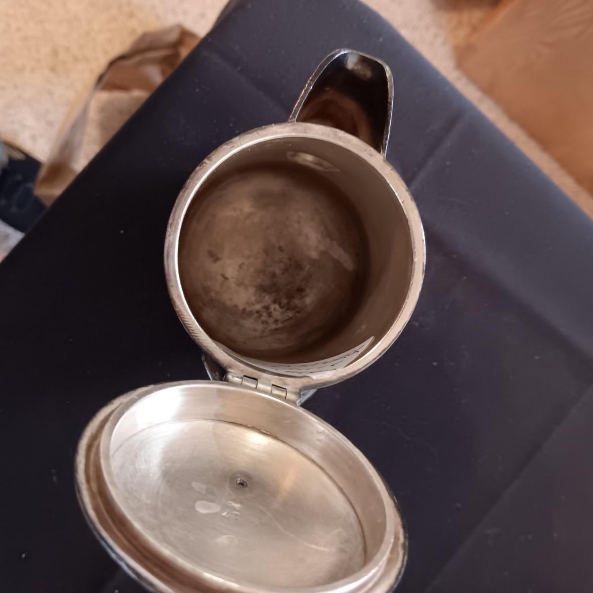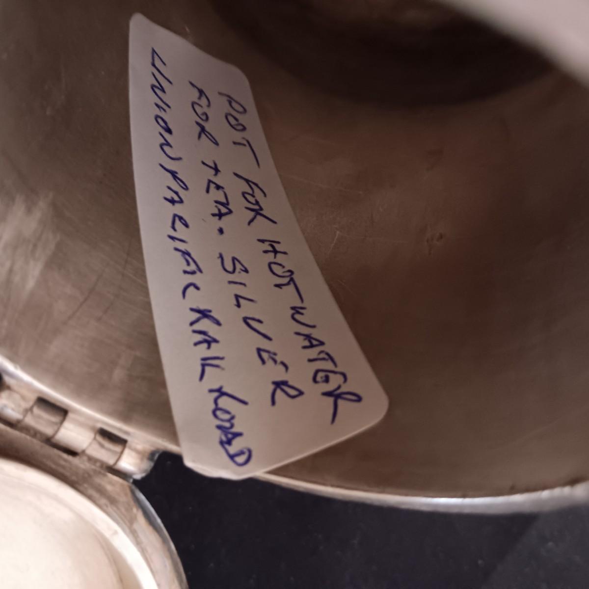 UNION PACIFIC RAILROAD TEAPOT, PLATED CUP WITH INSERT AND TRAIN WHISTLE