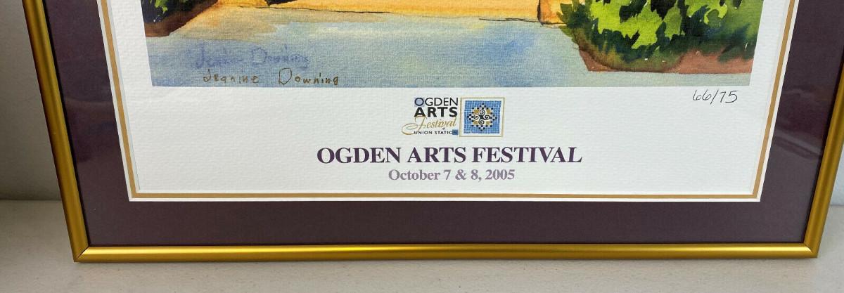 Professionally framed and under glass here is a limited edition print signed by the artist Jeanine Downing...The historic Union Train Station is the subject for the Ogden Arts Festival (Utah) from October, 2005...Excellent condition...Numbered 66/75...Frame measures 22 x 16.25"..The image is 19 x 13"...Offered with no reserve...