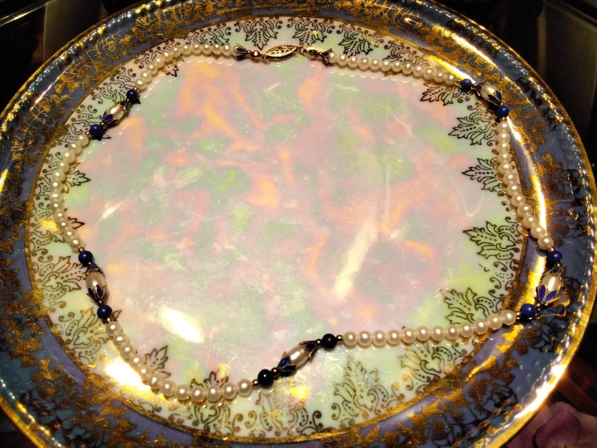 Unique 17" 4mm Pearl necklace with gorgeous lapis lazuli accents 14k gf