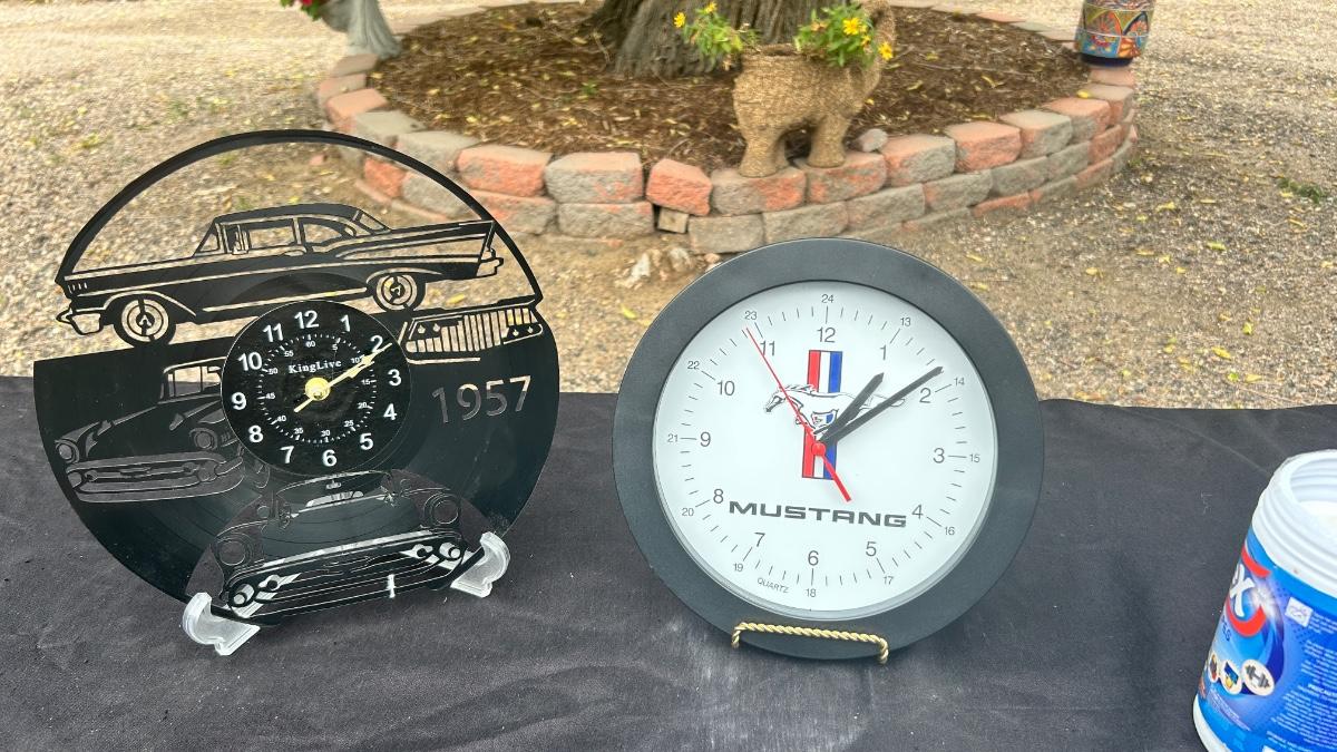 UNIQUE LASER CUT RECORD ALBUM QUARTZ WALL CLOCK AND FORD MUSTANG WALL CLOCK