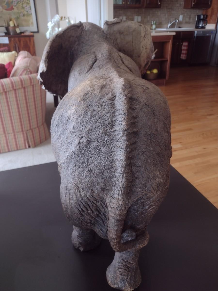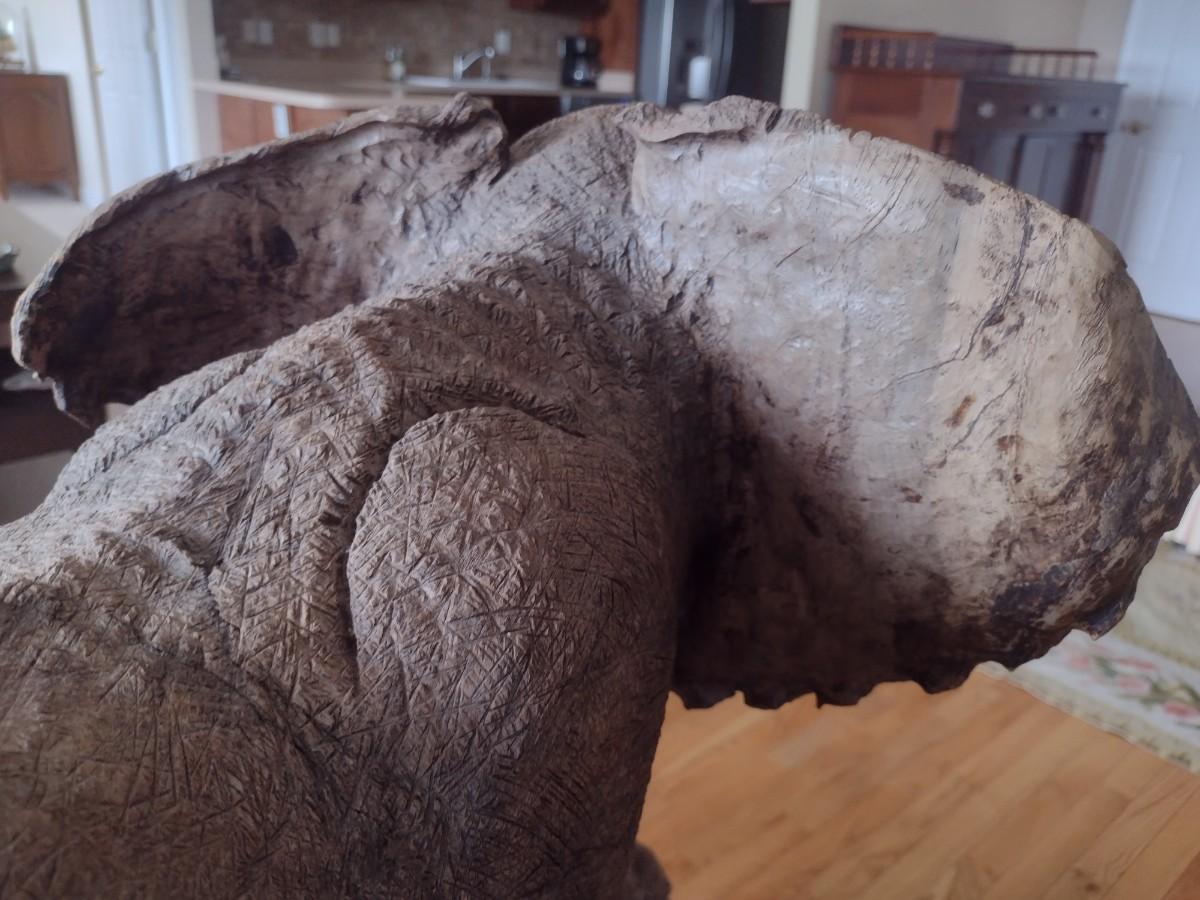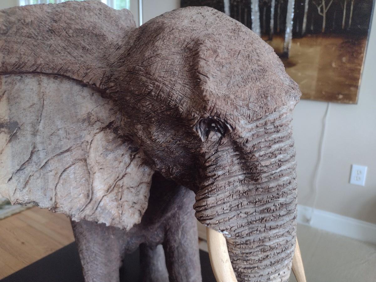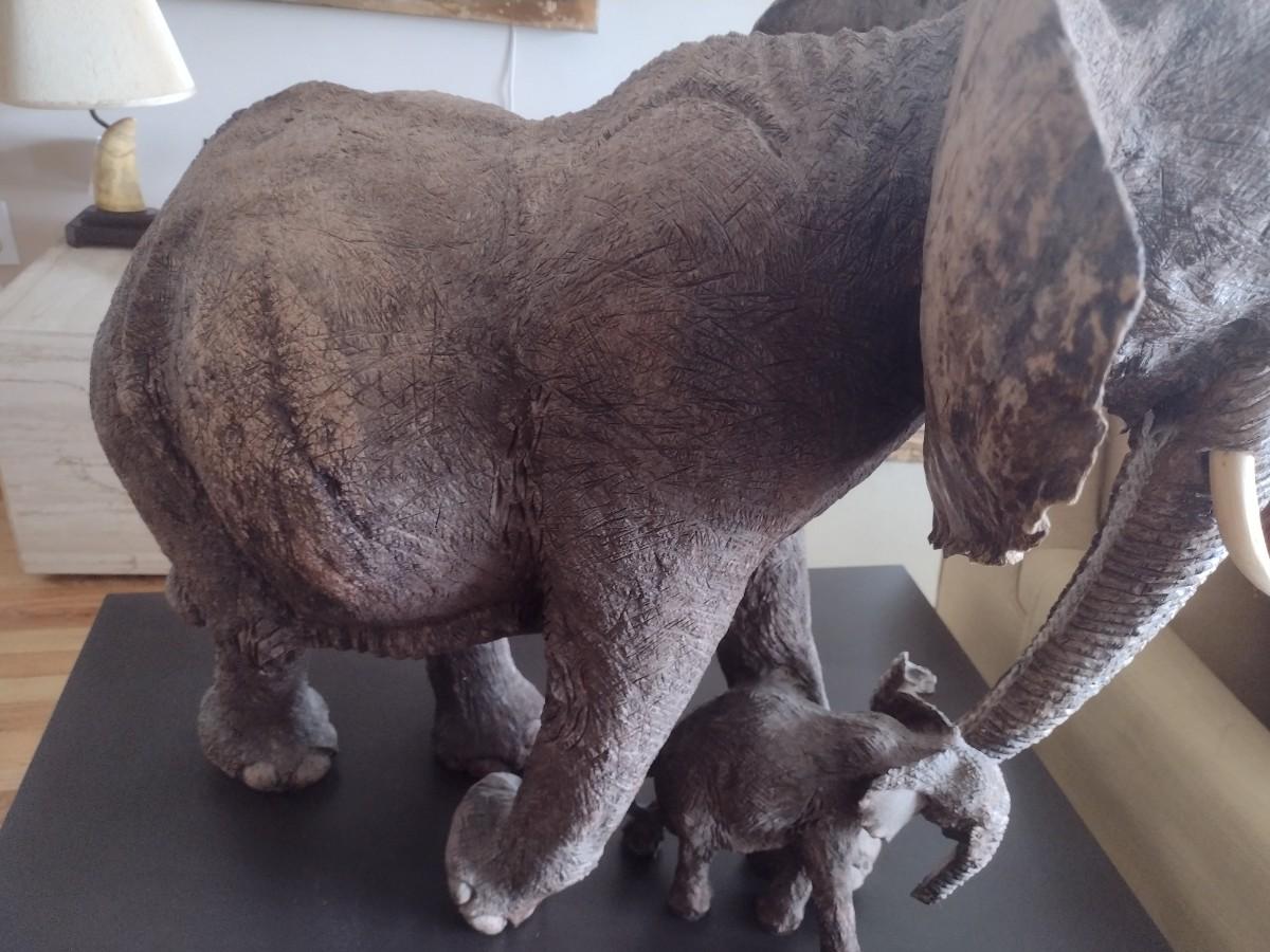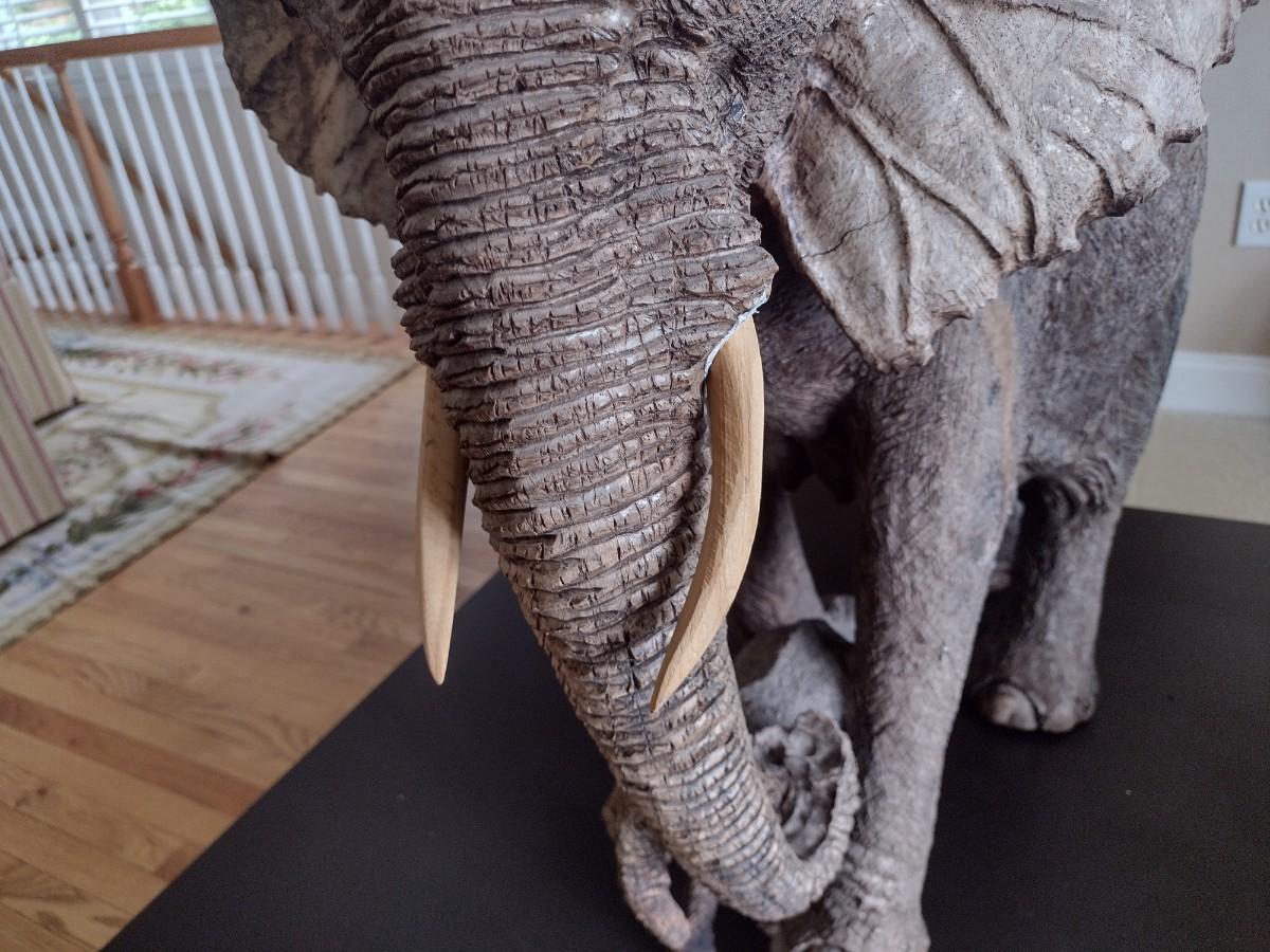 Unique and Rare Large Ironwood Elephant and Calf Carving South African Import Flawless this is an extremely impressive piece and cost over $3000 to purchase and import from South Africa in 2016. Weighs at least 75lbs. Wood tusks. No ivory content.