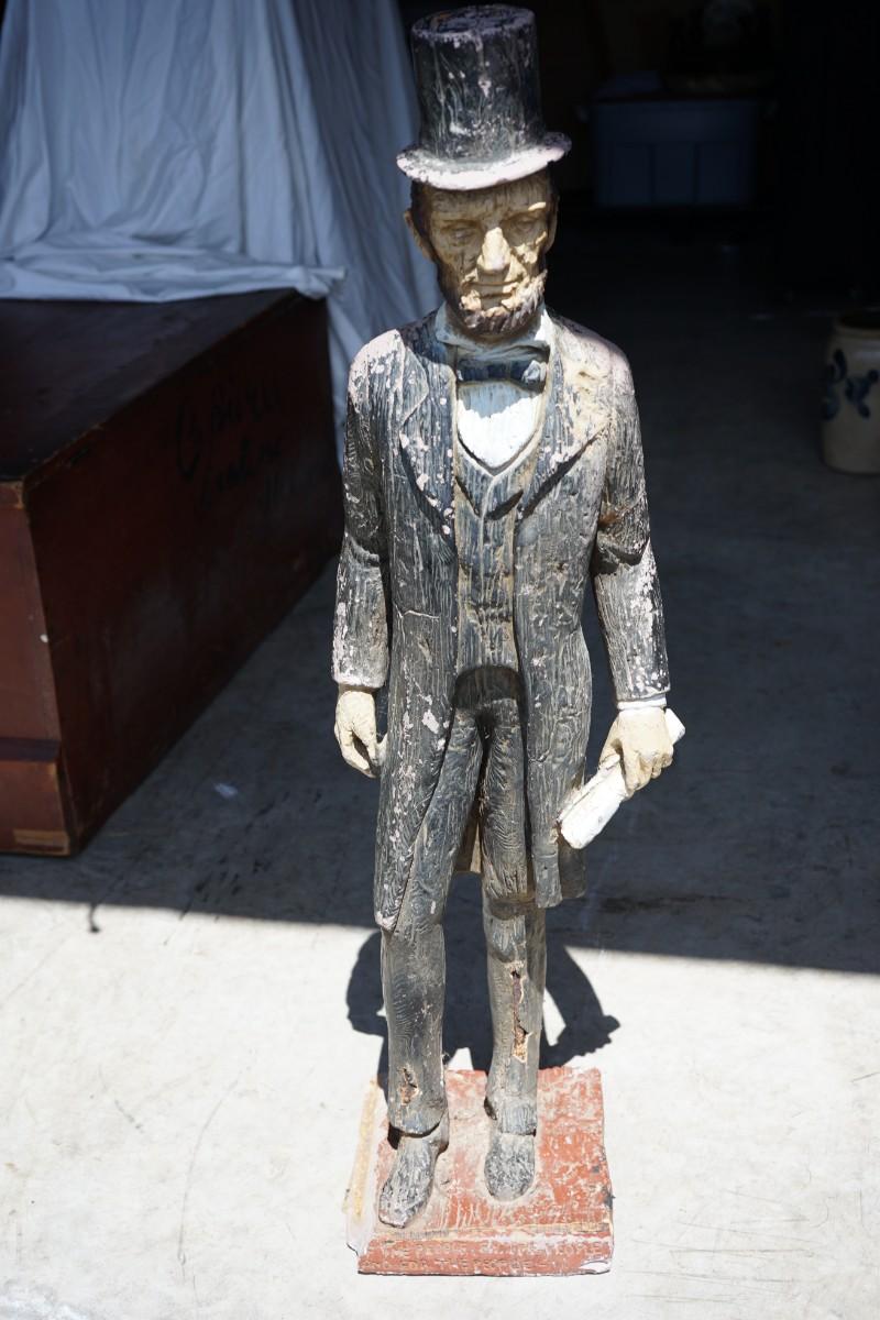 UNIQUE ANTIQUE " ABE LINCOLN" CHARACTER  STATUE OF 41" CEMENT /HAND PAINTED