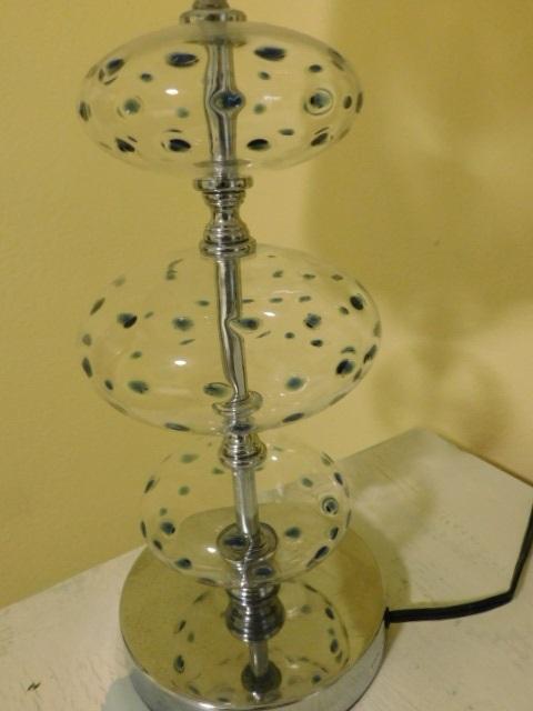Unique Art Glass Clear Bubble with Blue Dimples Post Lamp
