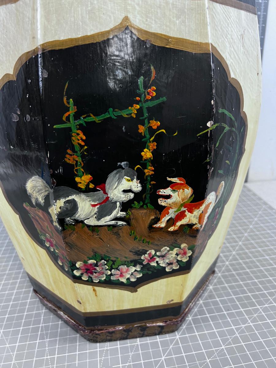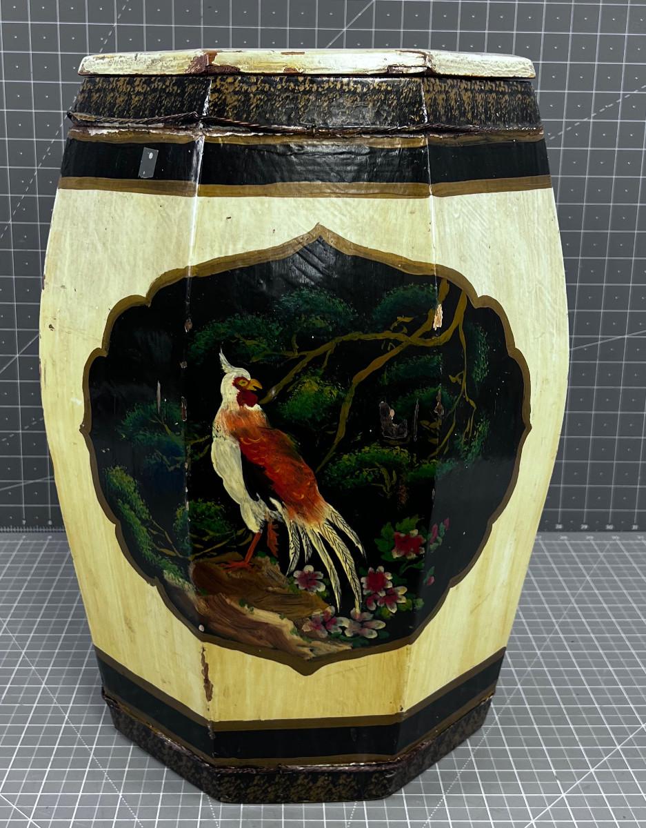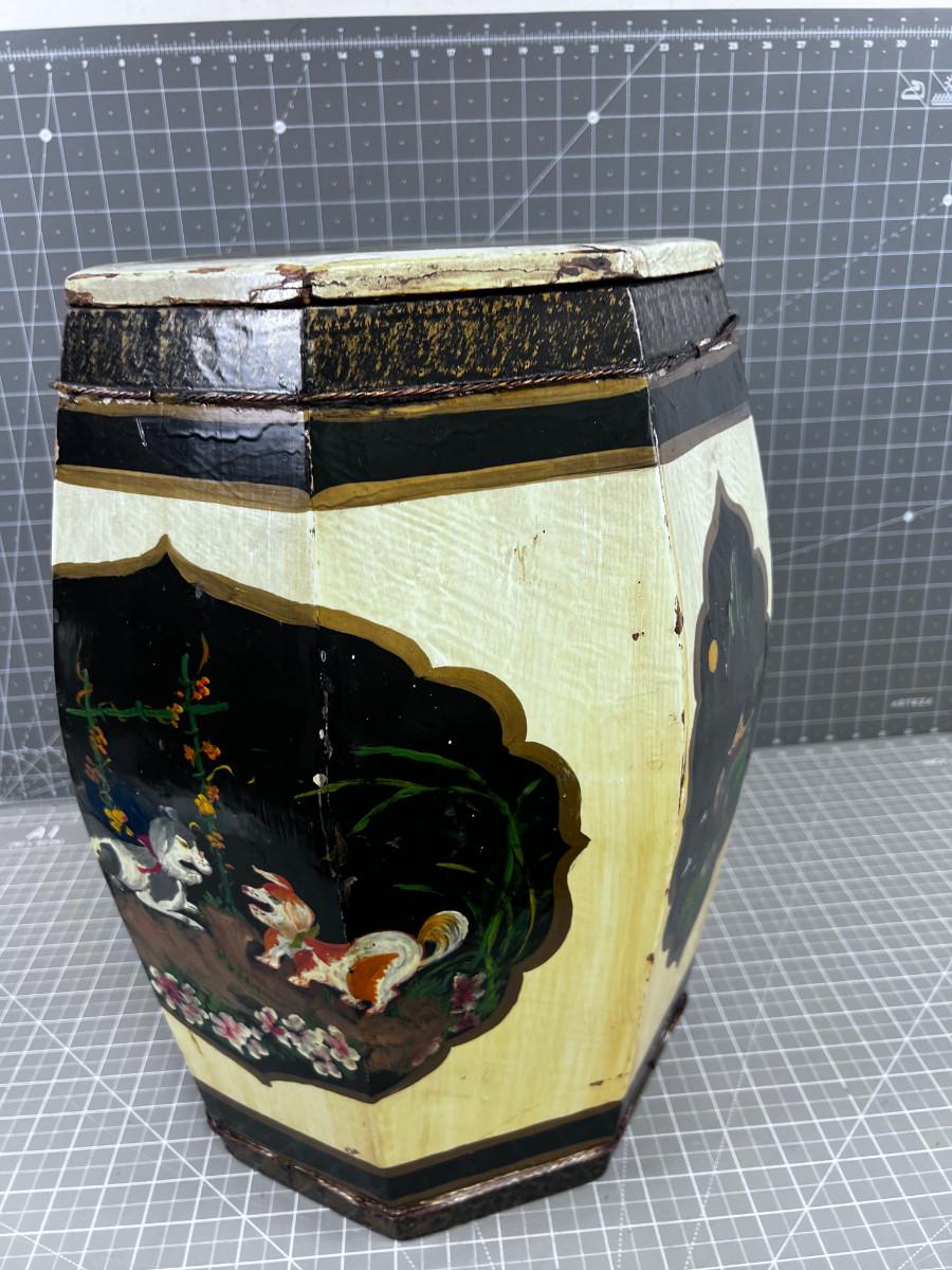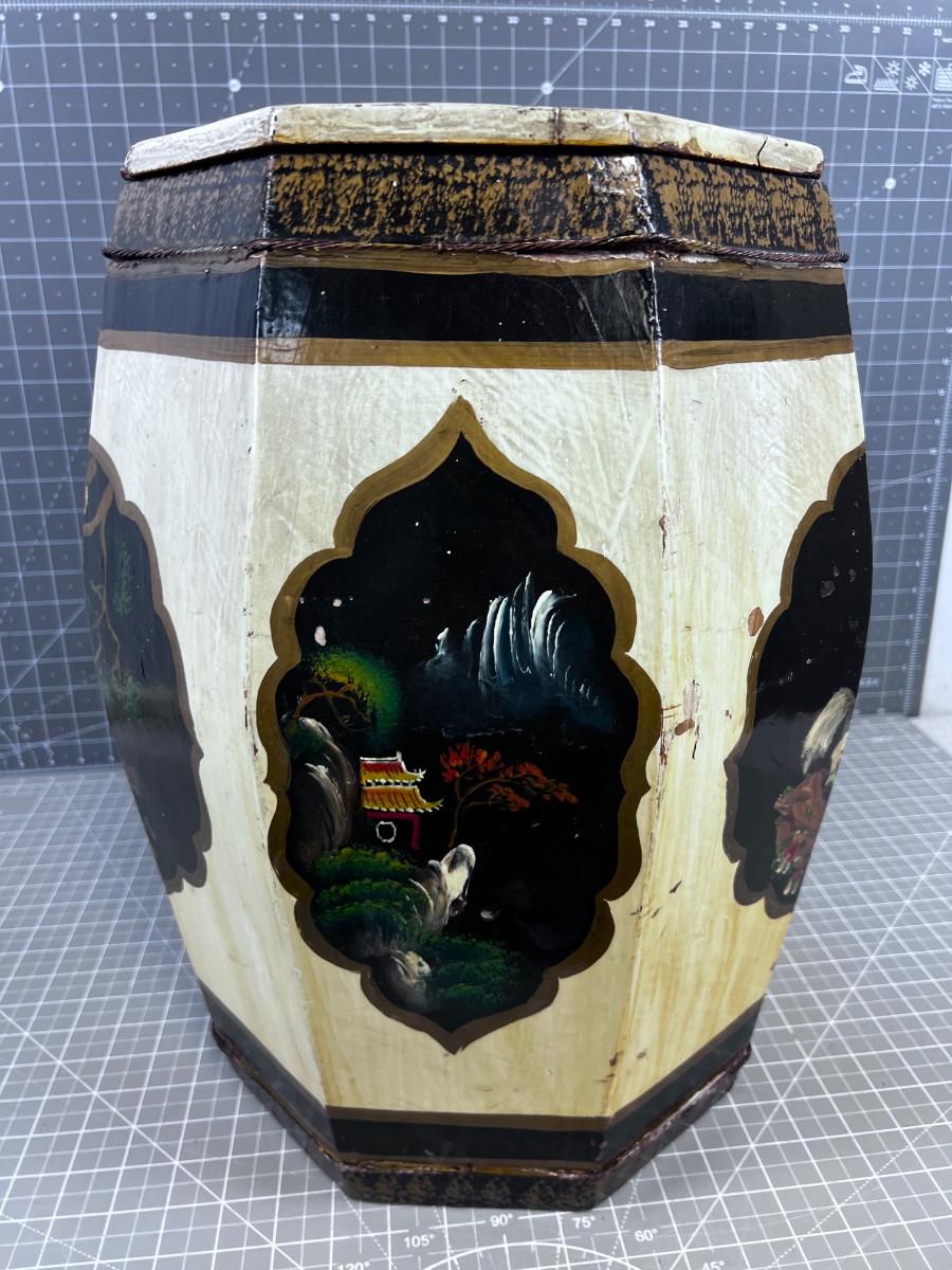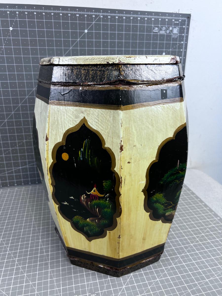 UNIQUE Asian Drum Shape Box Table Hand Painted INTERESTING~