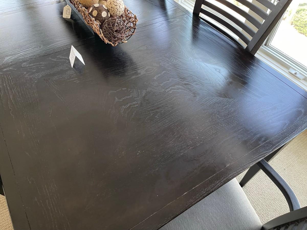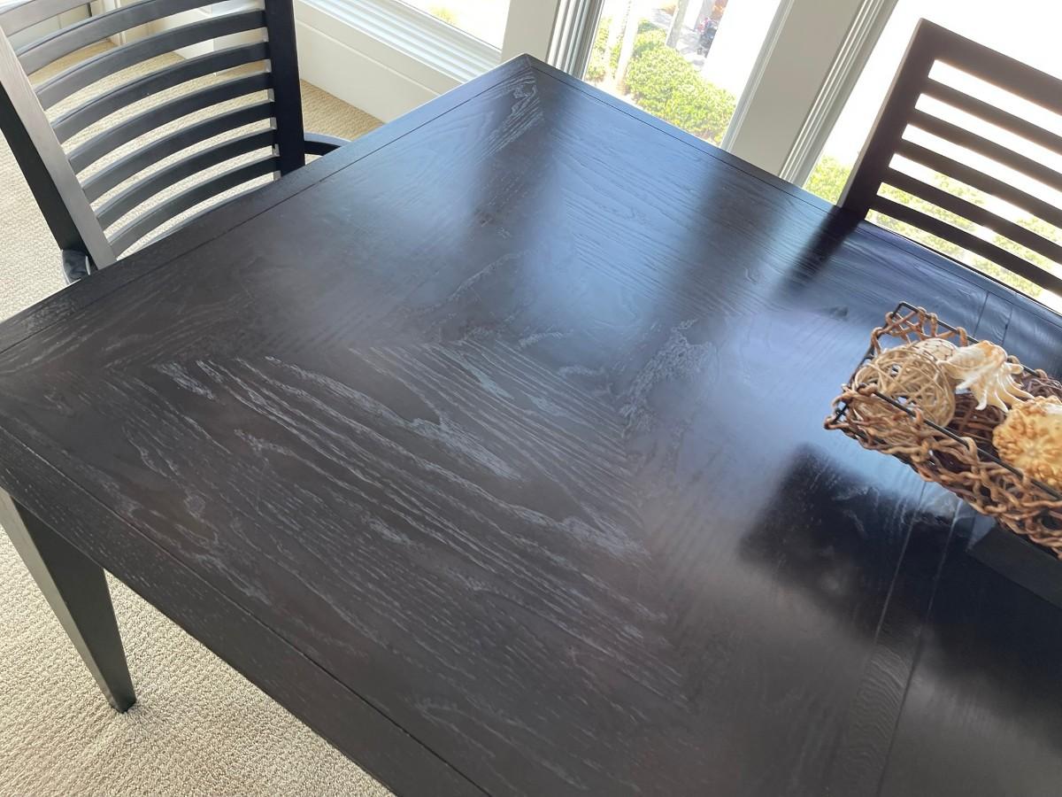 90x44 with leaf in place Unique black lacquer looking finish w/ texture.