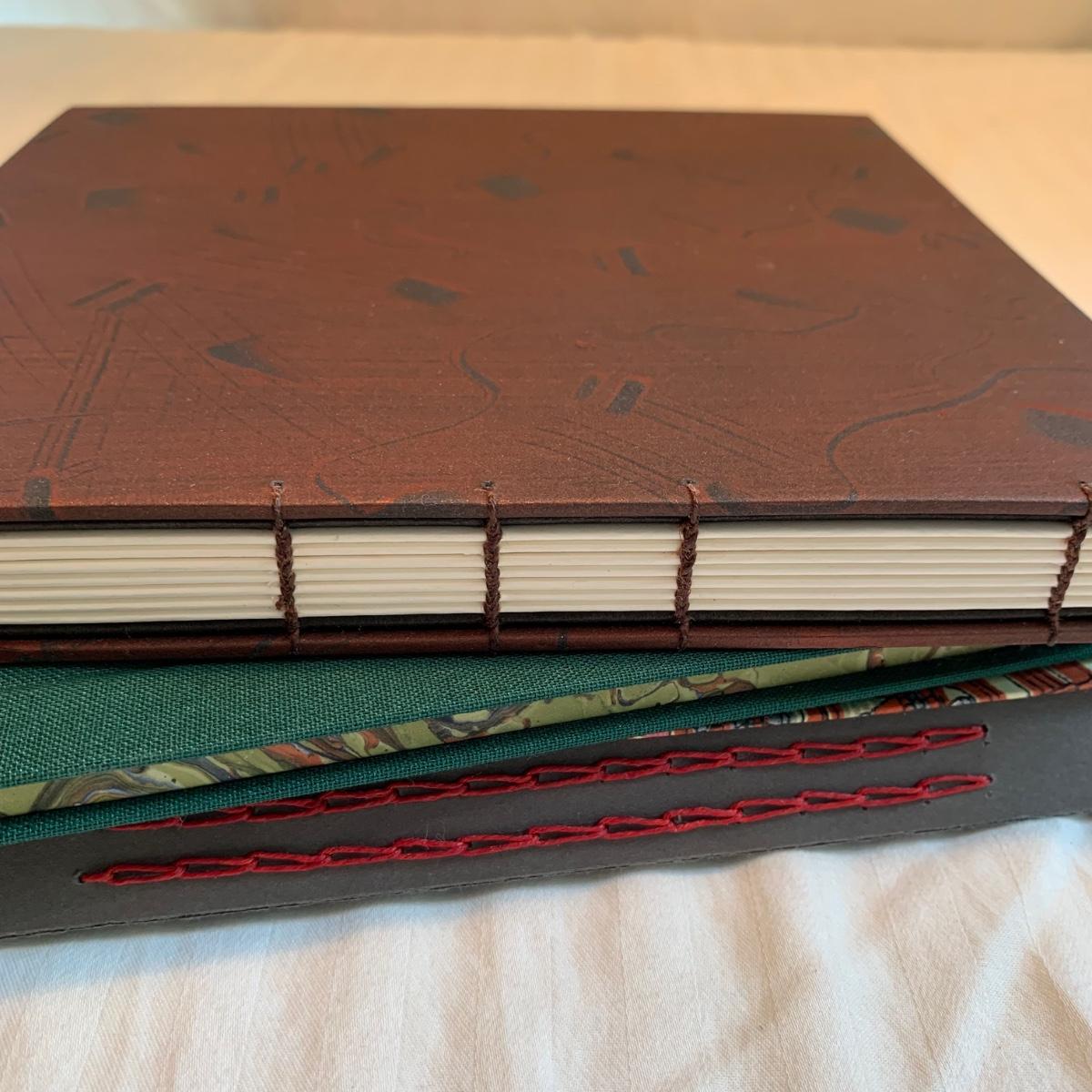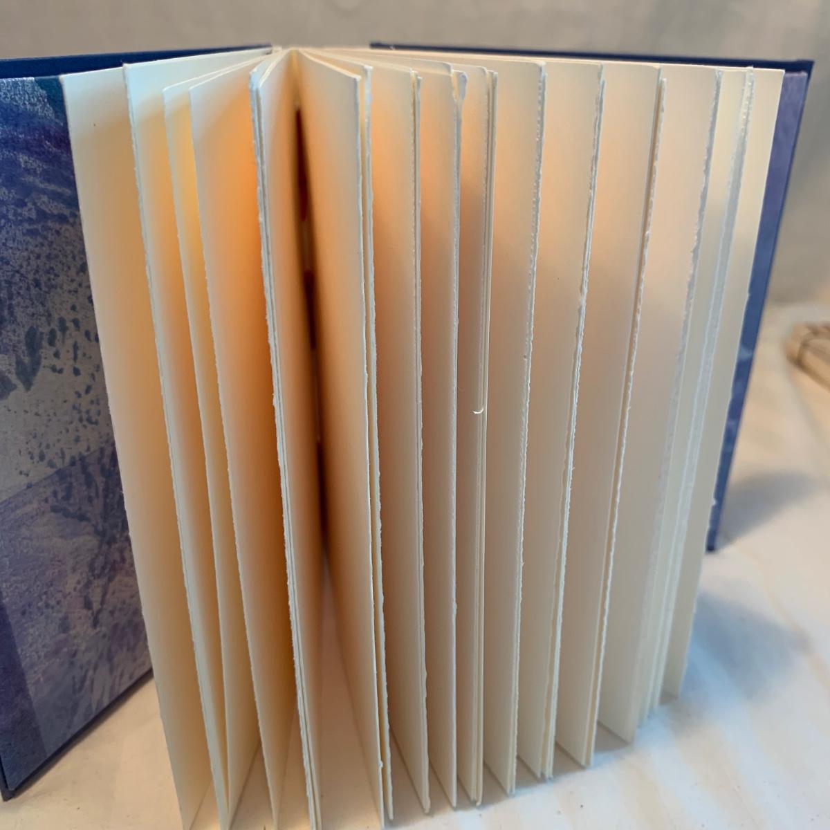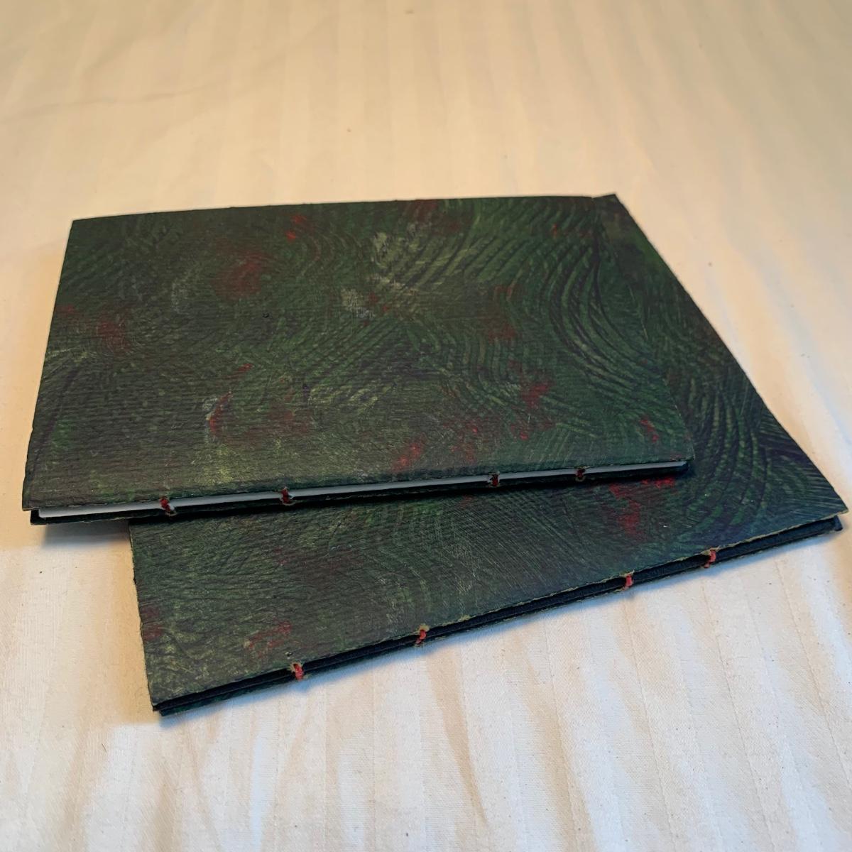 This is a collection of over 75 unique and beautiful handmade books with blank pages to fill! Some are paperback, some are hard cover, some have leather covers, and one is made of a big seashell! Please see photos for inventory. For reference, the seashell book is about 6” x 6”. The smallest book is just 2” x 2.5”. One book has some drawings found inside on a few pages.
