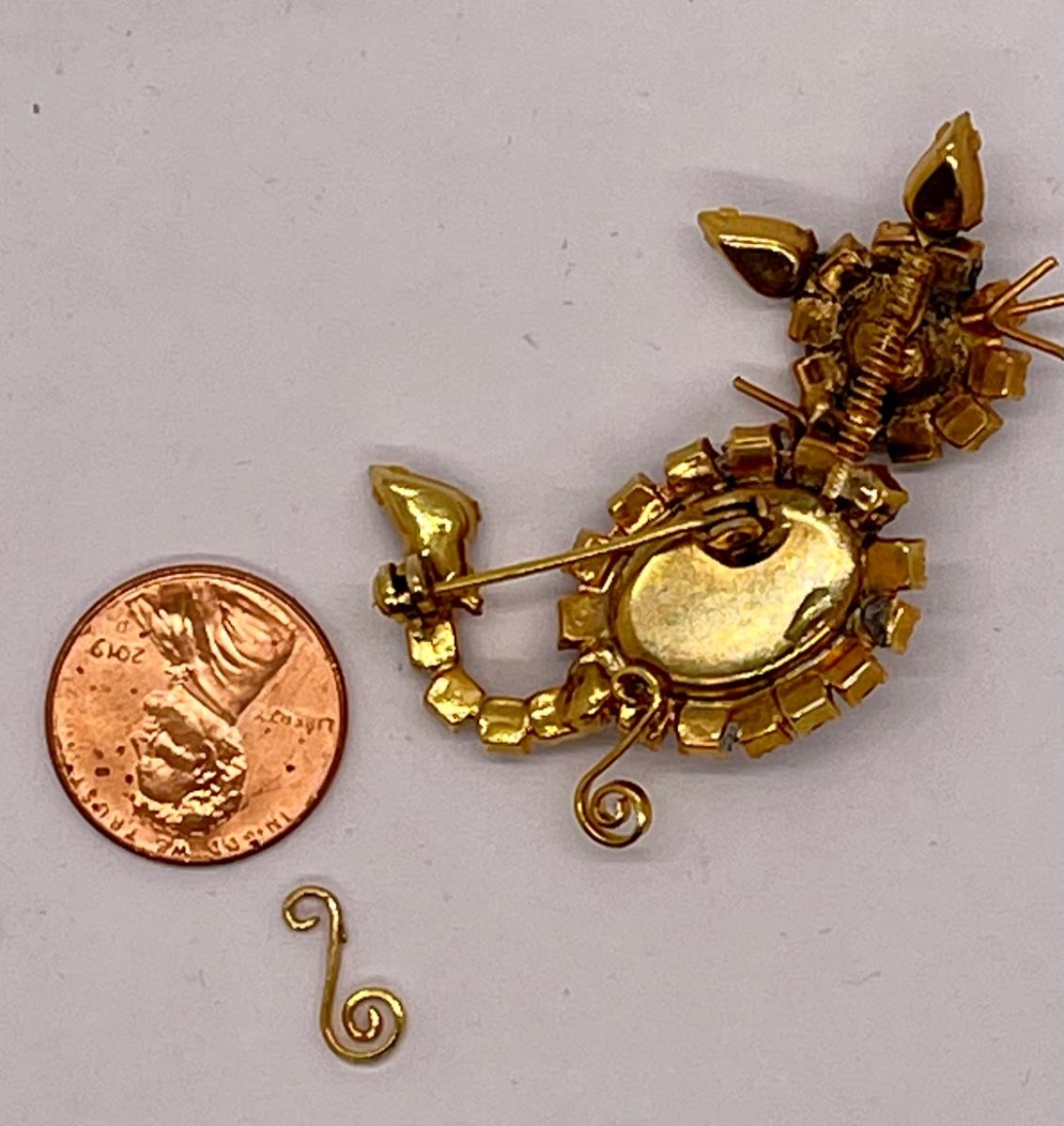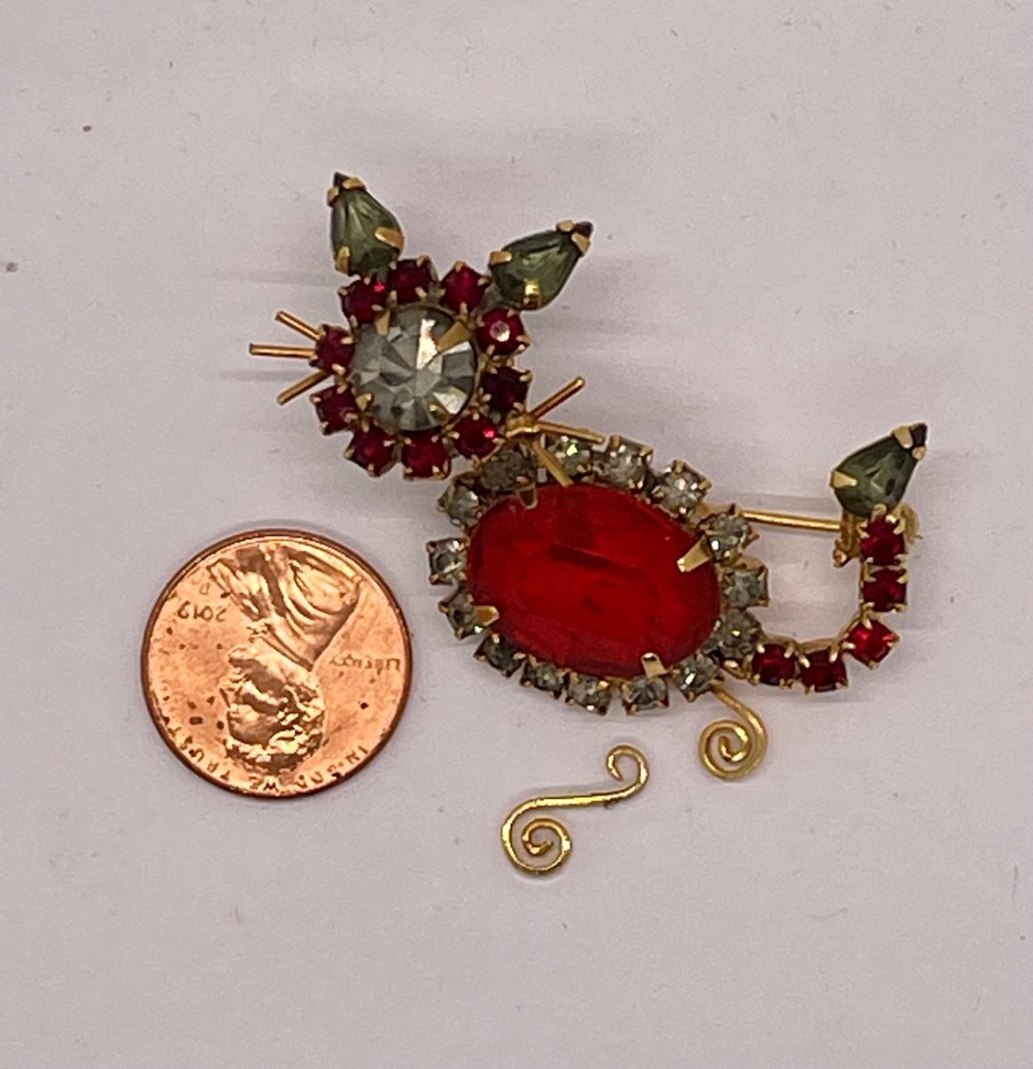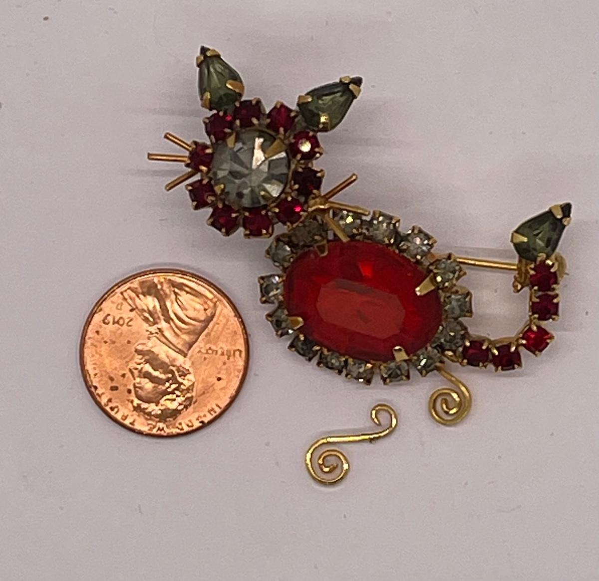 Unique Cat Pin or Brooch Vintage rhinestones - needs a simple repair