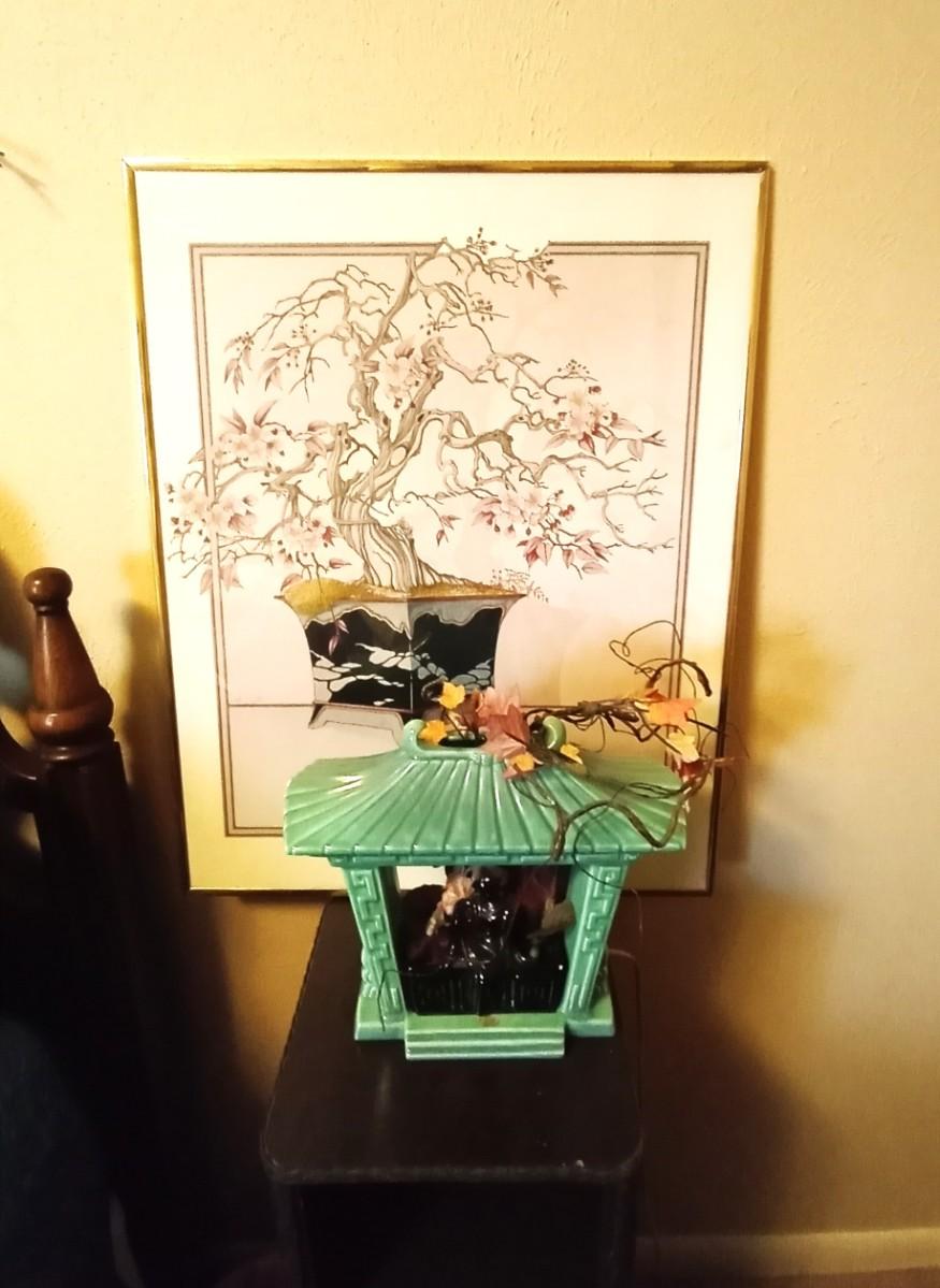UNIQUE CERAMIC TABLE LAMP AND ARTWORK