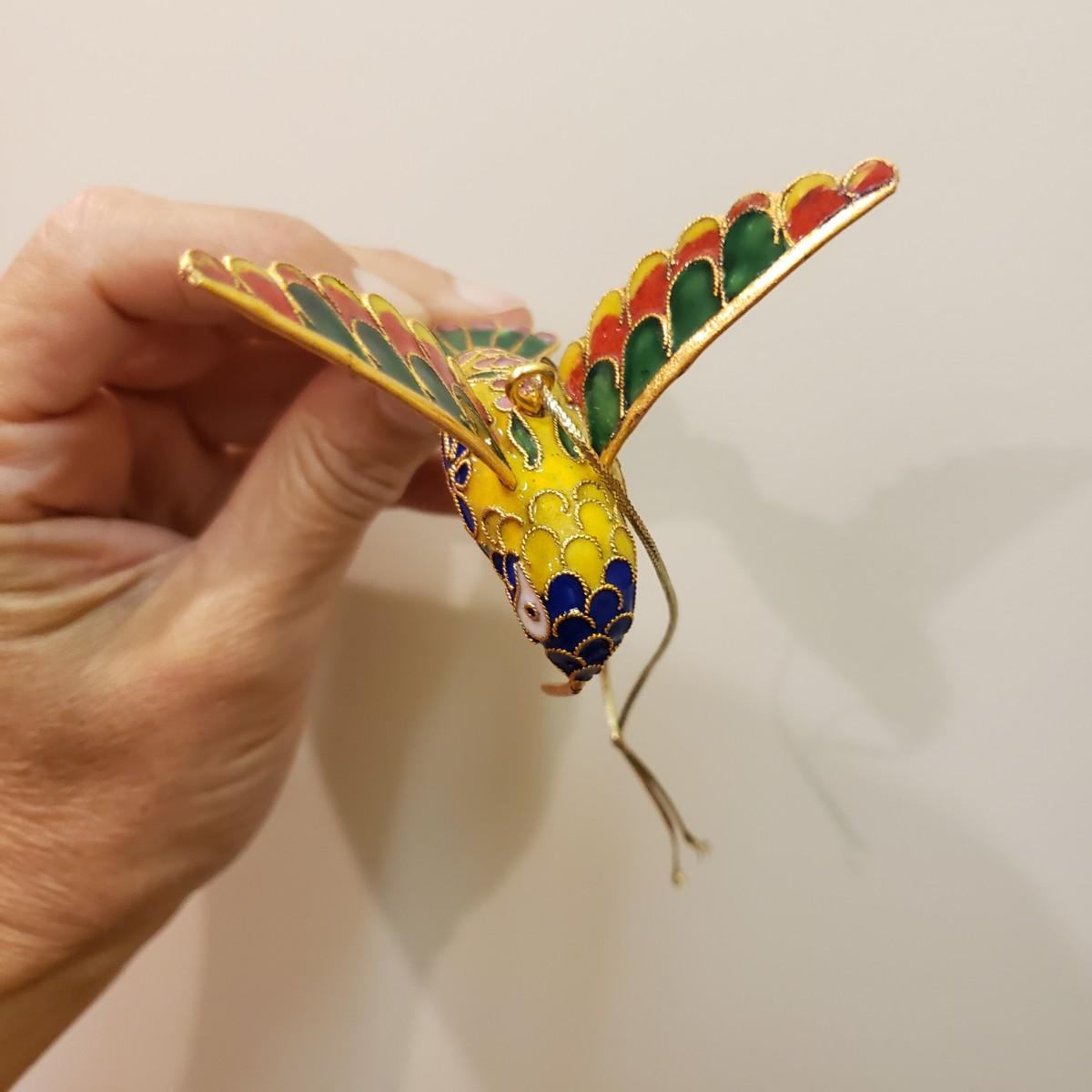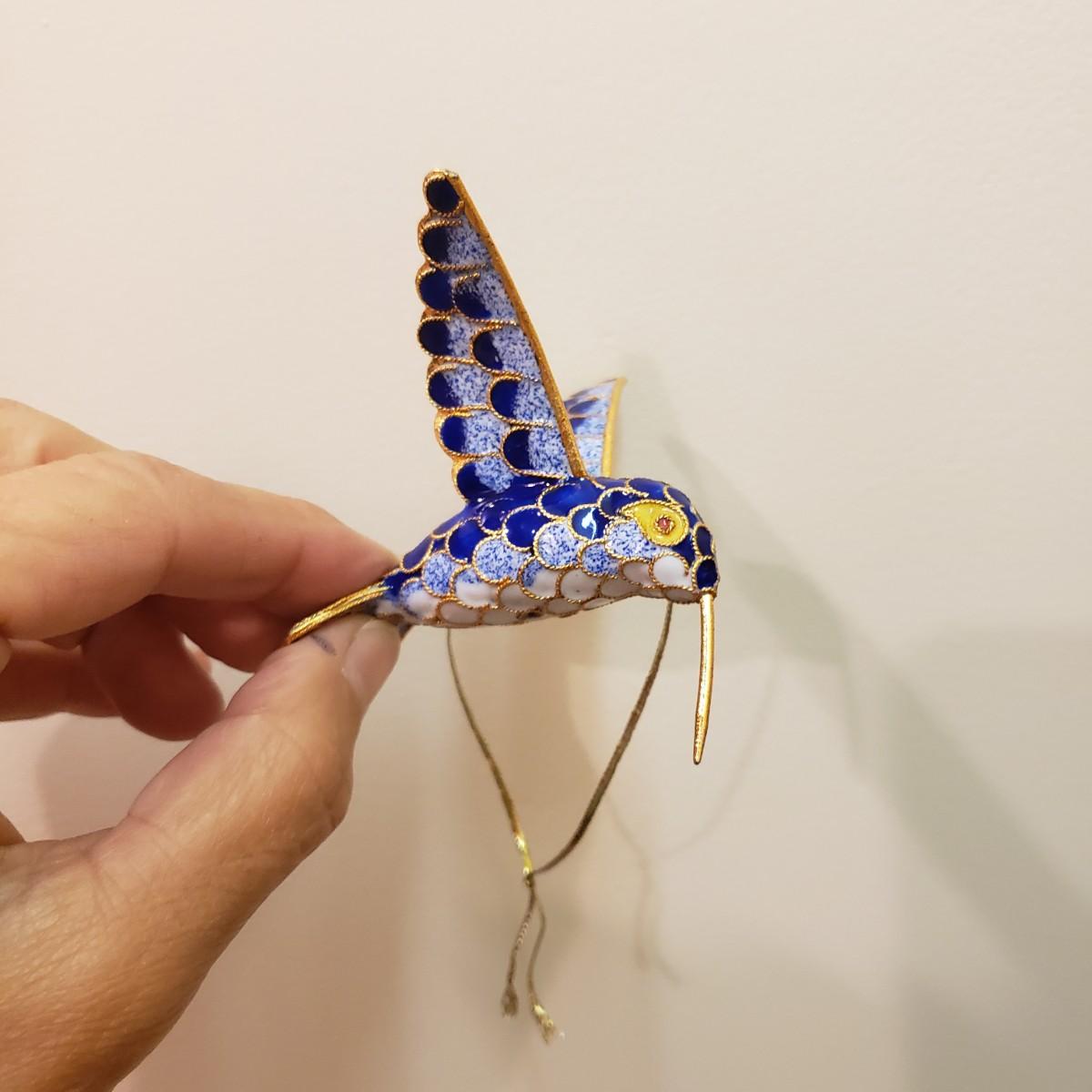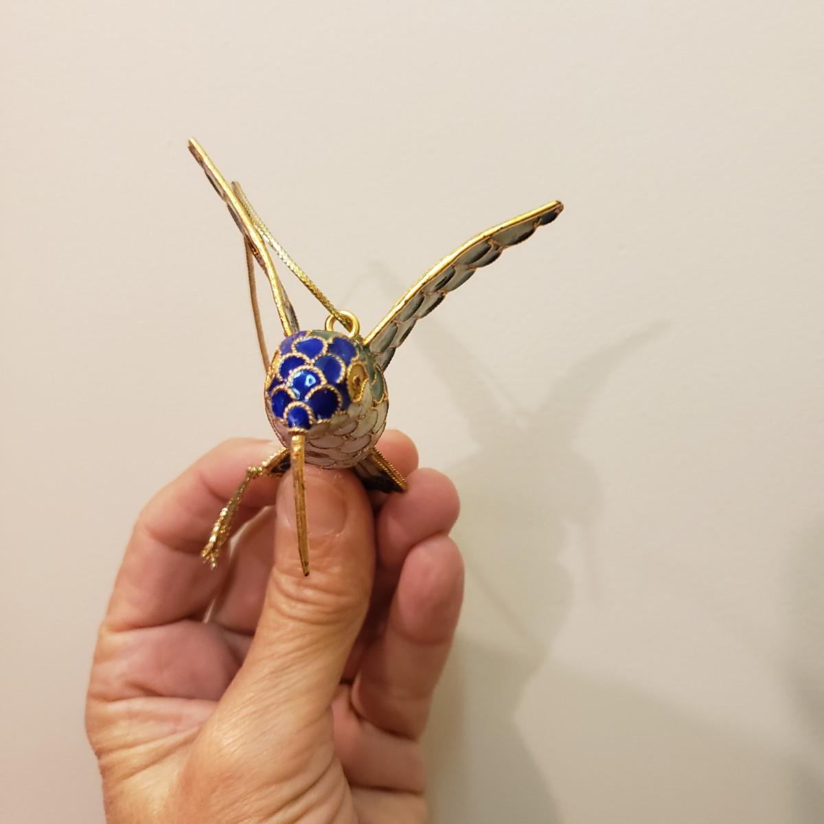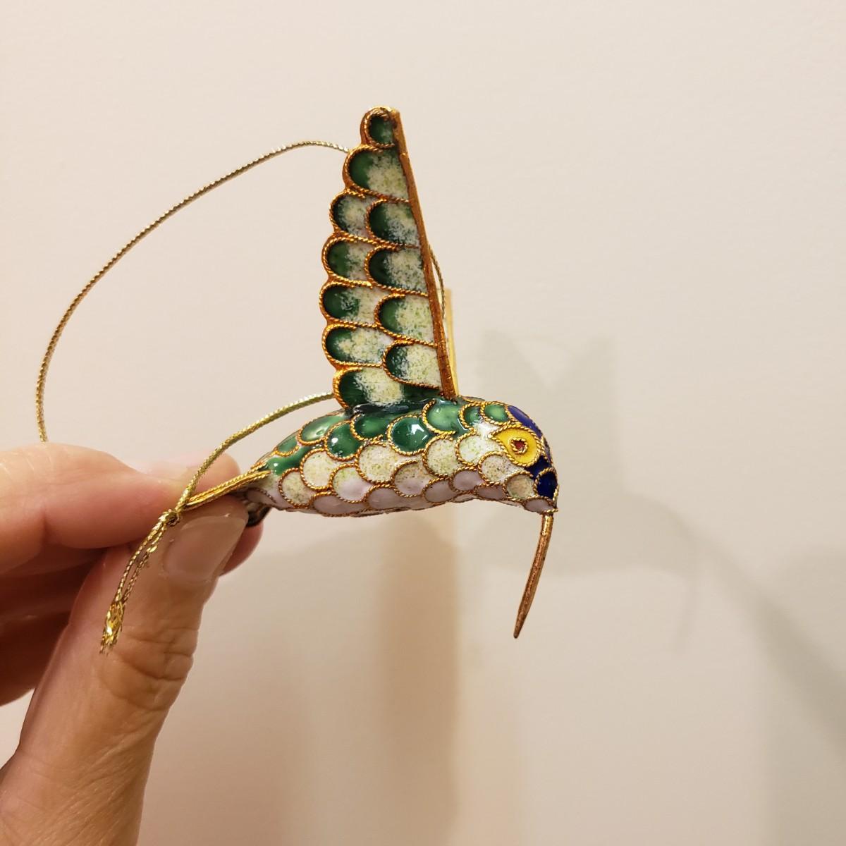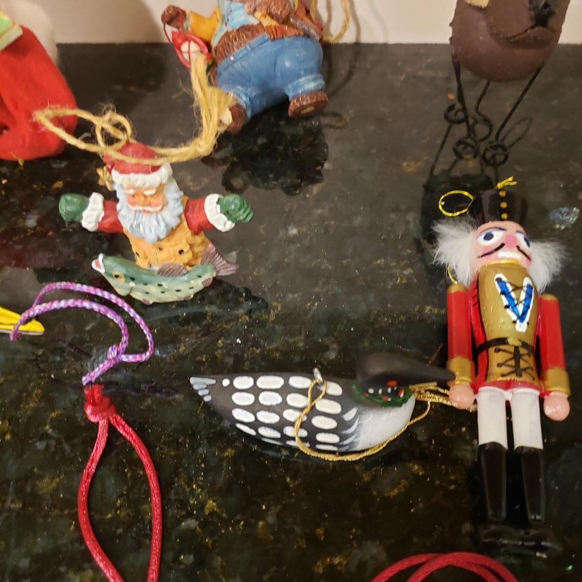 There are some fun and unique ornaments in this lot!! The gold Maple leaves, the Wedgewood porcelain sleigh scene and cloisonné hummingbirds are a highlight. The Reed and Barton sterling bell (2" x 3") has Merry Christmas 1988 engraved on it. See pictures for details.