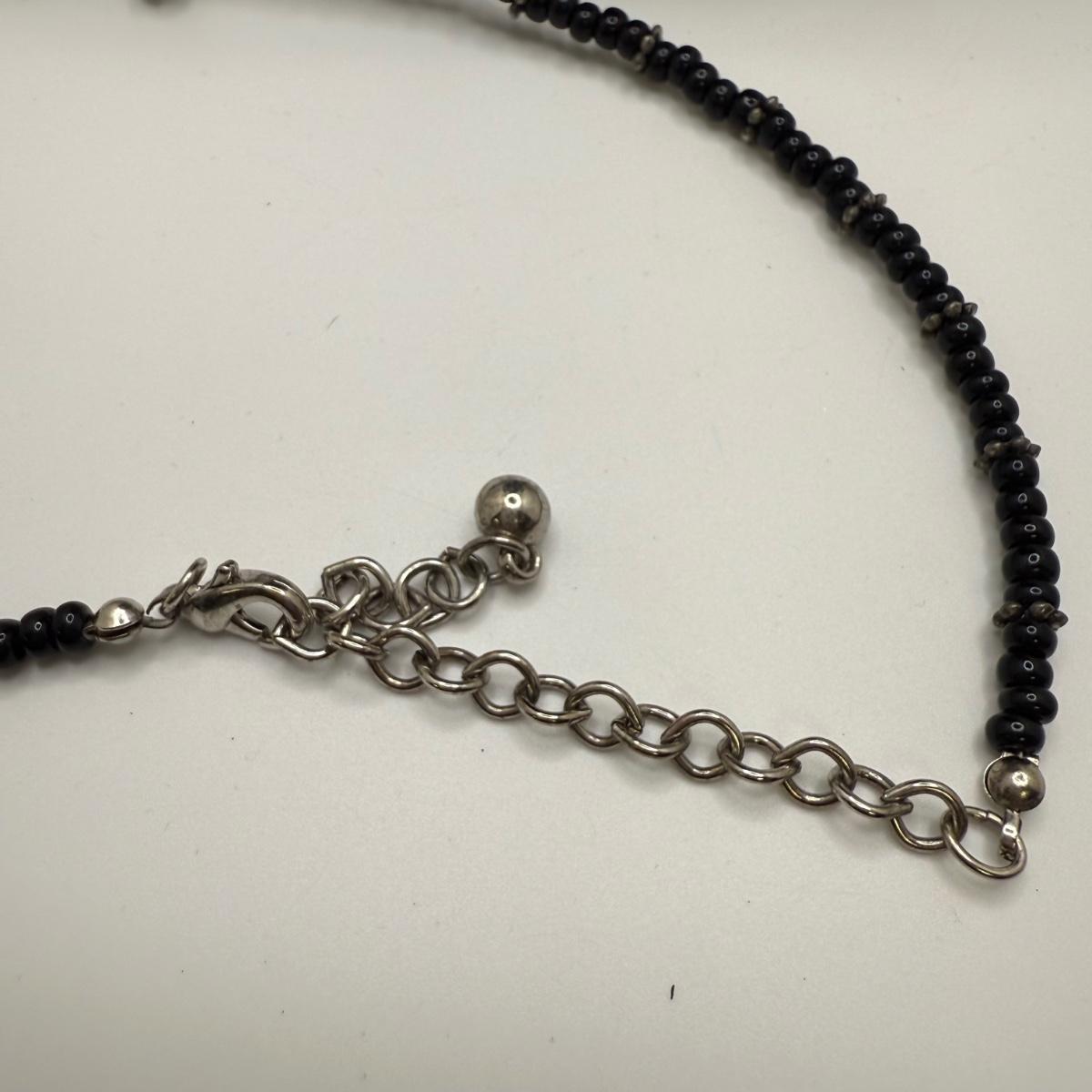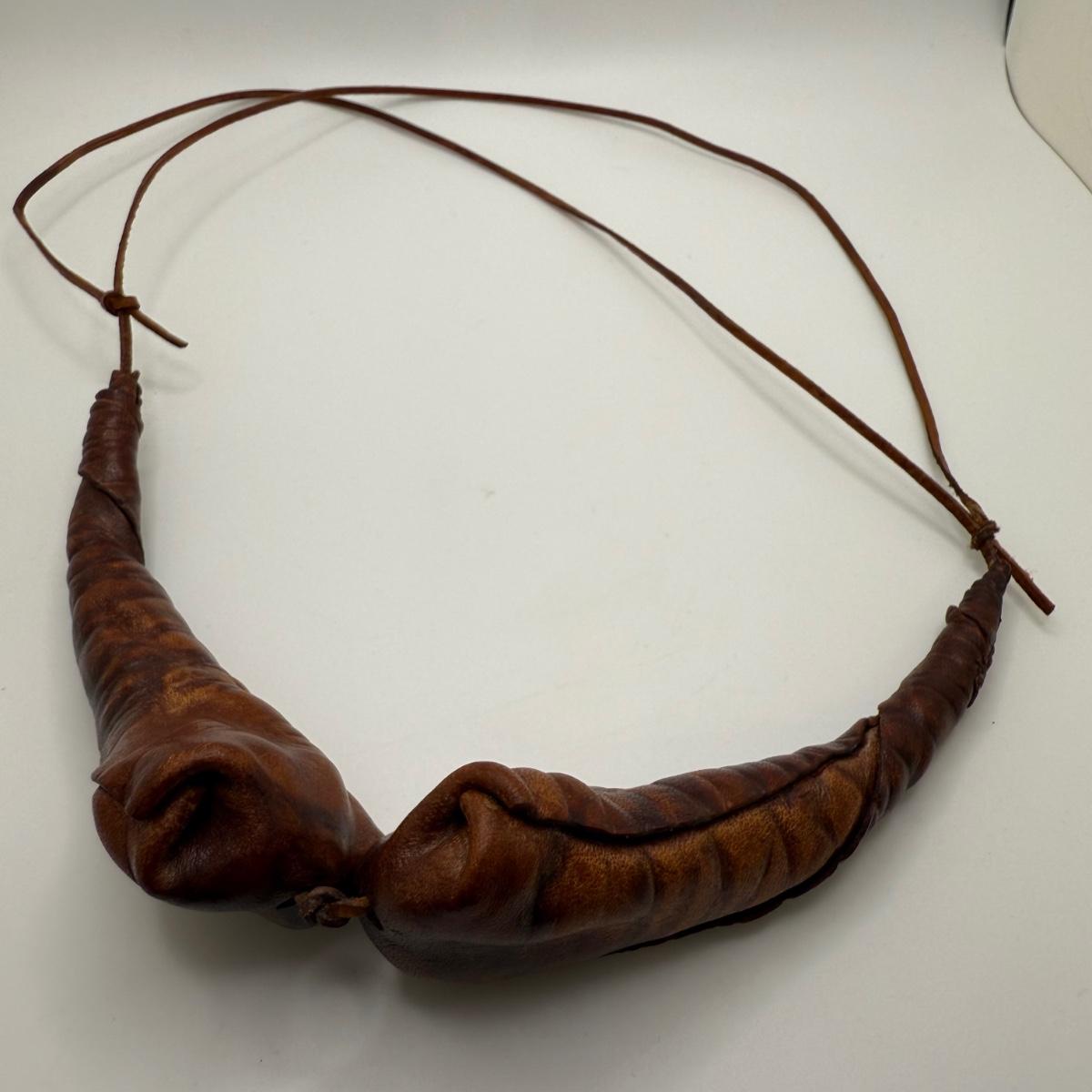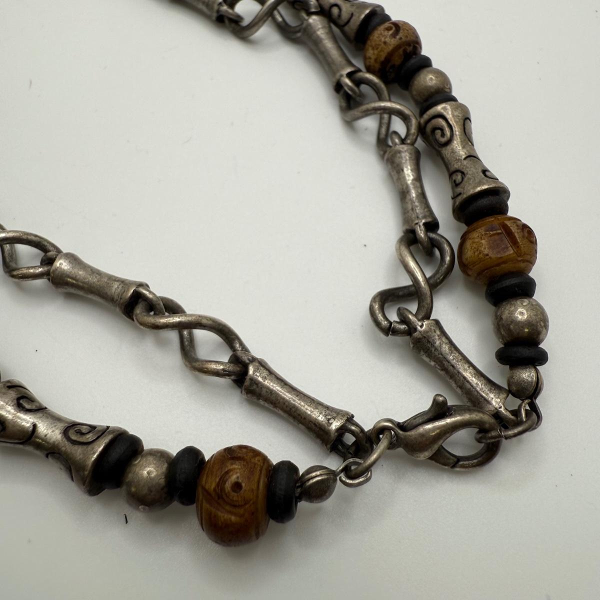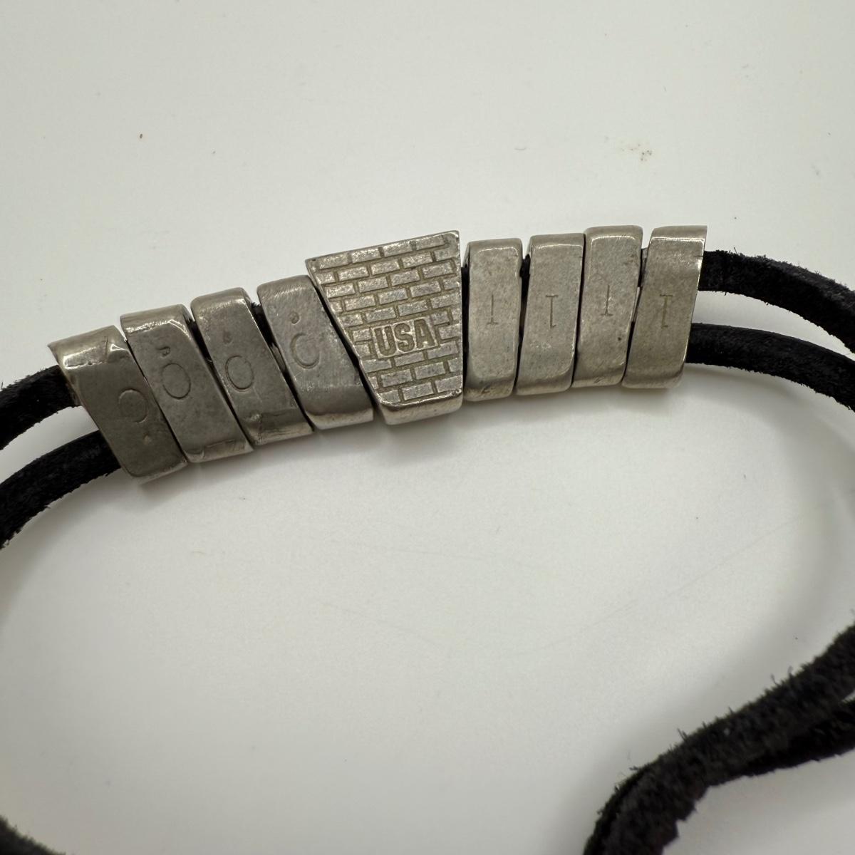 A collection of necklaces and bracelets with a watch and a ring. Items contain mostly leather and metal elements. The snake ring is stamped 925. The black necklace with the dangly pendants is adjustable from 15-18”.