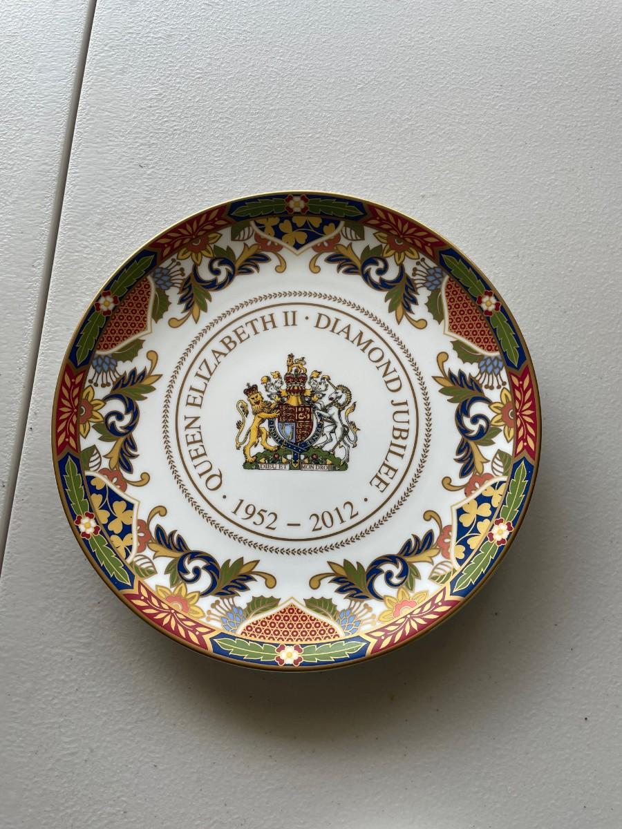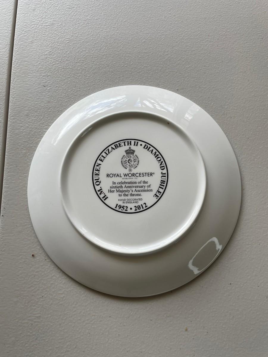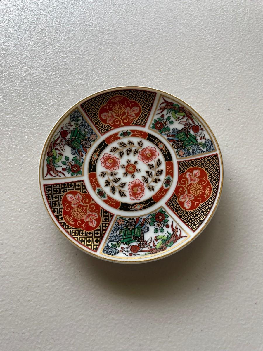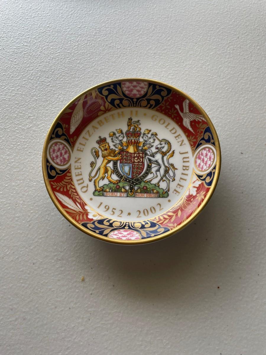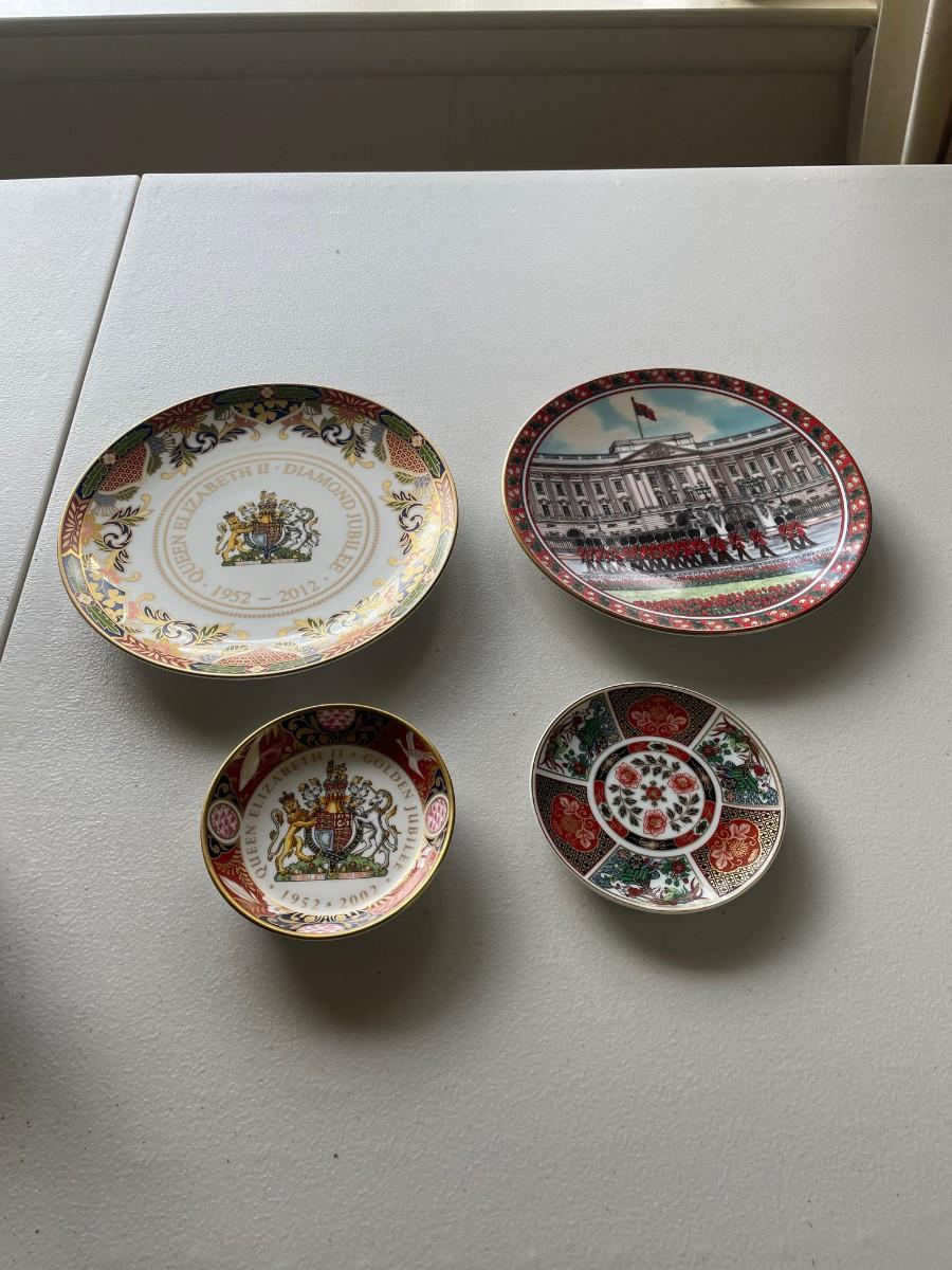 Four included in this lot.Vintage Japanese Imari porcelain plate, Royal Worchester Imari pin dish, Royal Worcester buckingham palace plate and Royal Worcester Queen Elizabeth II commmorative Plate