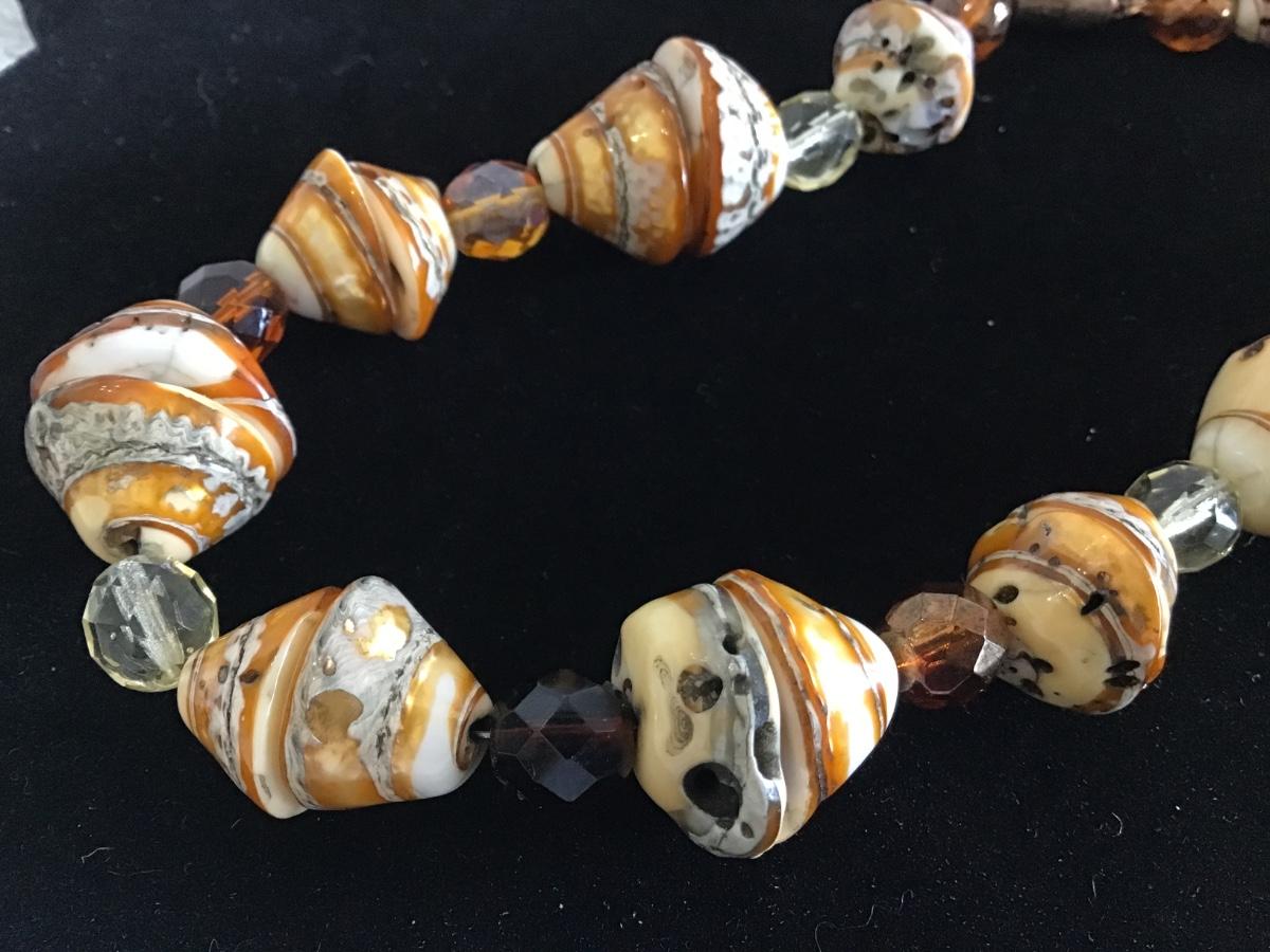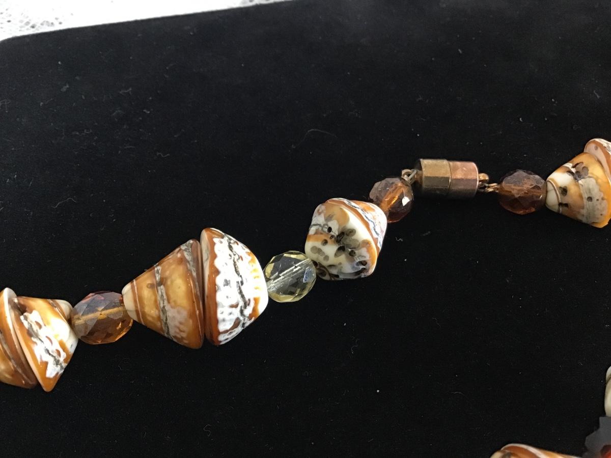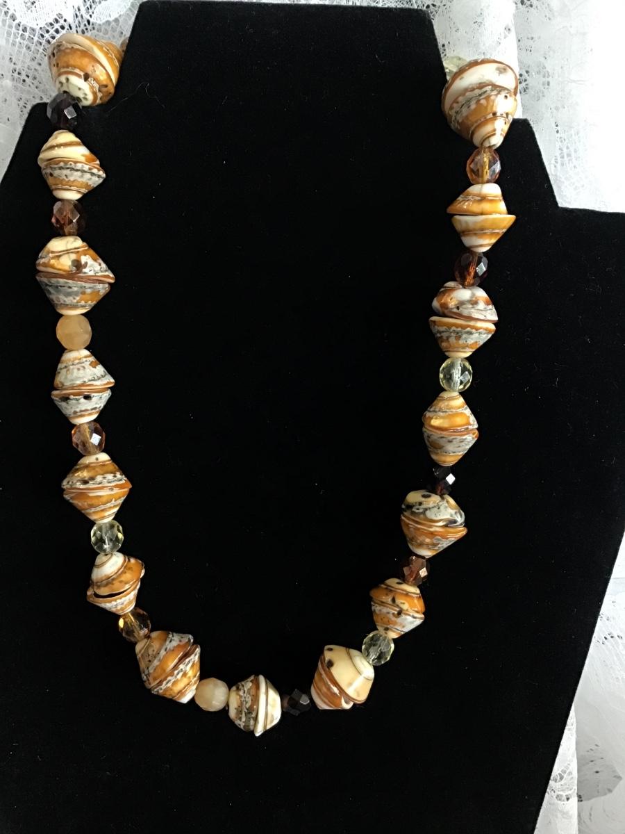 Unique Earth Tone Shell And Cooper Color Beaded Necklace with Crystal Beads