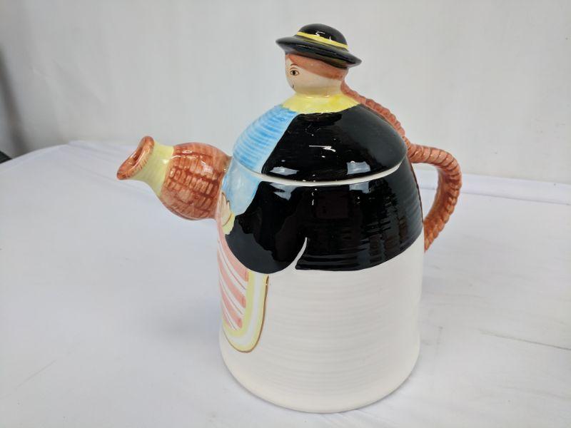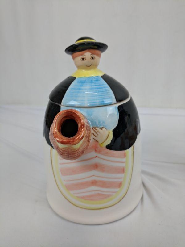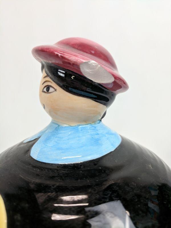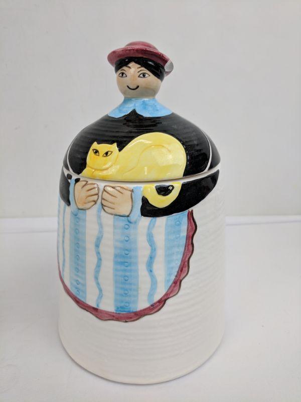 Unique Girl Coffee & Cookie Jars, 5 Mugs, Cookie Lid Has Chip on Hat & 1 Mug Has Chip