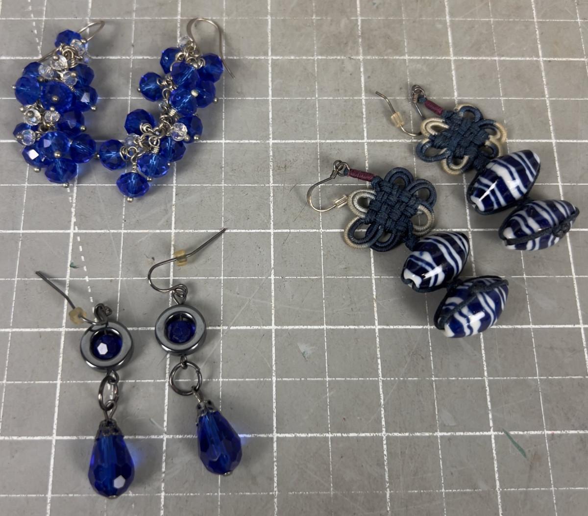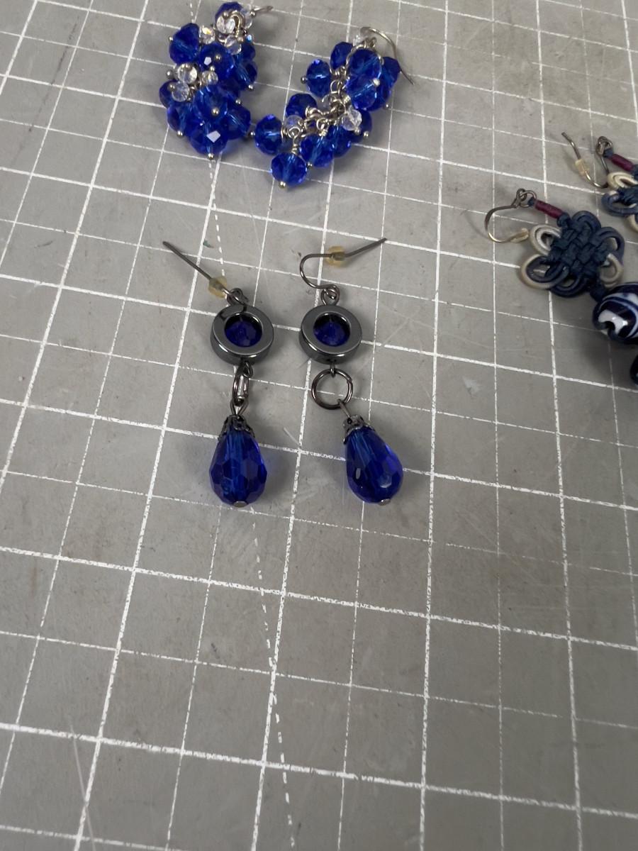 Unique Glass and Ribbon Plus other Faux Blue Earrings