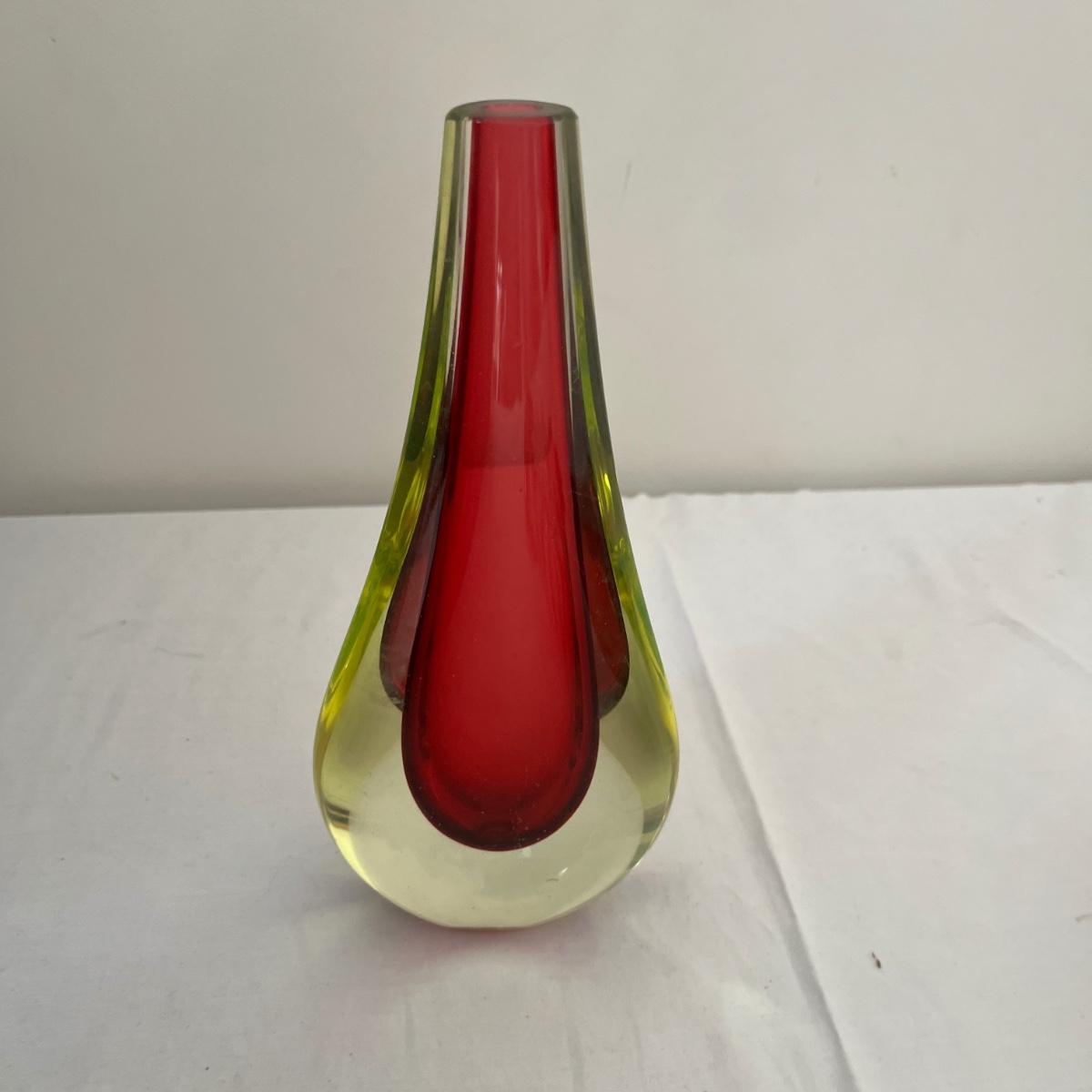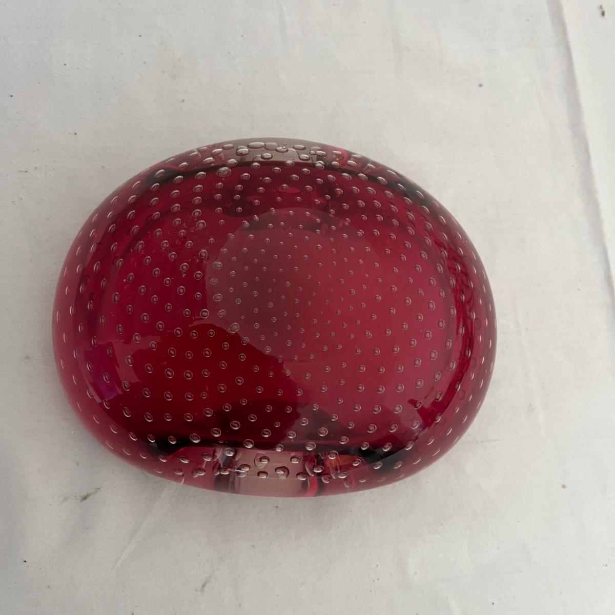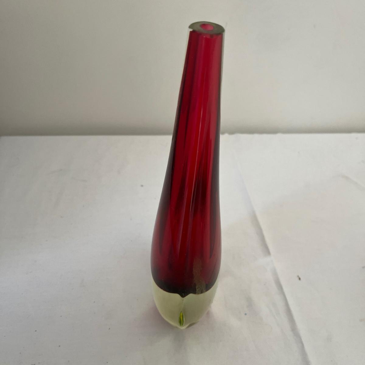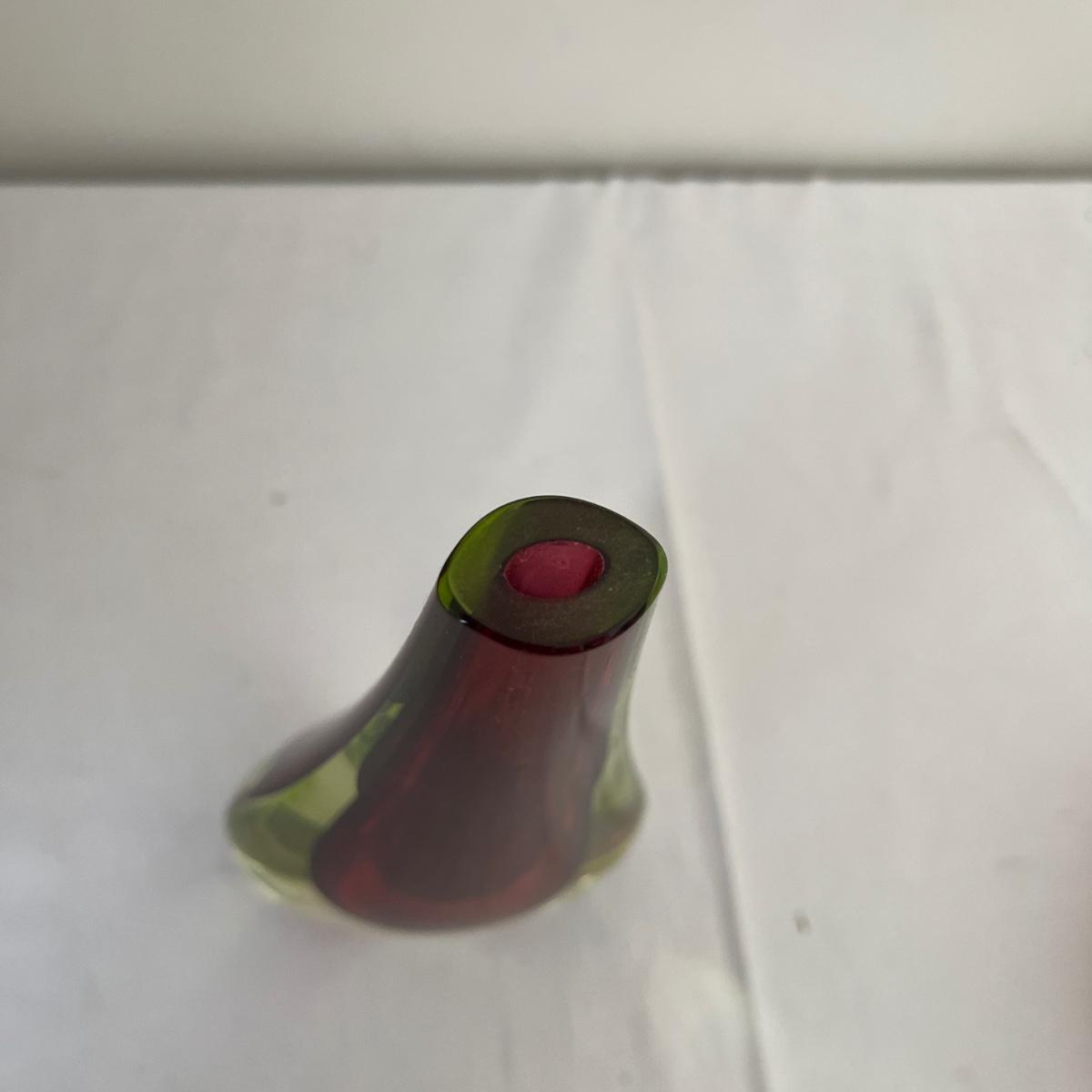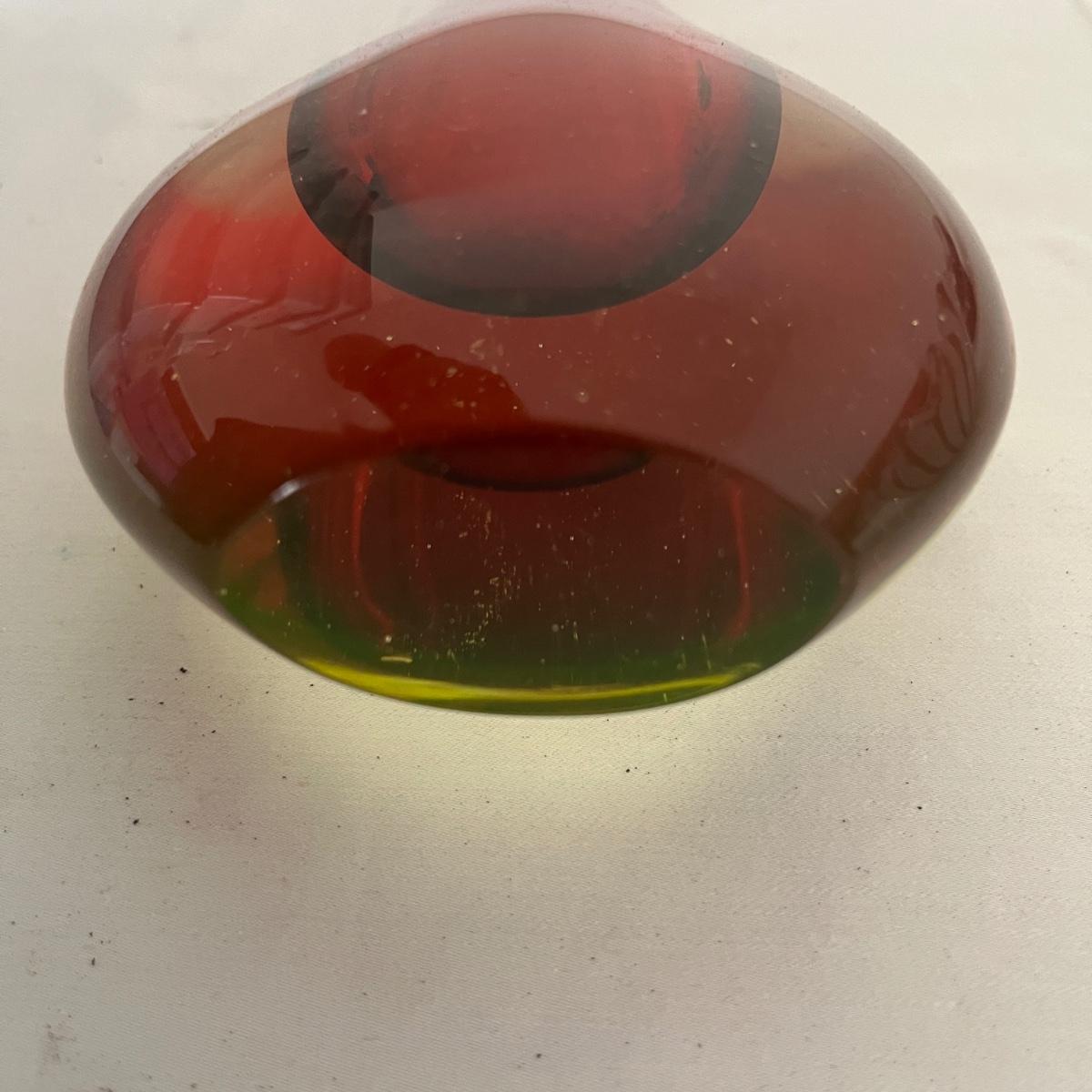 Lot includes three unique glass dishes and one glass vase. Largest dish measures 8.5” x 6.5” x 2.5”H.