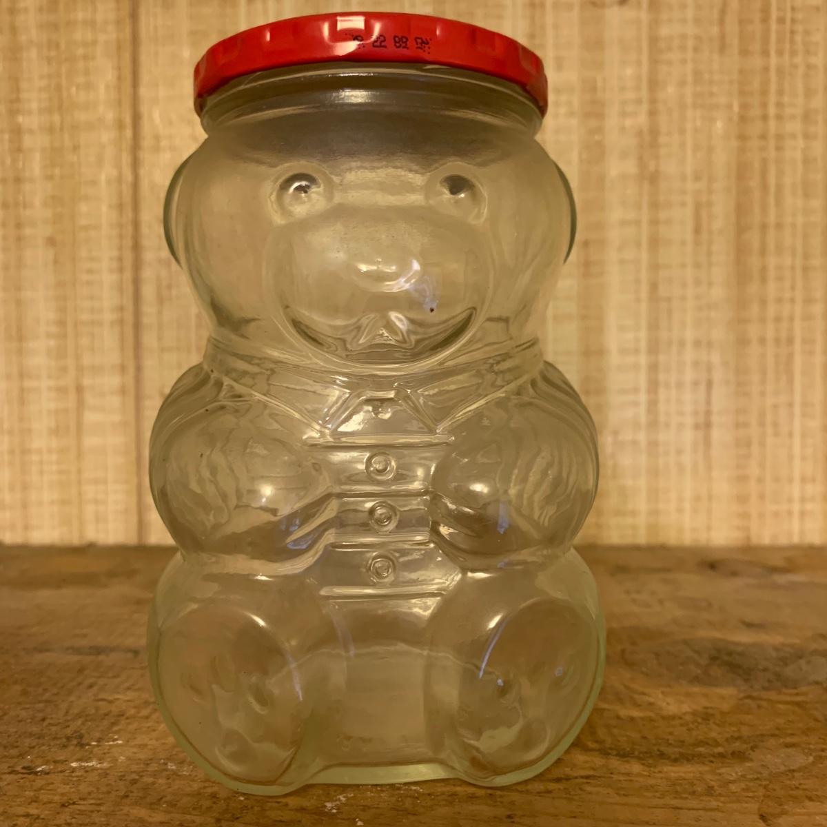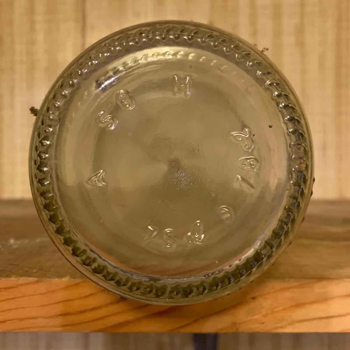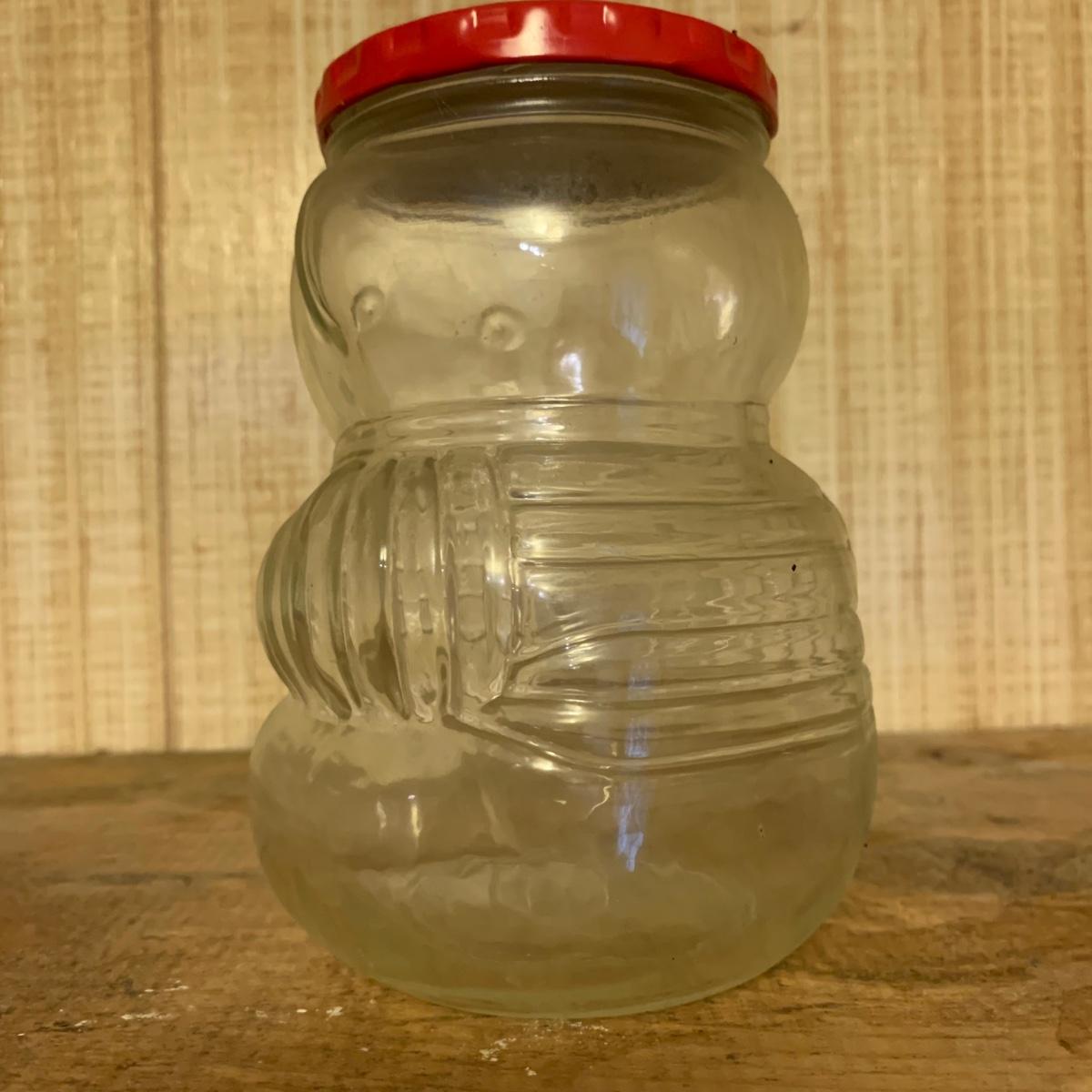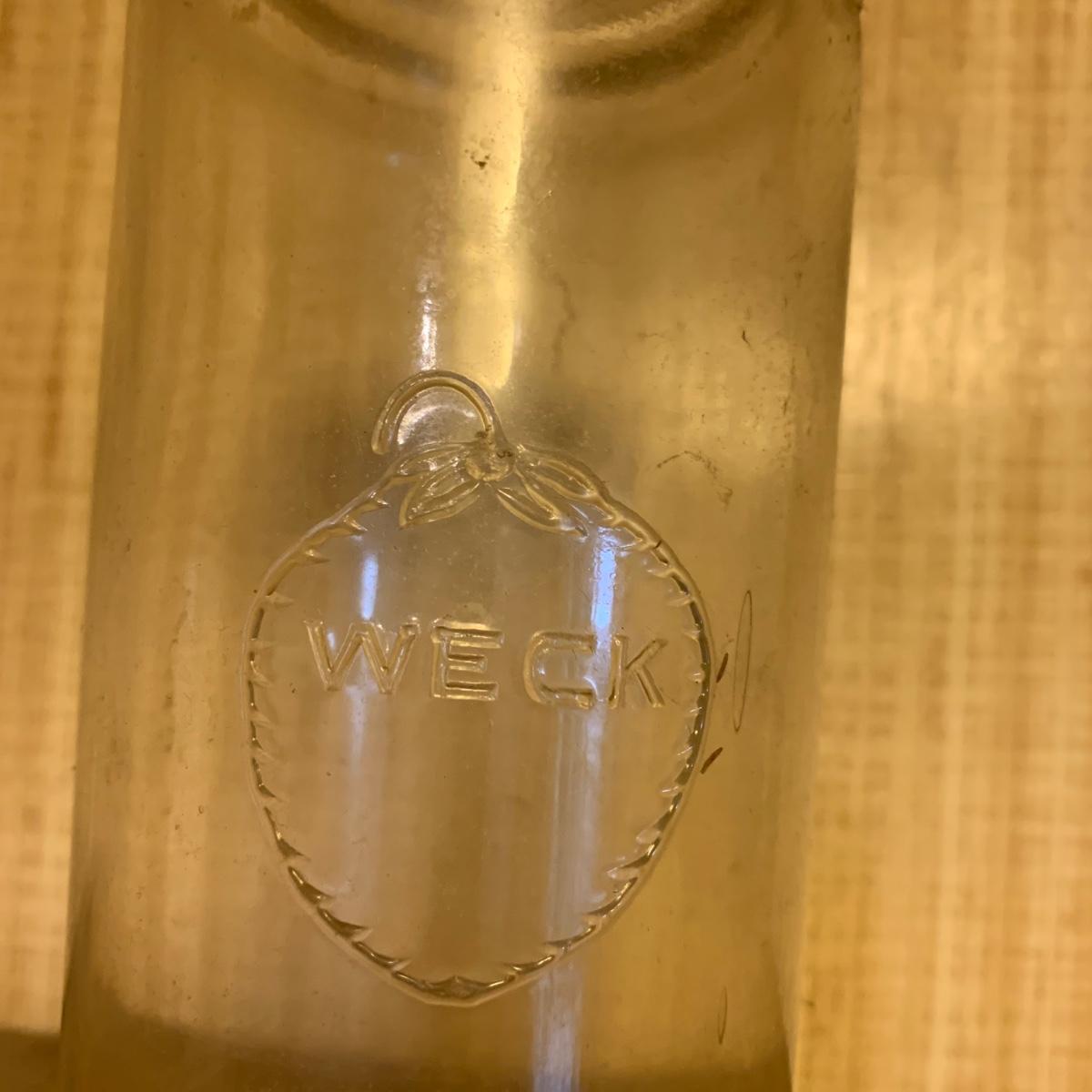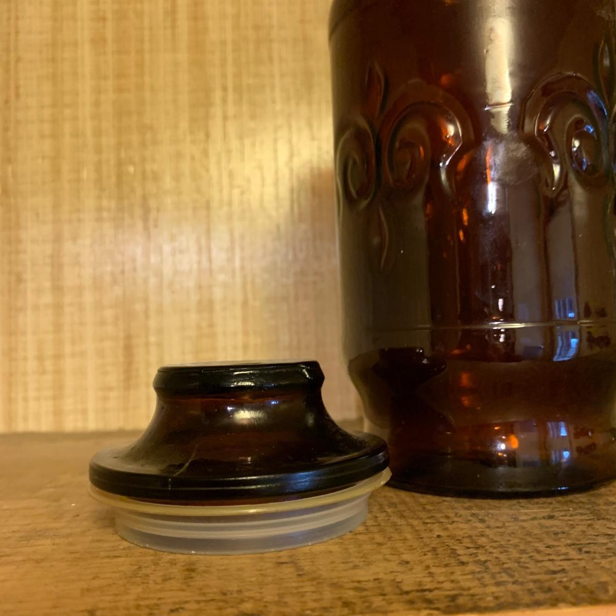 Seven unique glass jars and bottles. One is a swing top bottle marked “Geyer Freres Madison Fondee En 1895”. There is a teddy bear shaped jar with a metal lid, a light green-hued bottle with a sunflower decoration and a glass stopper, a one quart jug with a handle and spout, and a taller light green-wine decanter bottle. There are also two cylindrical jars with glass lids. One is dark amber colored and the other clear glass. The clear glass lid has some stickiness that should be able to be cleaned off. The shortest jar is the teddy bear at 6” tall and the tallest is the green-hued pitcher at 12.5”. Shipping available.