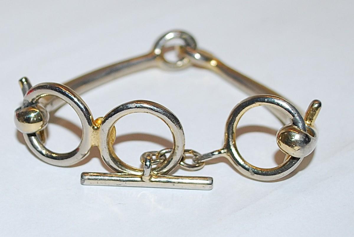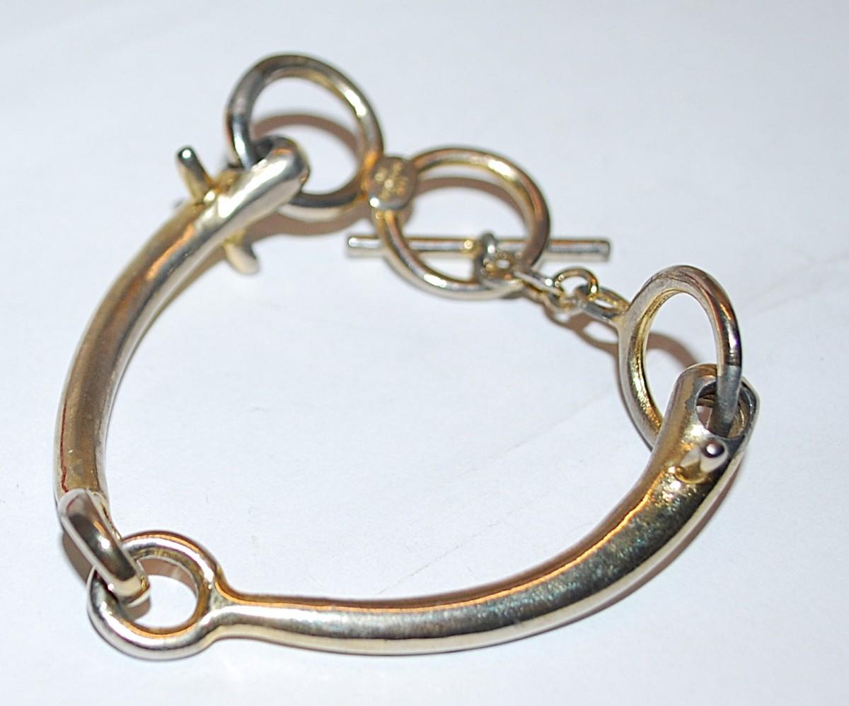Unique Gold Tone 'WISHBONE" BRACELET (2" Opening) - Marked "LES BERNARD INC." and Large Toggle Clasp