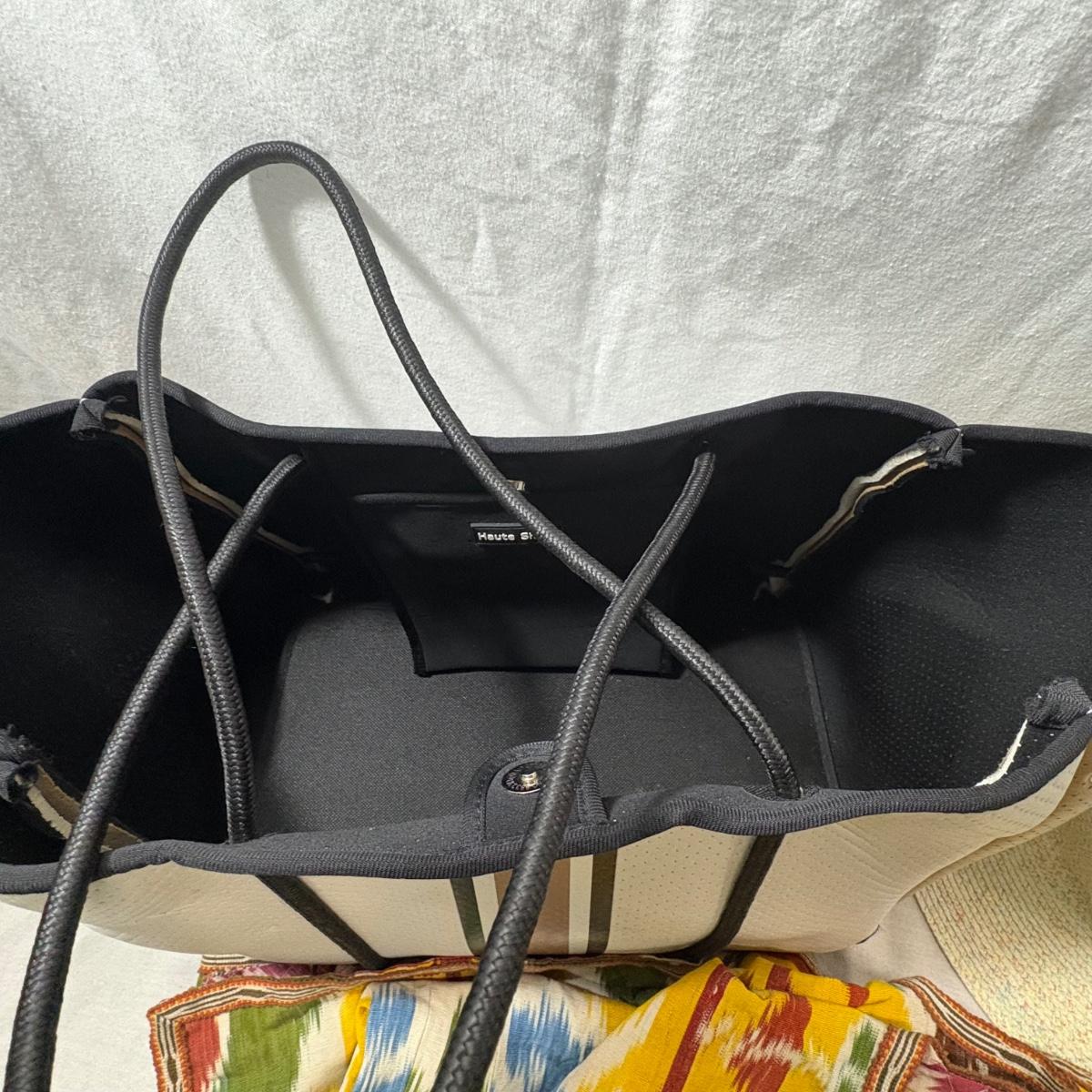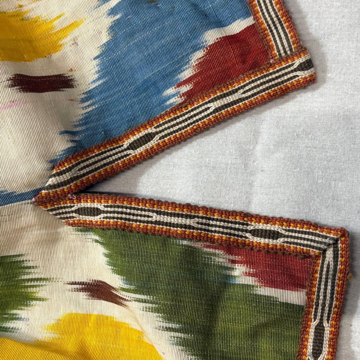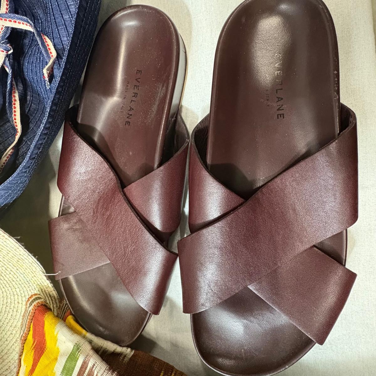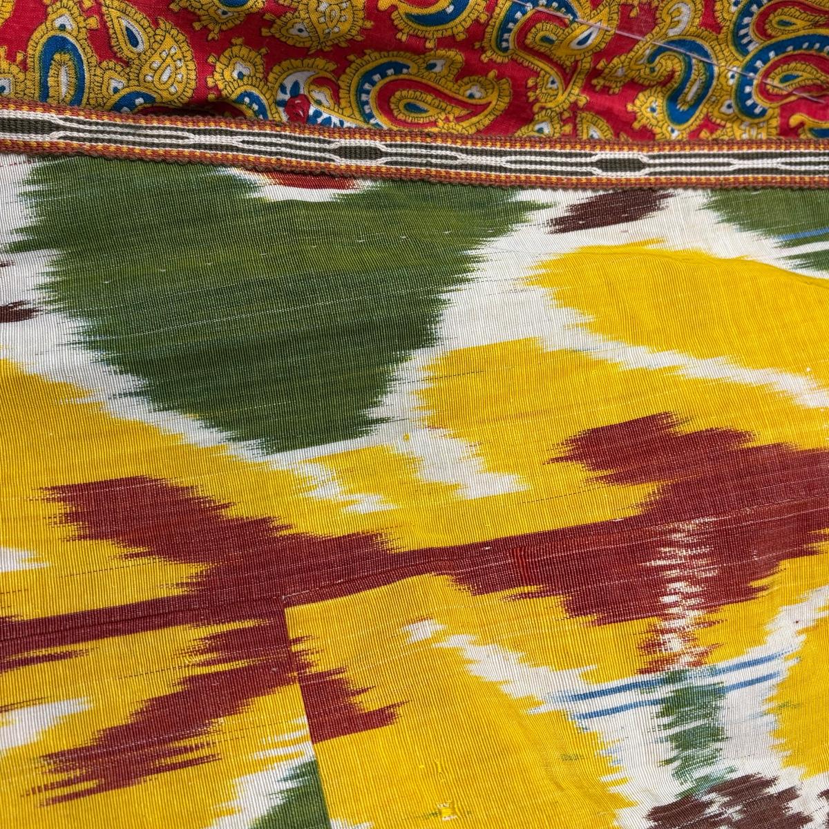 Fabulous Ikat and paisley robe with side darts, side hem slits, and woven trim. No size, (front bust measures approx. 22.5," worn open. Back neck to hem is 47”). Kimono styling; fabric appears to be cotton. Two woven beach hats (8" circumference of the hat, 18" from brim to brim) expandable vinyl tote, and Everlane size 9 slip-ons that appear to be leather, made in Italy.