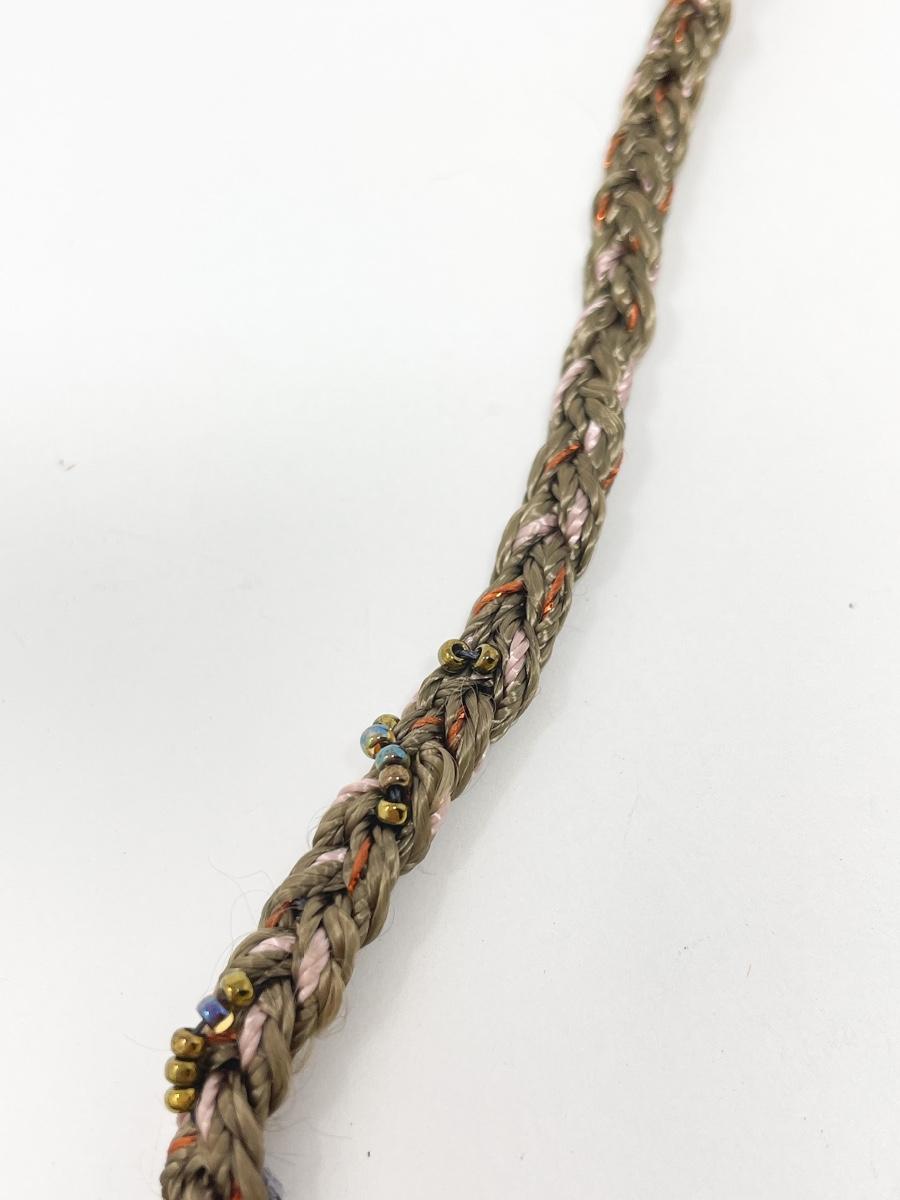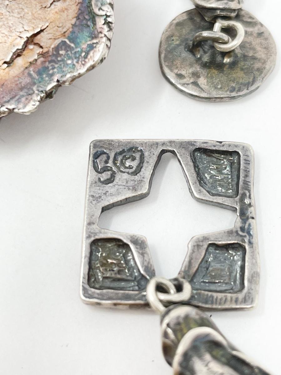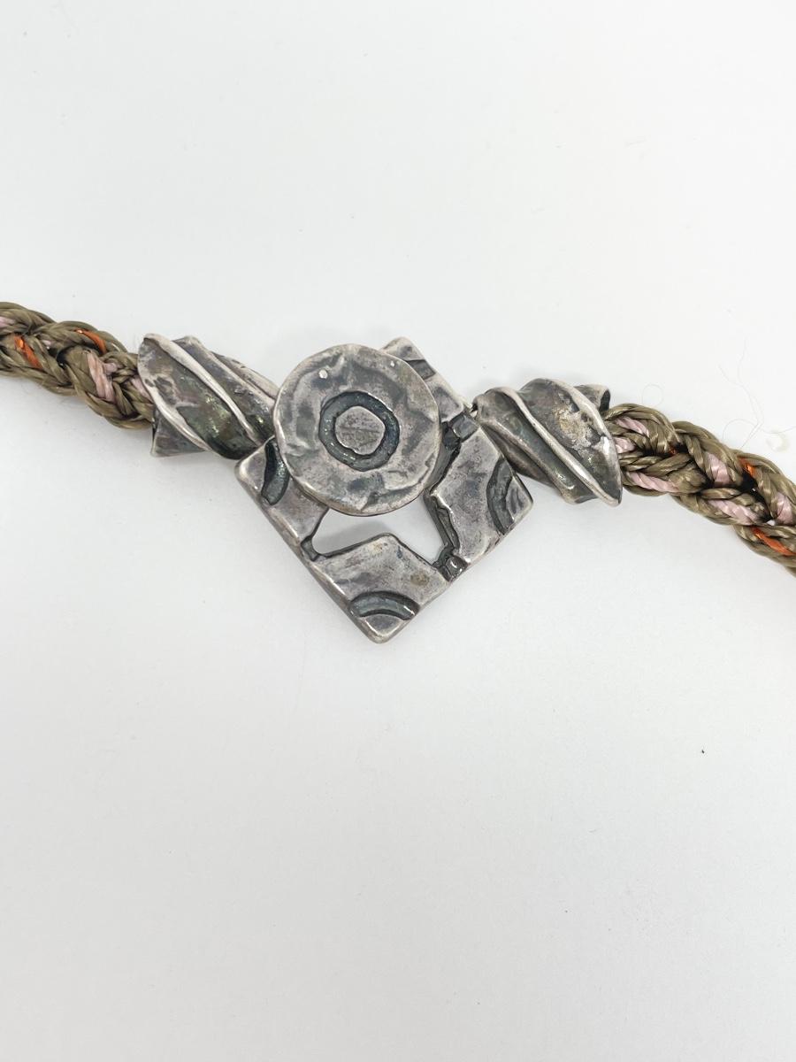 Very unique and cool piece. Colorful piece of stone? Set in silver on a beaded cord. Marked with “S©“ on the back.