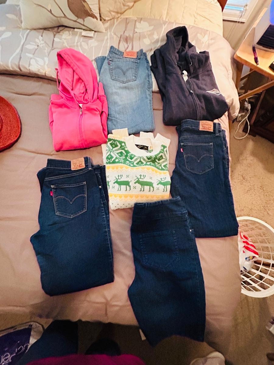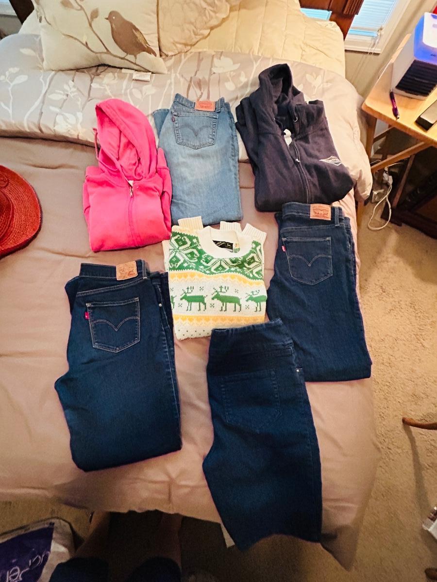 UNIQUE LADIES JOHN DEERE SWEATER, BLUE JEANS AND HOODIES