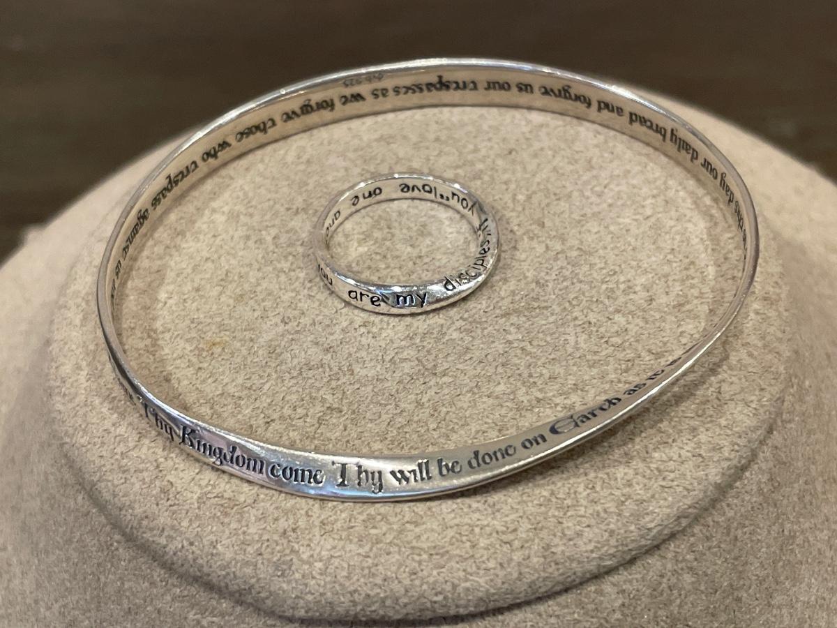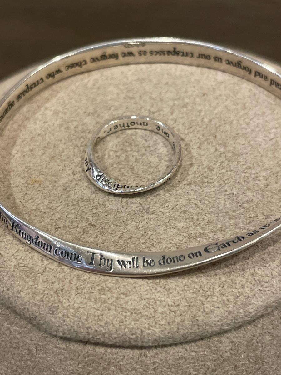Has the words to the Lords Prayer engraved on both bracelet & ring