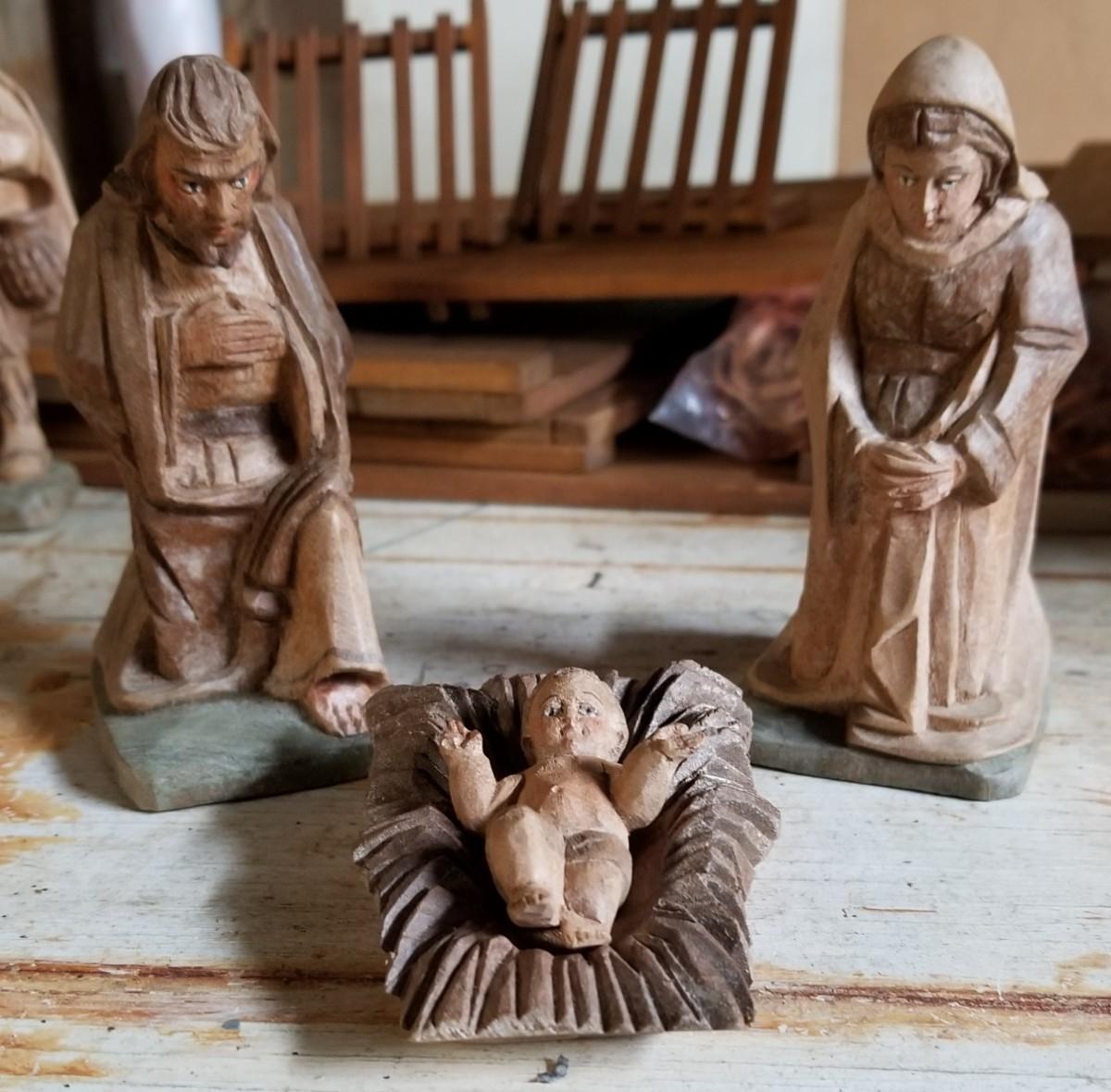 Hand Carved Manger Scene