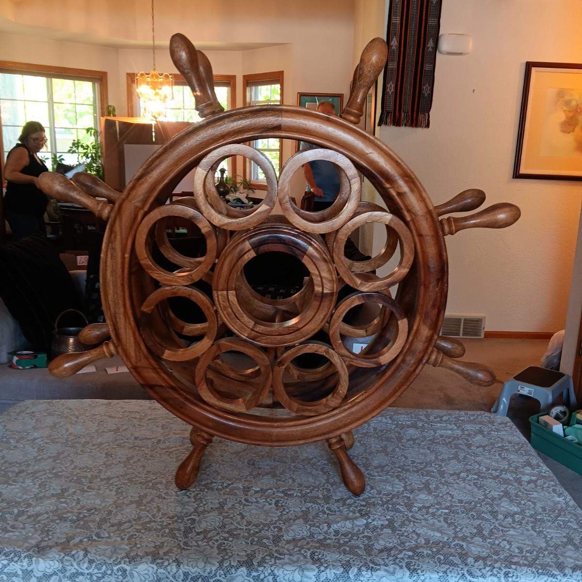 UNIQUE NAUTICAL WOODEN SHIP WHEEL WINE RACK