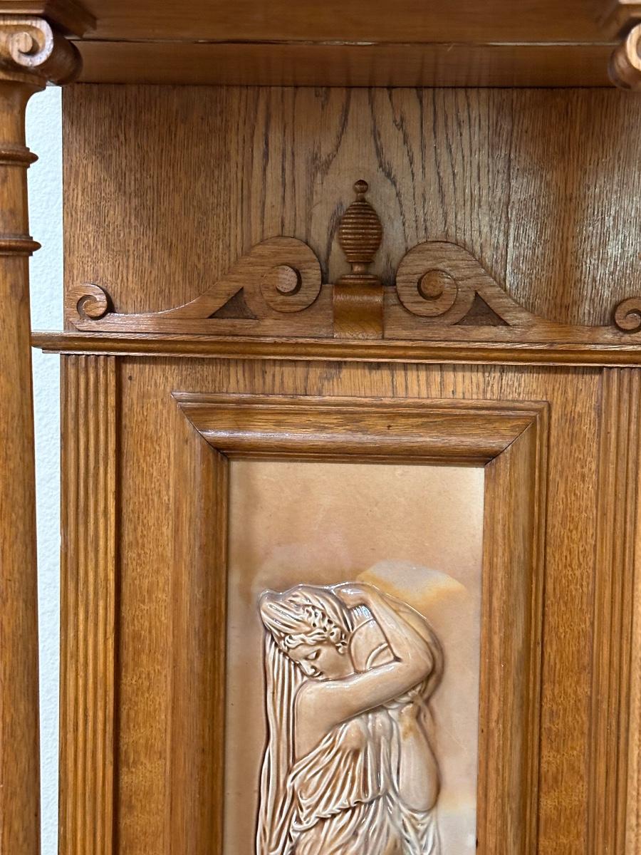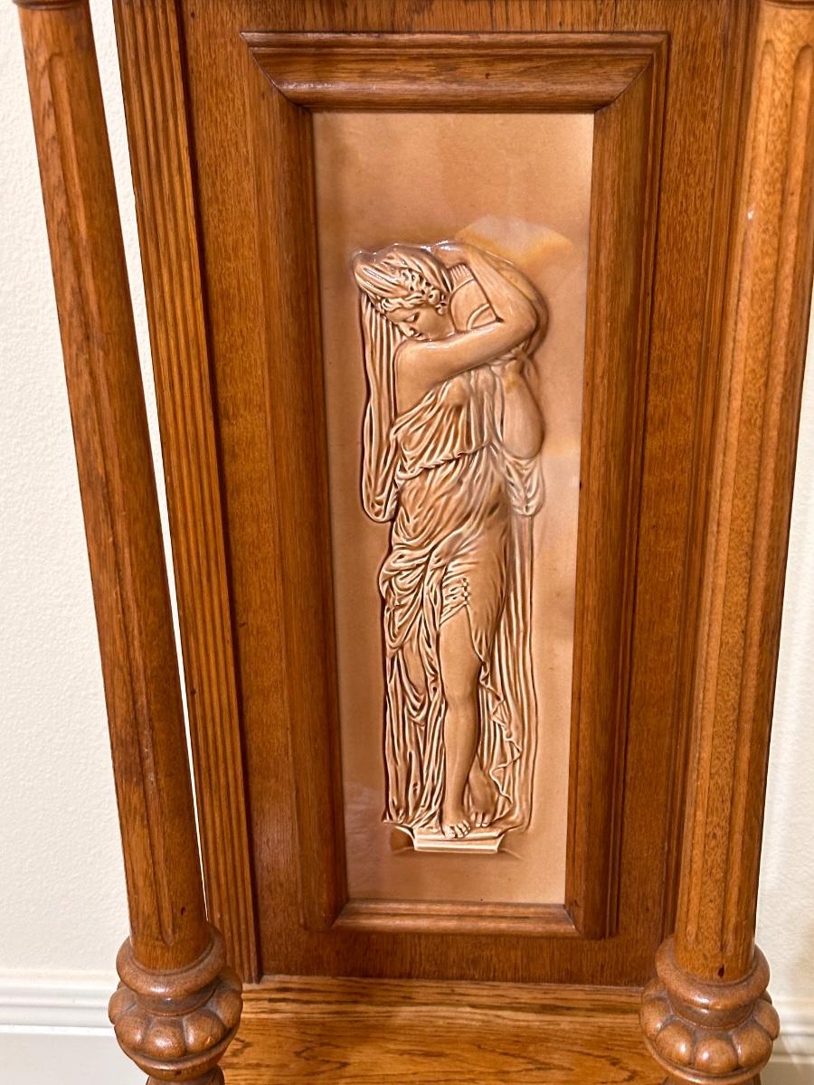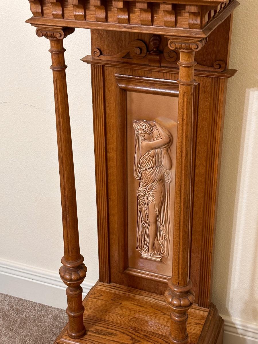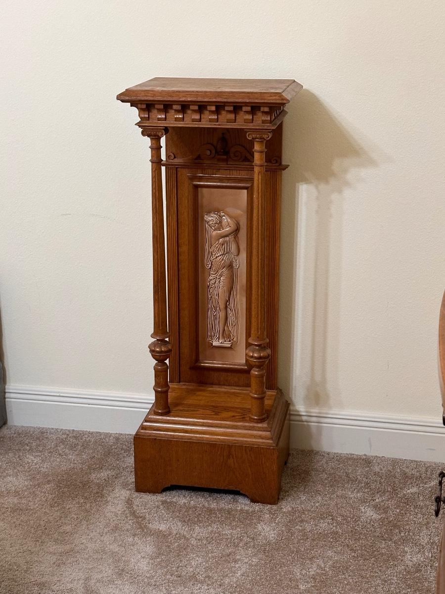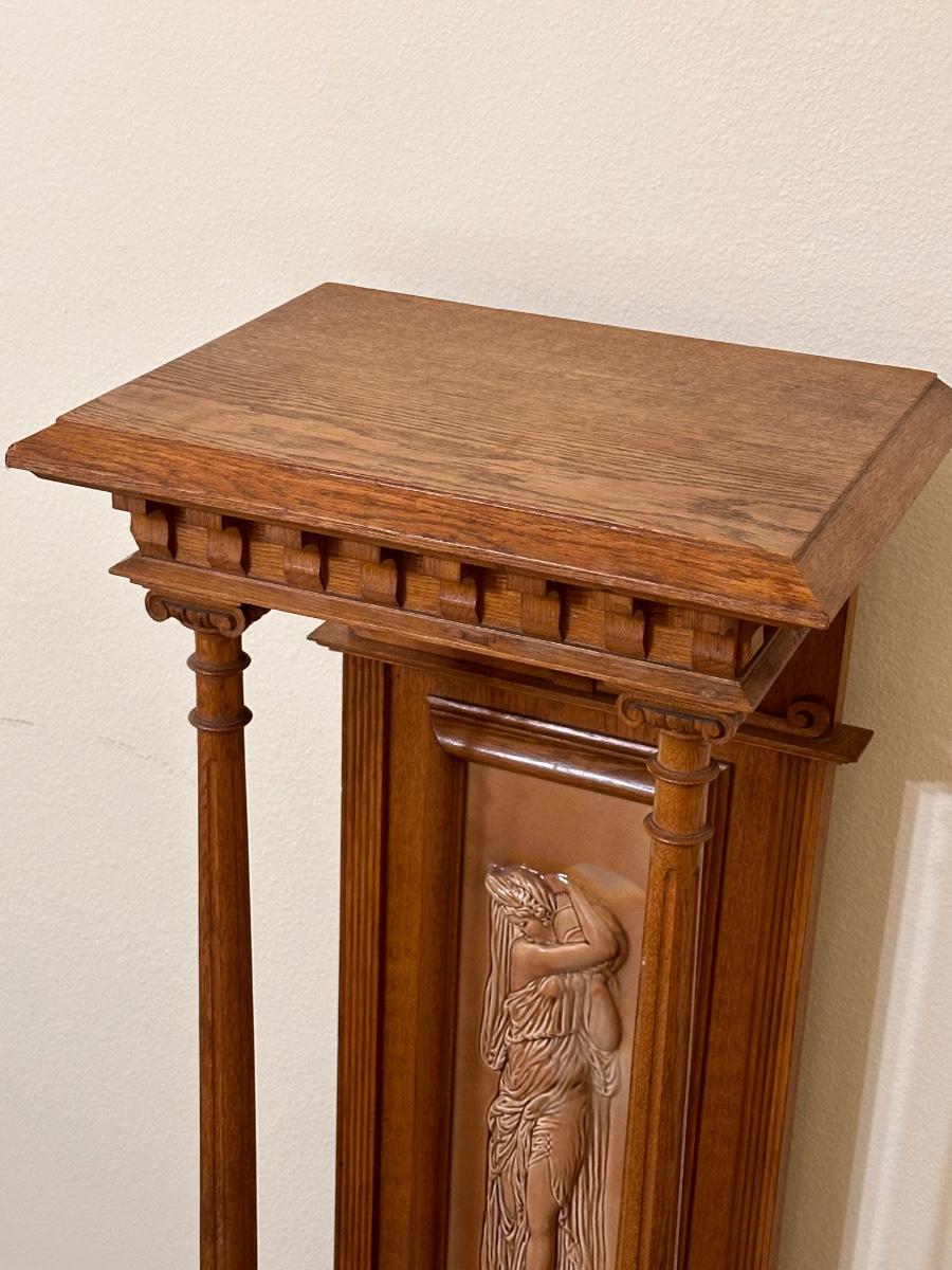 Solid Oak Column Pedestal ~ Porcelain Inner Plaque