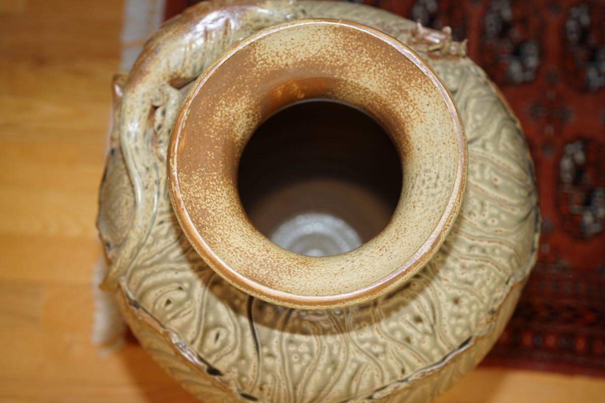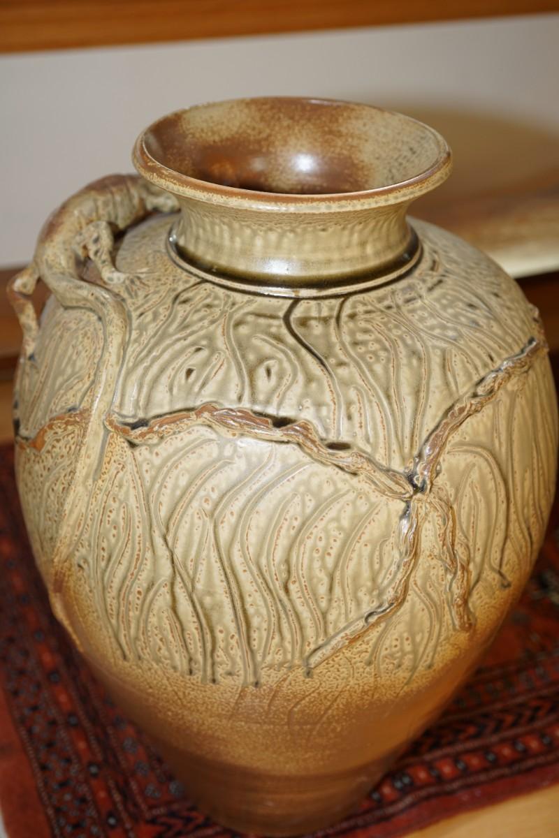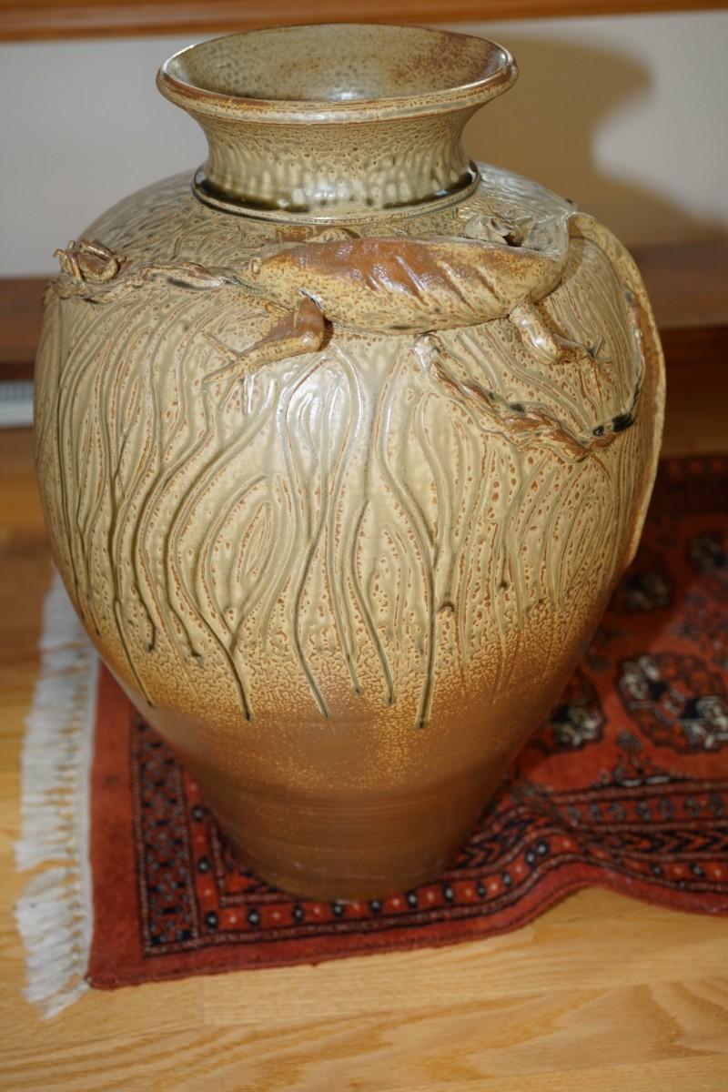 UNIQUE ONE OF A KIND DOOR STUDIO POTTERY LARGE VASE/LIZARD FIGURE APPLIED BY SCOTT DRAVES