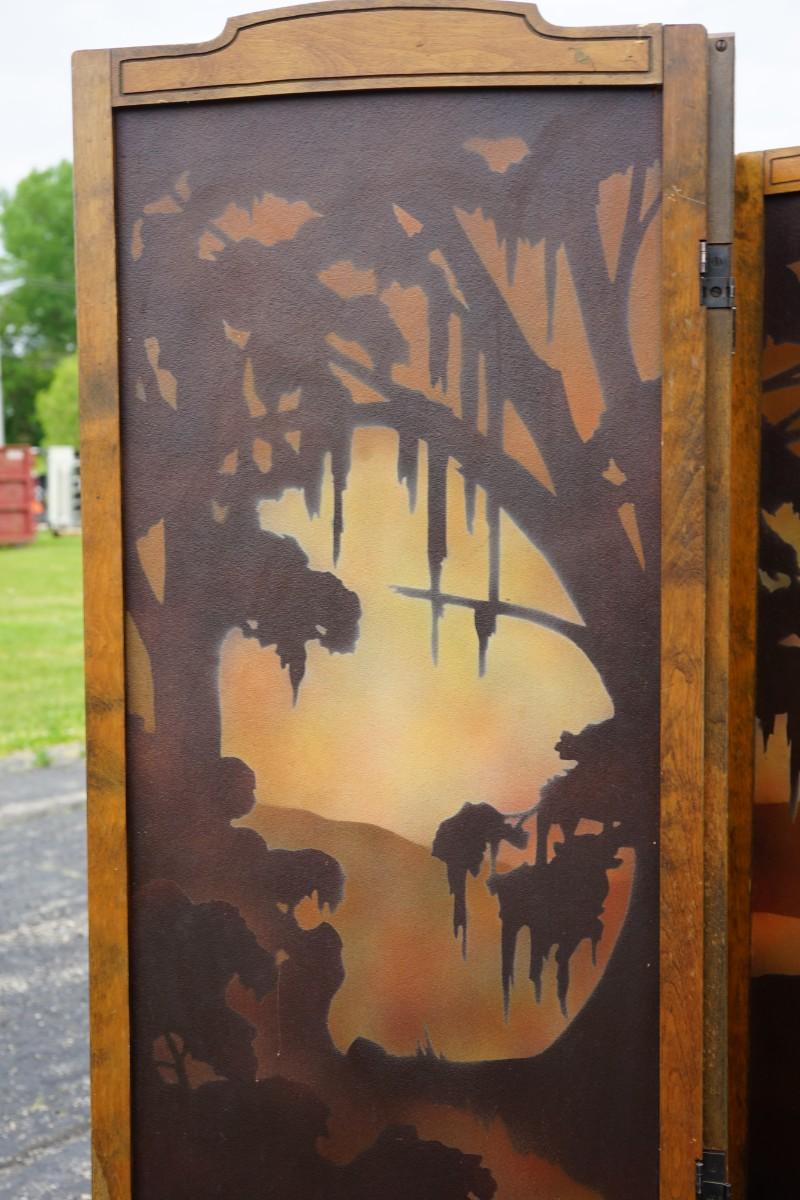condition. No holes are damage noted to the panels. The wood frame has scratches and finish wear but maybe some light TLC could fix.