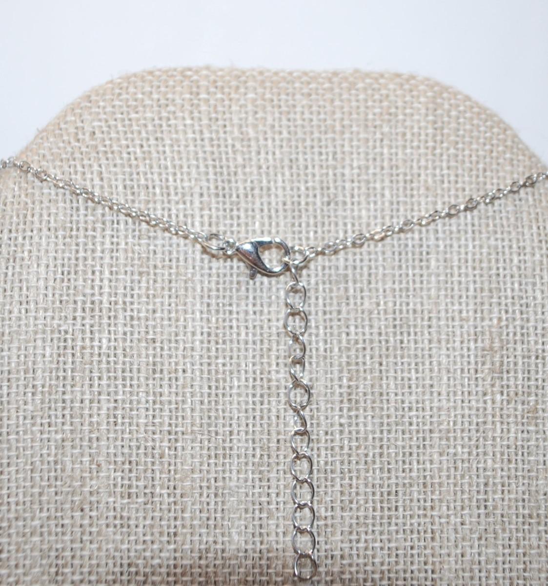 Unique Polymer Blue/Green Square Set in a Graphic Designed PENDANT (¾" Diameter) on a Silver Tone Necklace Chain 18" L