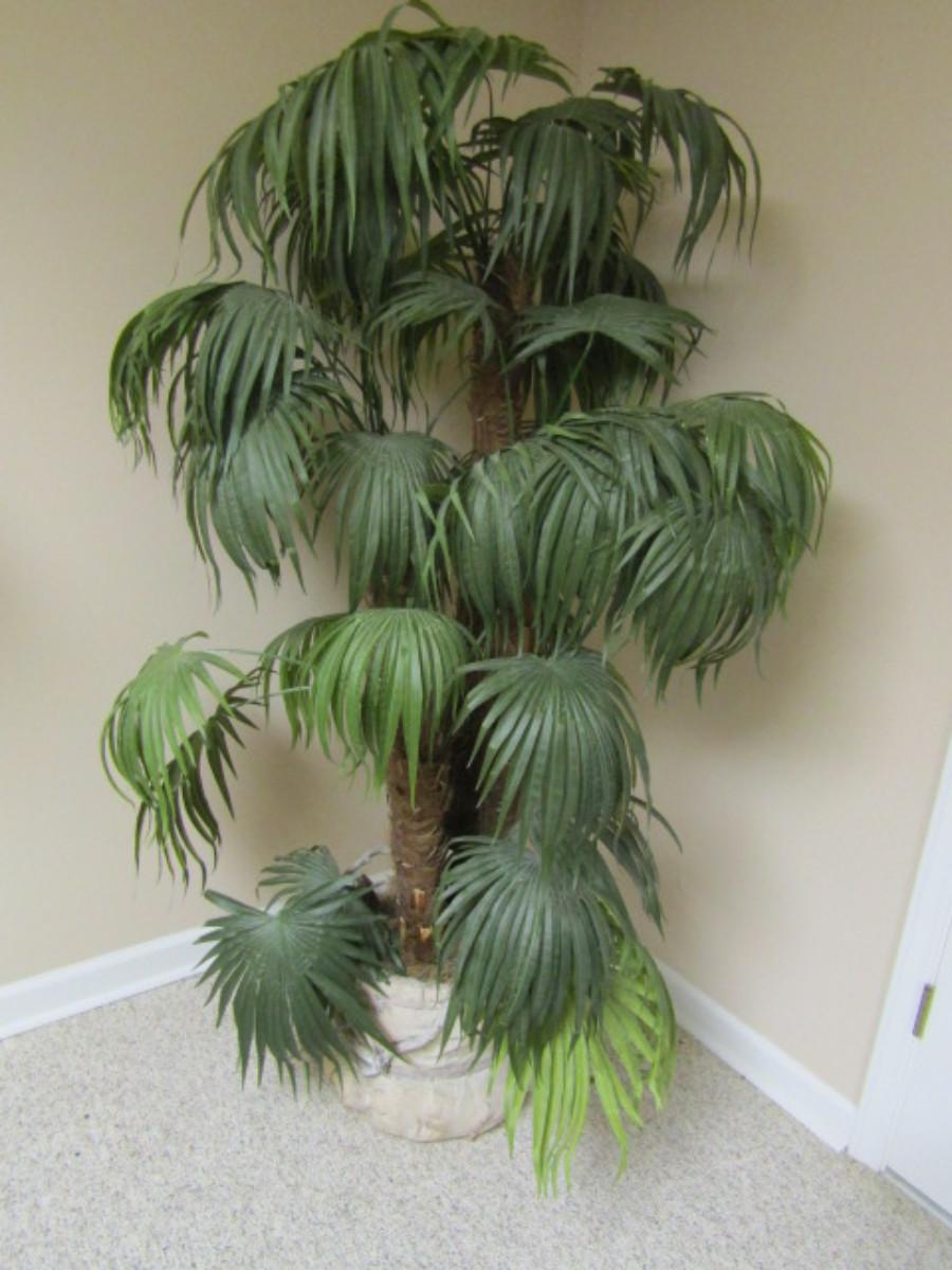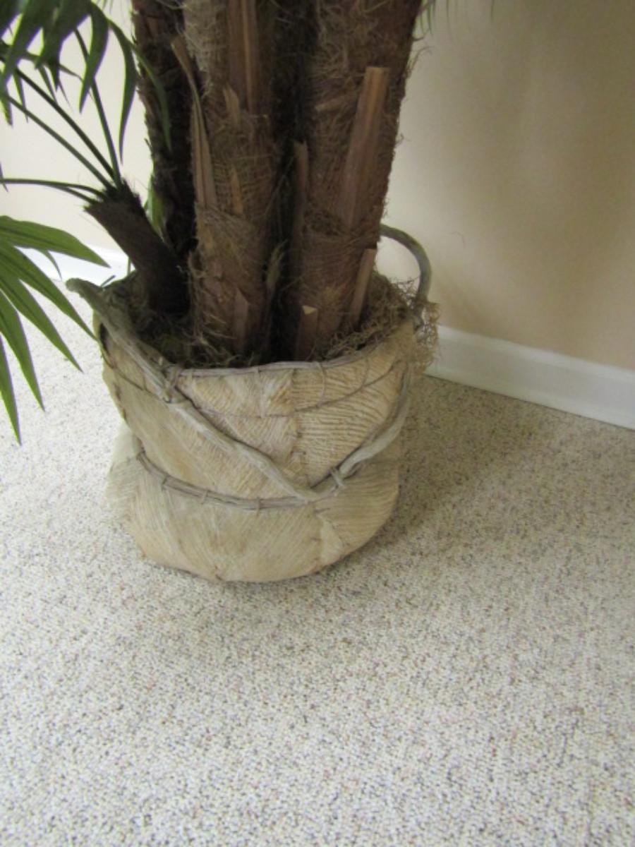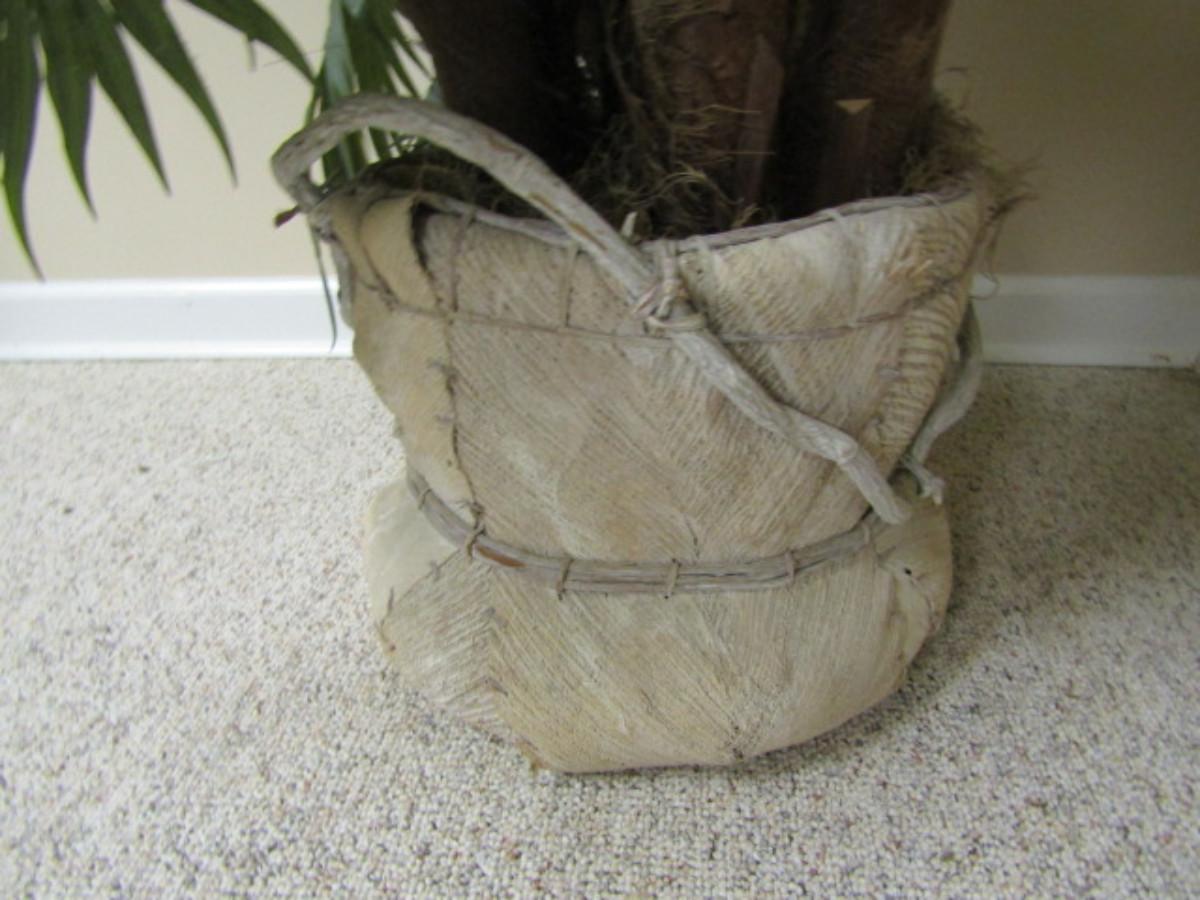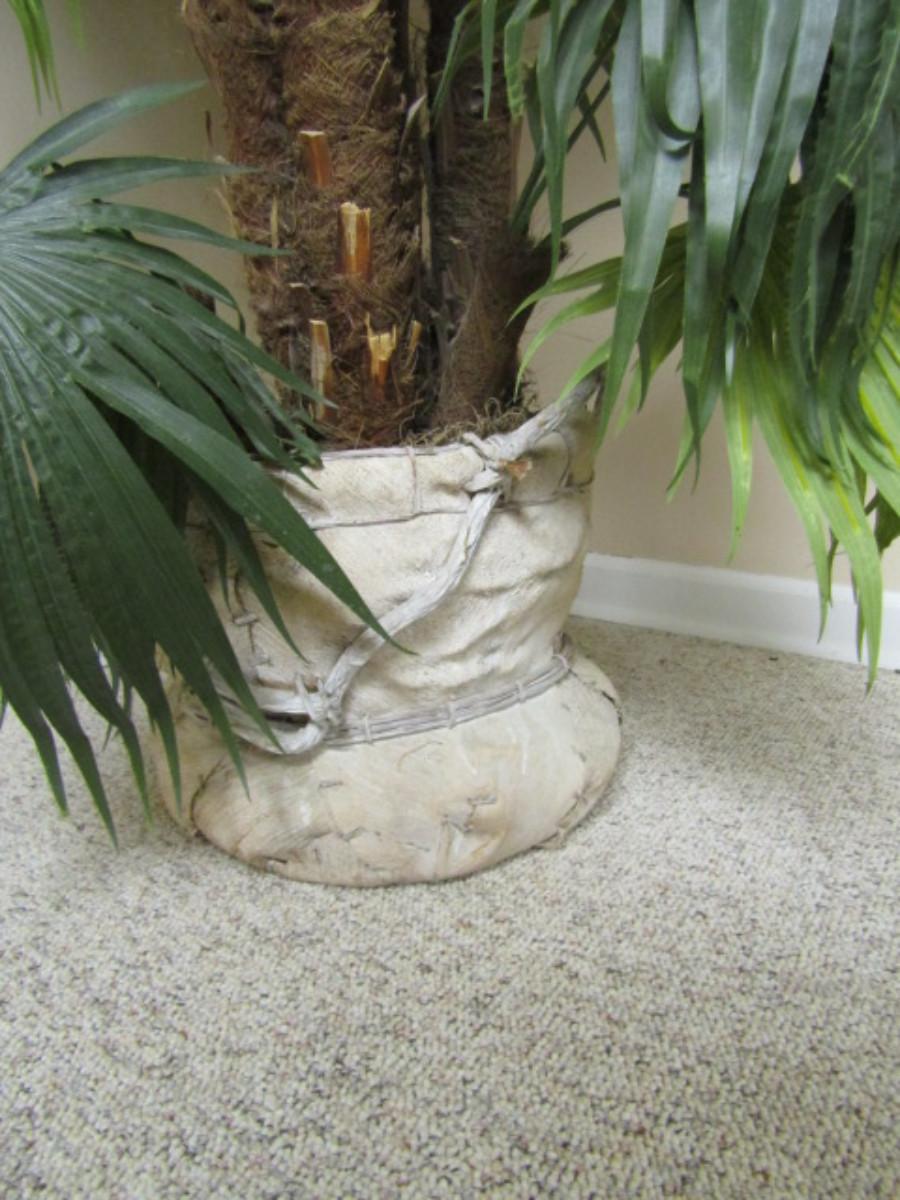Unique Pot Made of Wood and Palm Husk with Artificial Tropical Plant