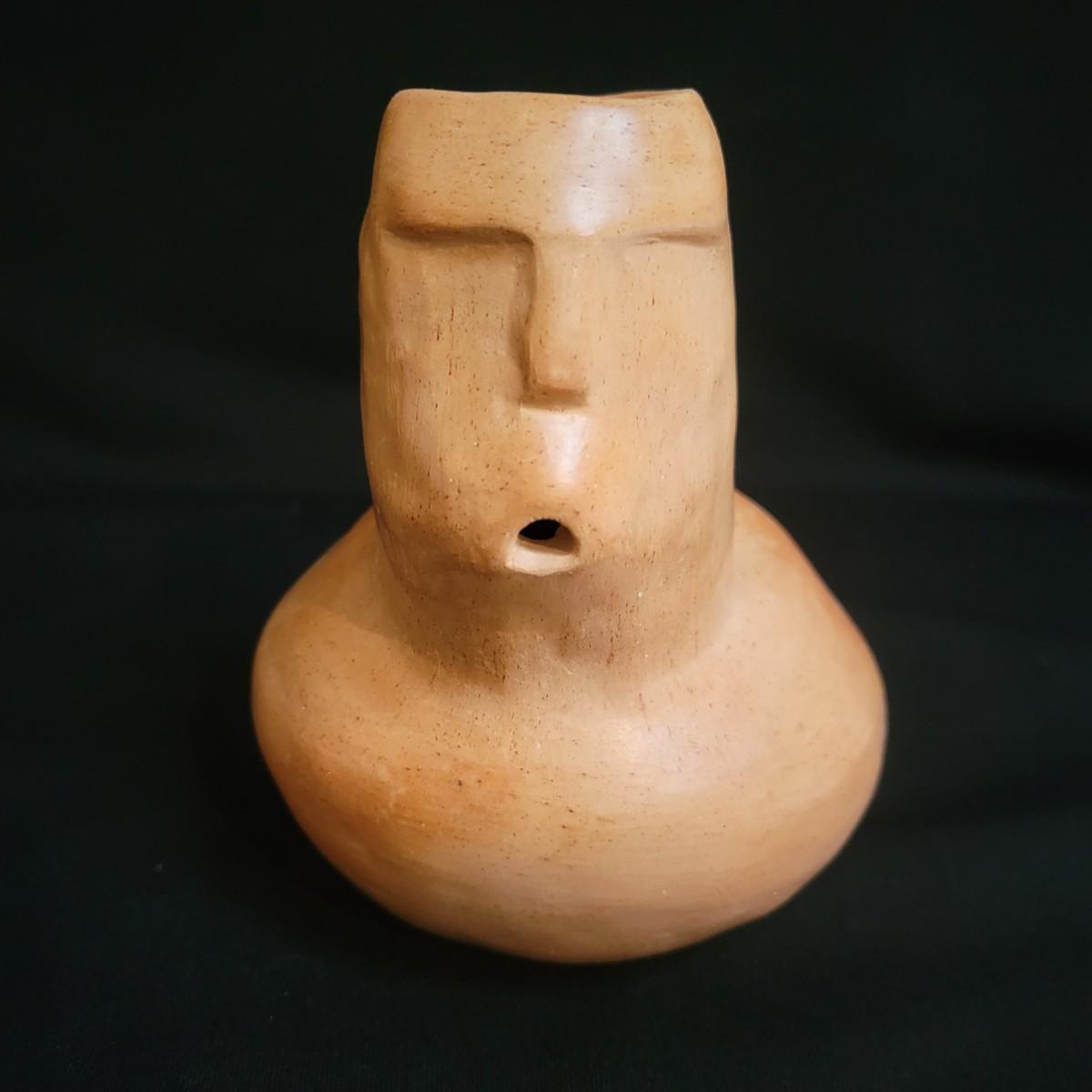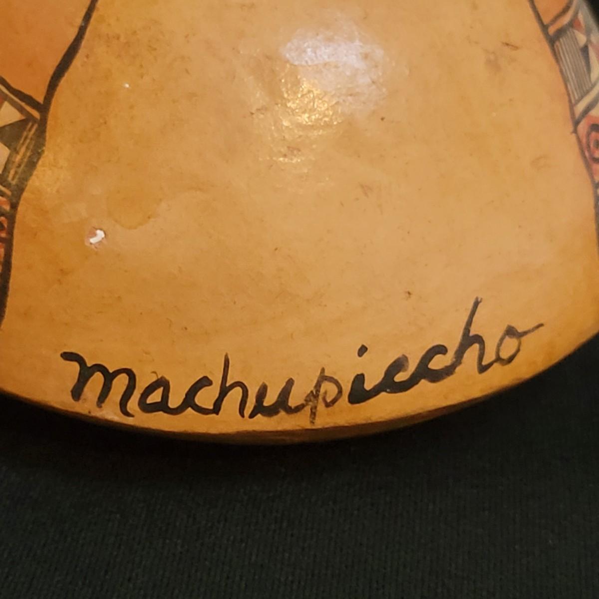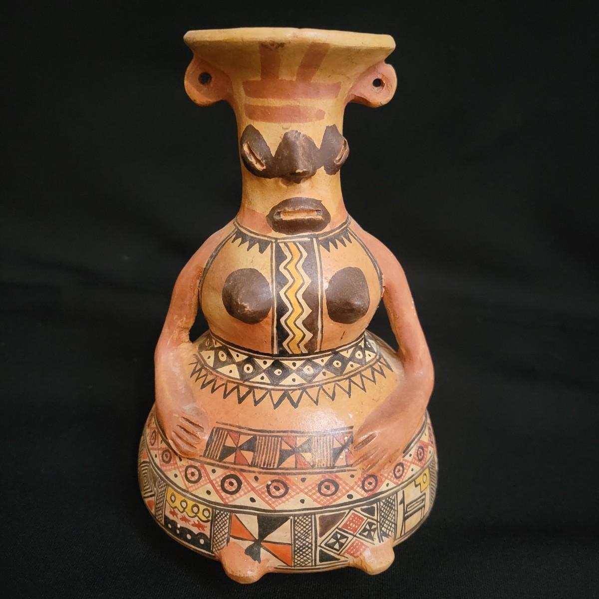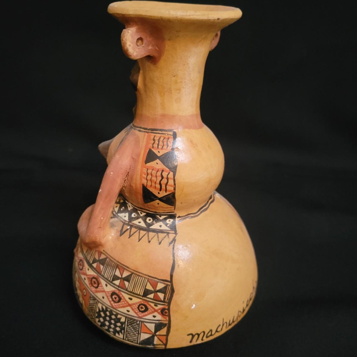 A pair of unique pottery pieces. One piece appears to be hand painted and is also signed. It measures approximately 4.5"D x 6.5"H. The other piece appears to be a small pitcher with a pour spout at the mouth. Shipping available