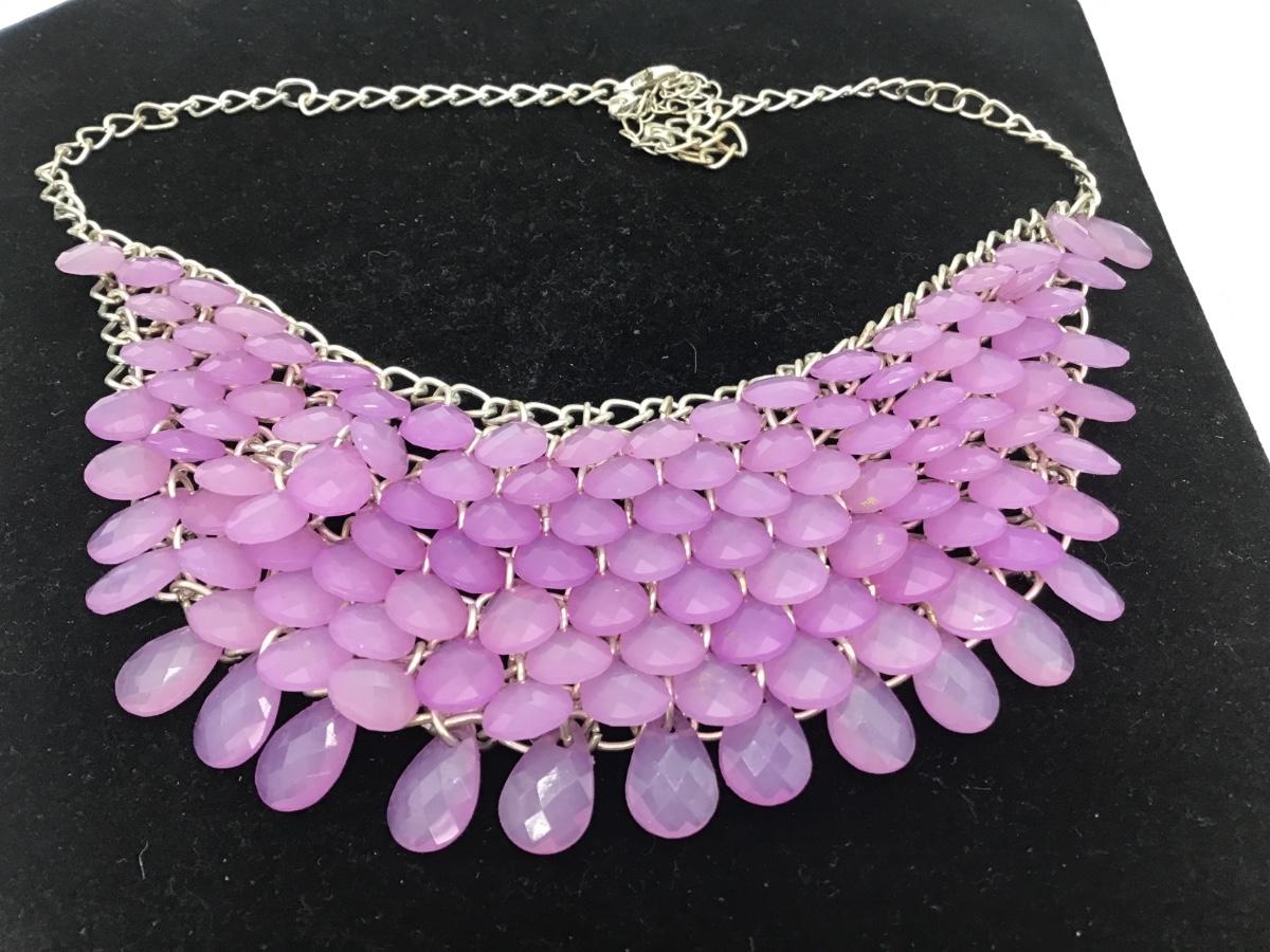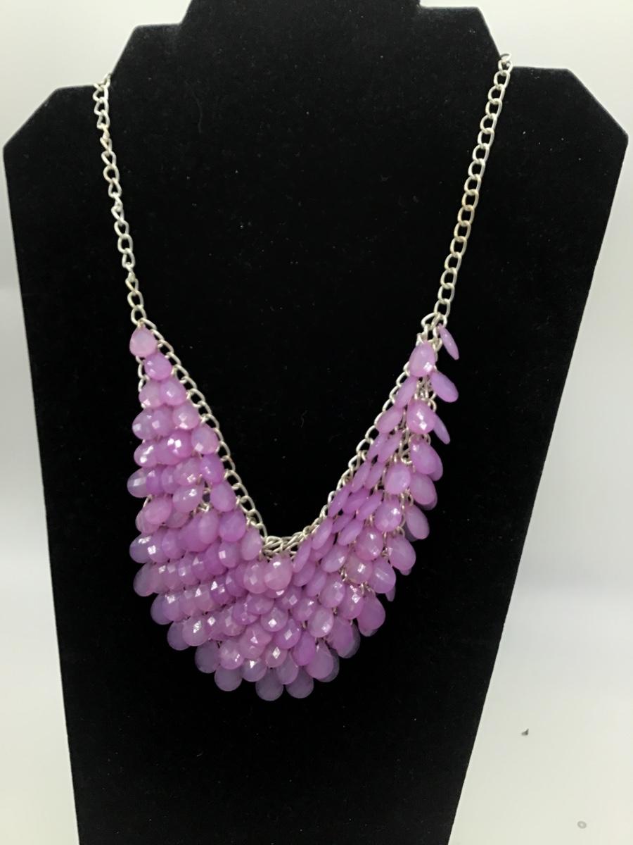 Unique Purple Beaded Scale Necklace Chainmail Silver Tone Costume Silver Tone
