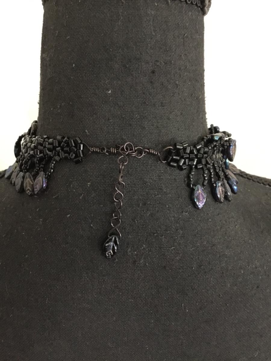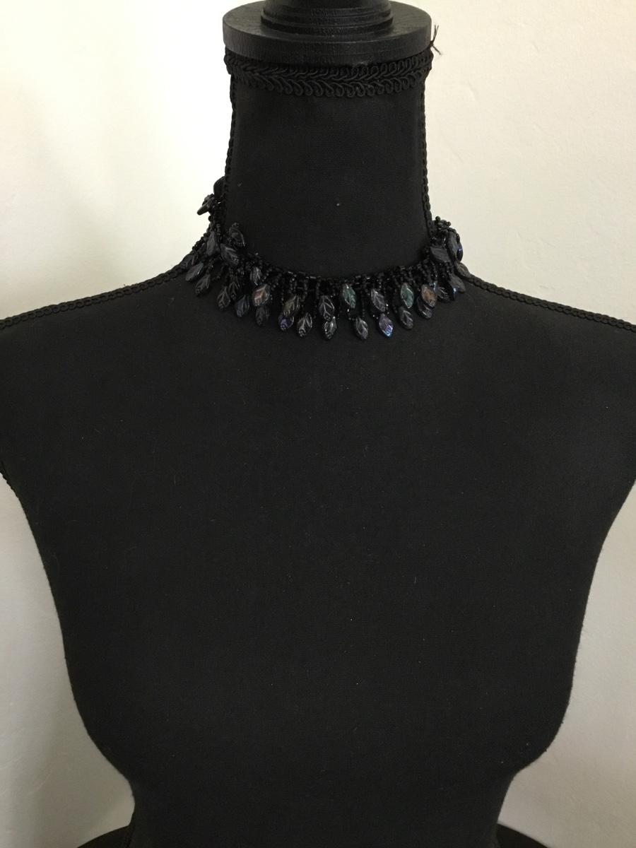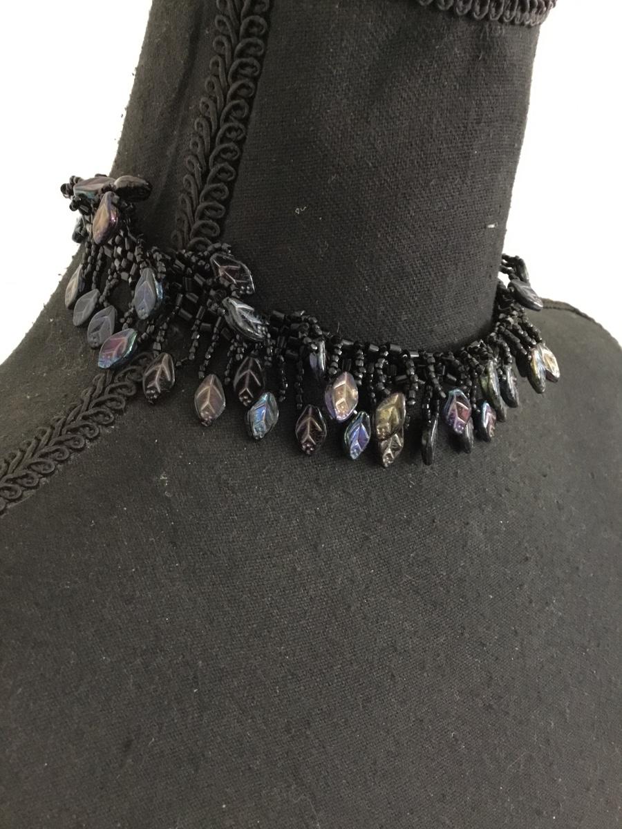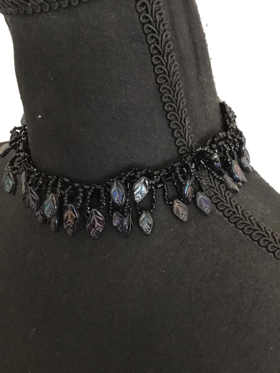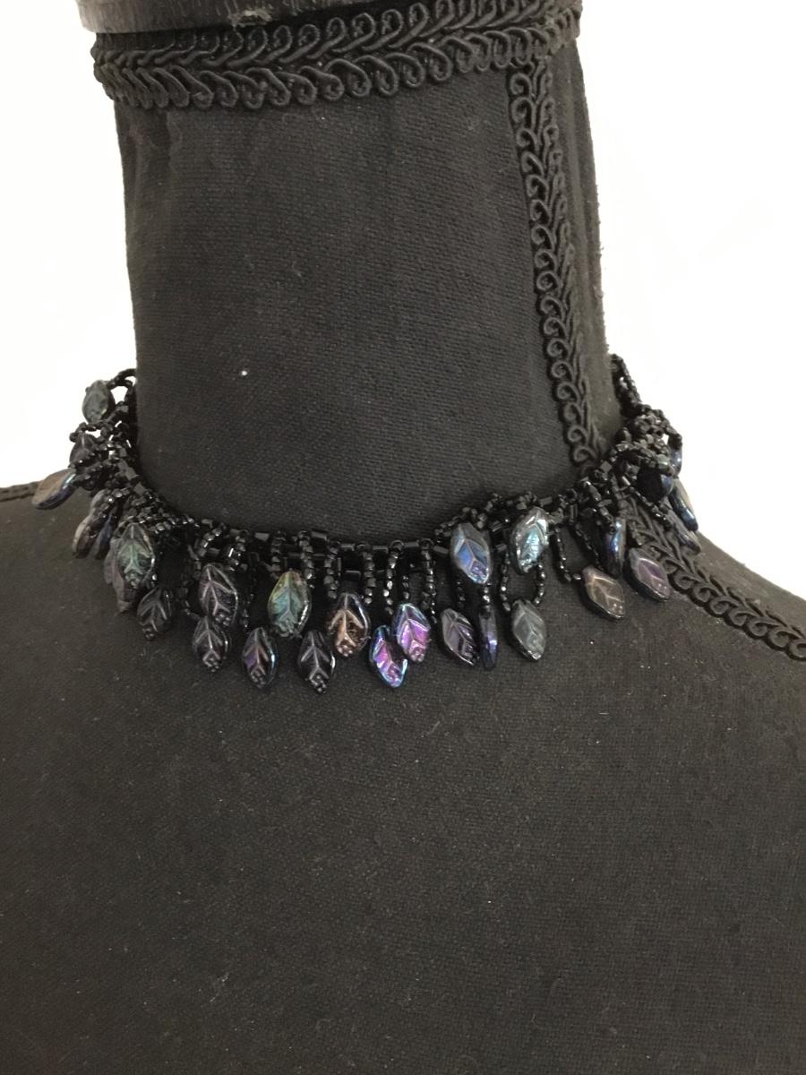 Unique, rare, vintage, black glass, cebid and glass, rainbow glass, leaf charms, choker necklace