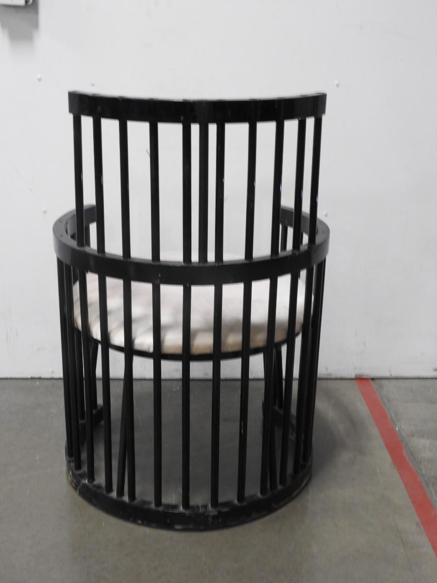 Unique Round Chair: Wood With Black Lacquer, Cushion, Solid, Comfortable, Needs Work