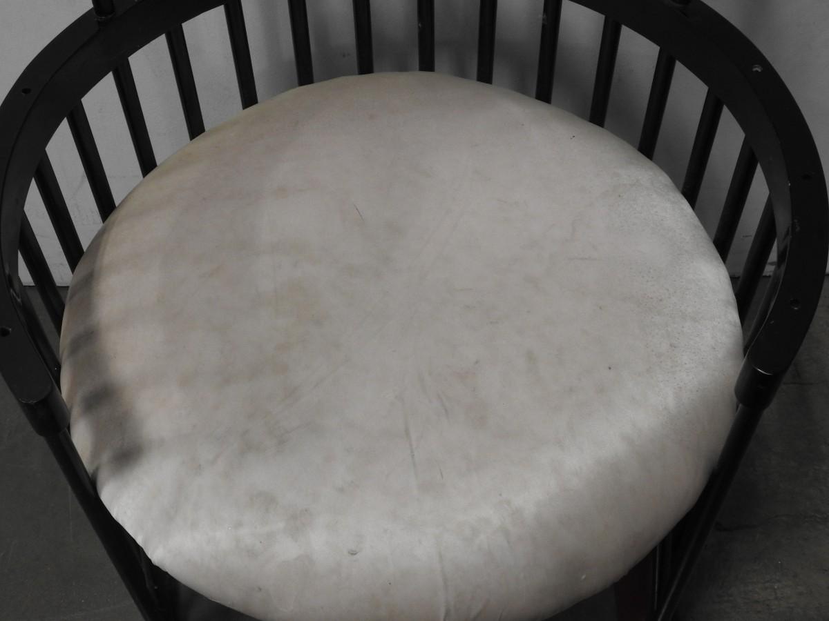 Unique Round Chair: Wood, Black Lacquer, Cushion, Solid, Comfortable, Needs Work