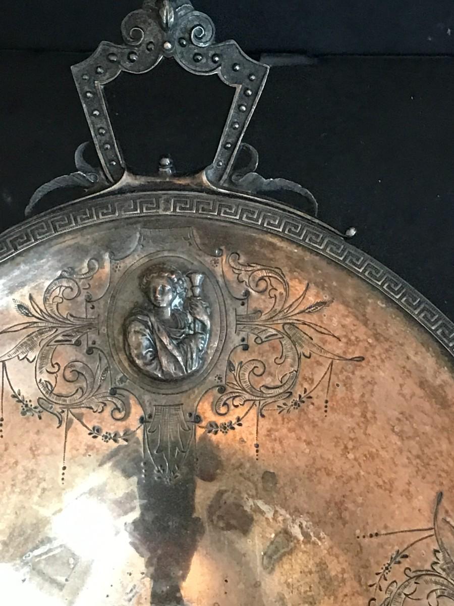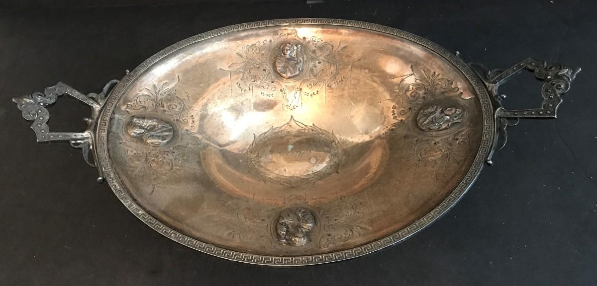 Gorgeous server - handles look like marcasite , rim looks like a Greek key pattern also has 4 cameo type faces.