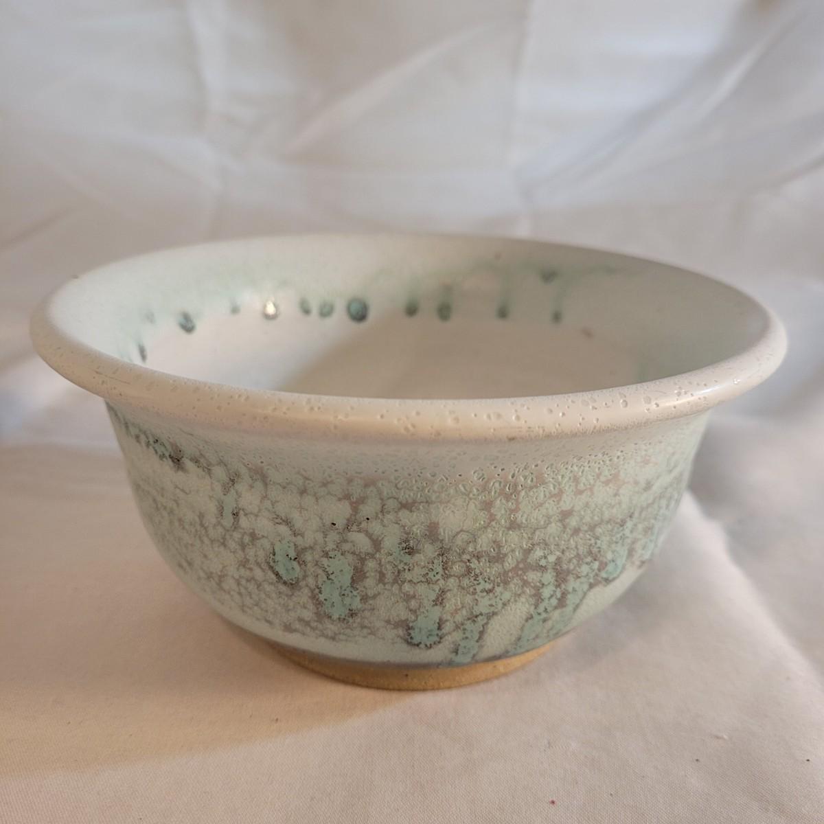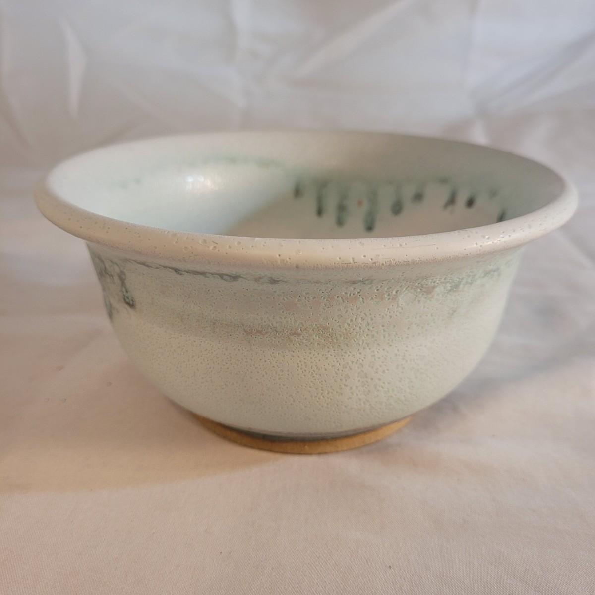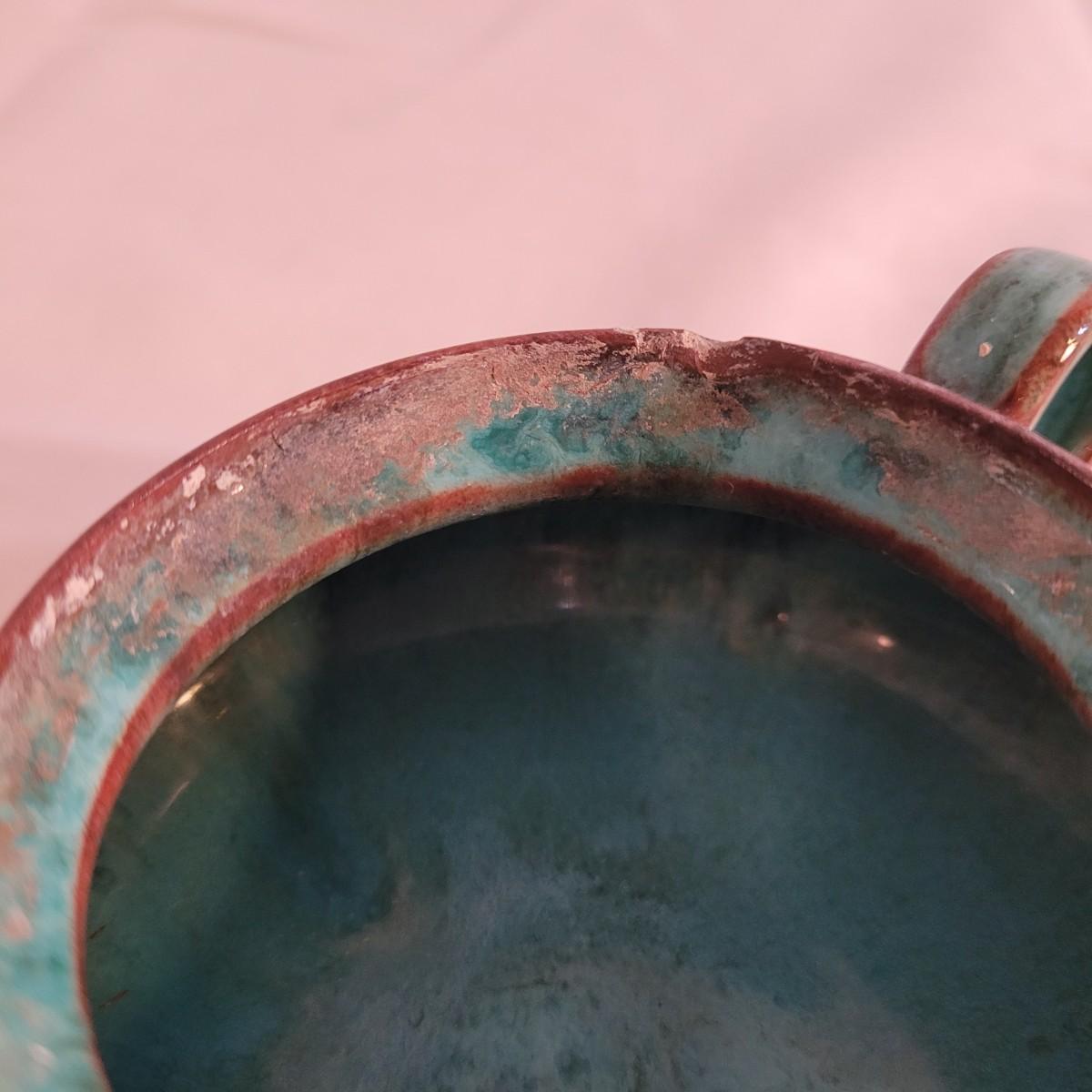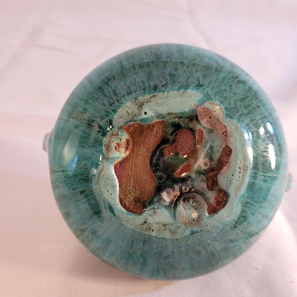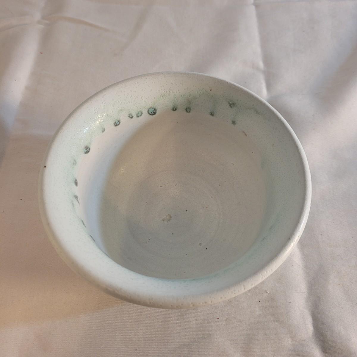 A lovely collection of unique pottery pieces in a many shades of blue. Large bowl is signed by "Powell," and small bowl made by Pisgah Forest Pottery. Some chipping on small vessel (see photos), other pieces in excellent condition. Vase measures approximately 8"W at opening x11"H. Shipping available.