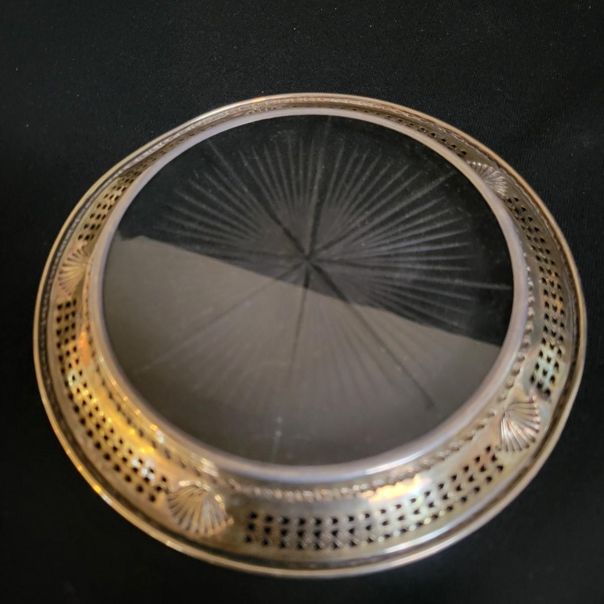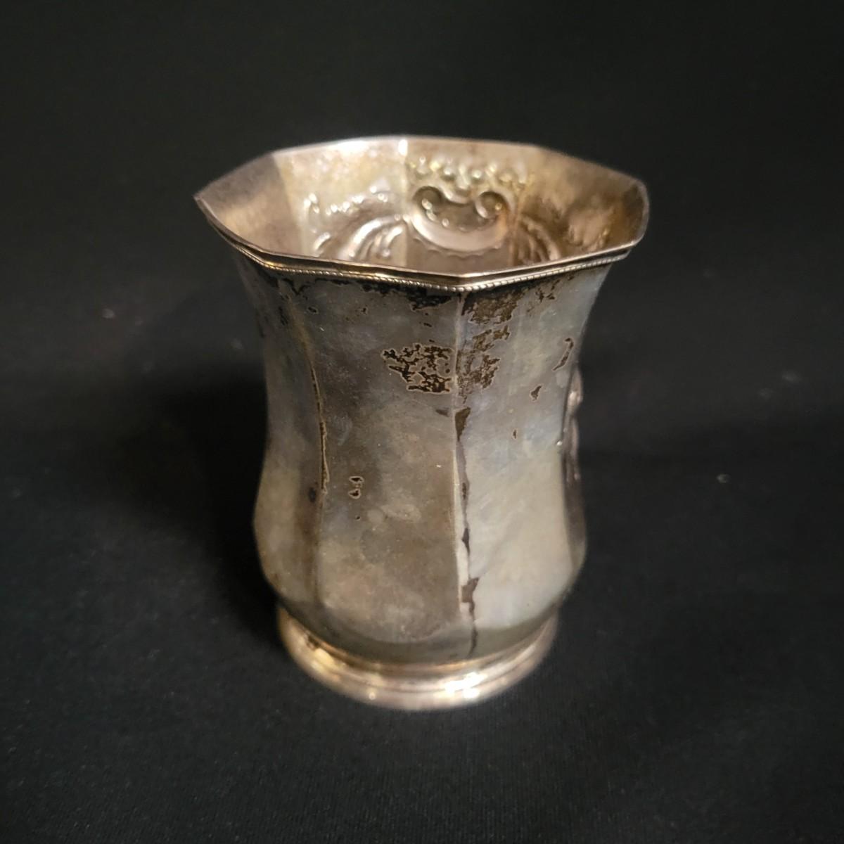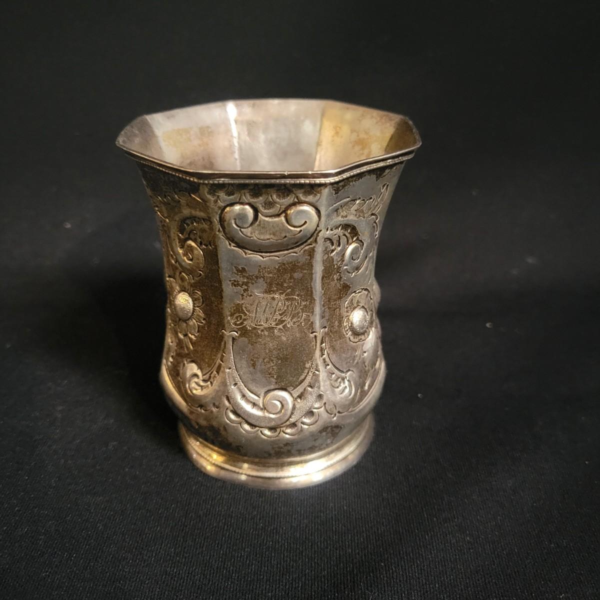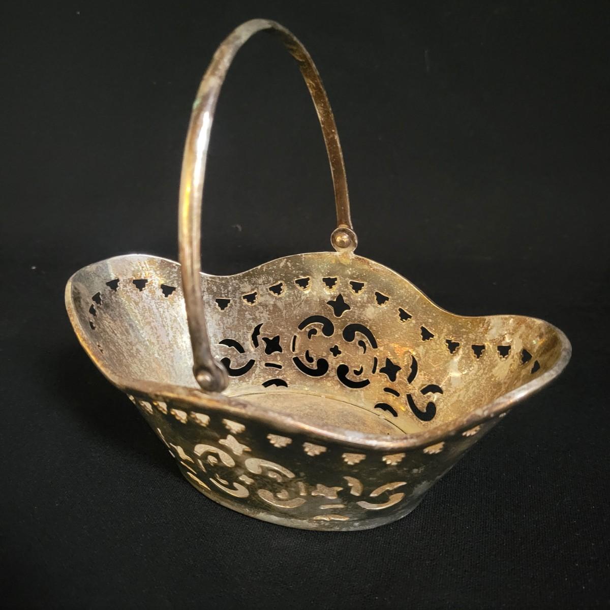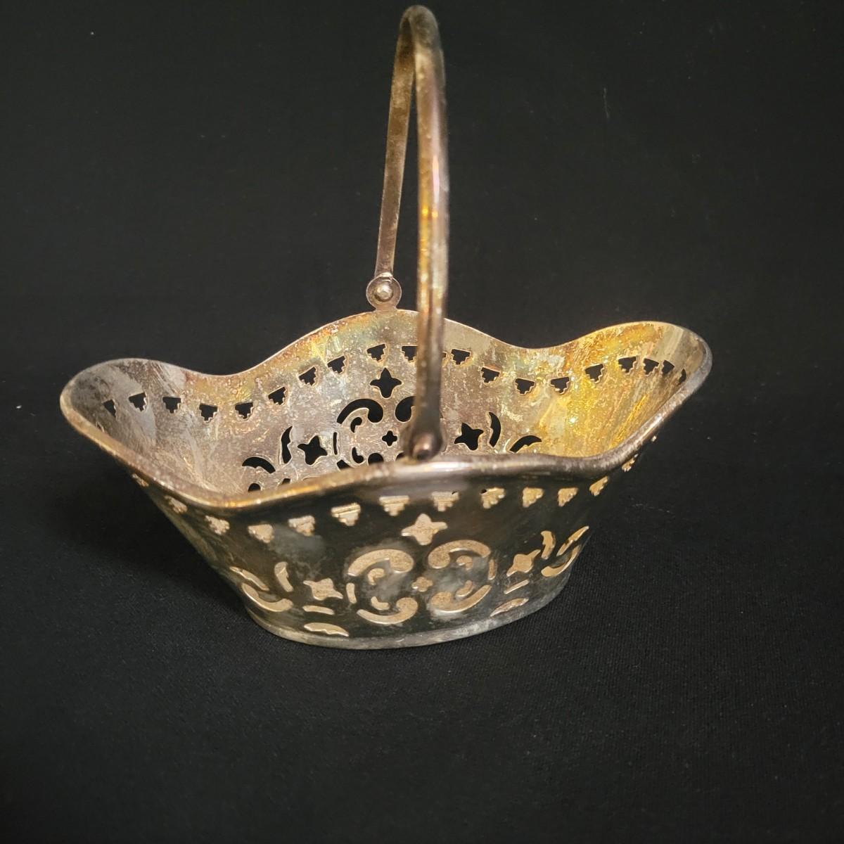 An assortment 13 unique silverplate items that includes a bowl, cups, a basket, a glass plate with a silver rim and more. Manufacturers include Reed and Barton, Godinger, International Silver Co and more. The bowl measures approximately 6.5"D x 3"H. See images for examples of etchings and engravings. Shipping available