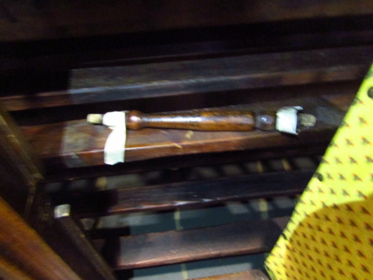 Unique Solid Wood Spindle Sided Cabinet. The spindle that is missing from the front door is included- please see pictures.