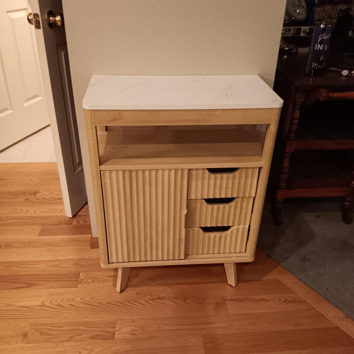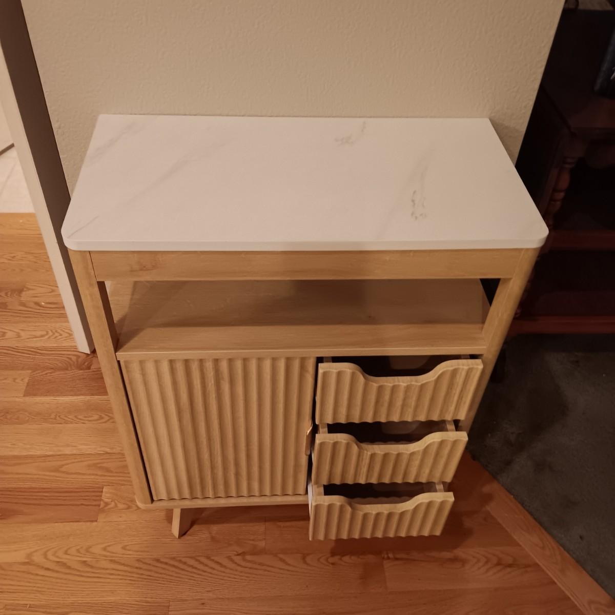 UNIQUE STAND WITH DRAWERS AND SLIDING DOOR