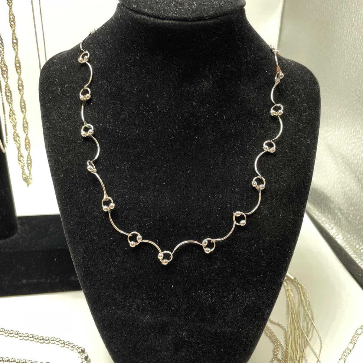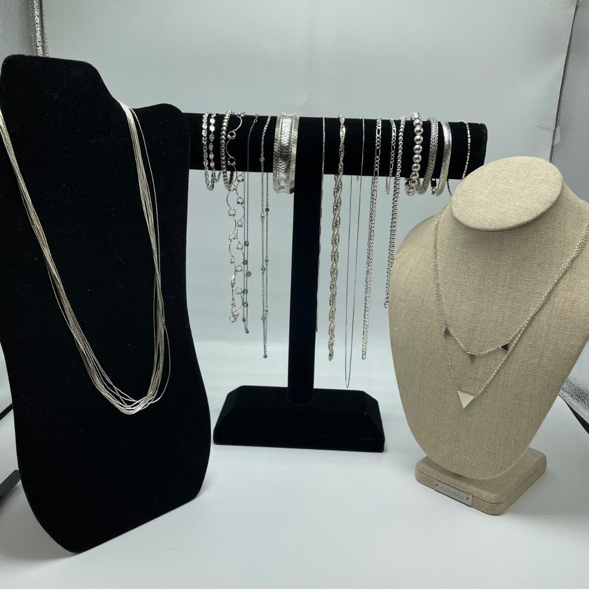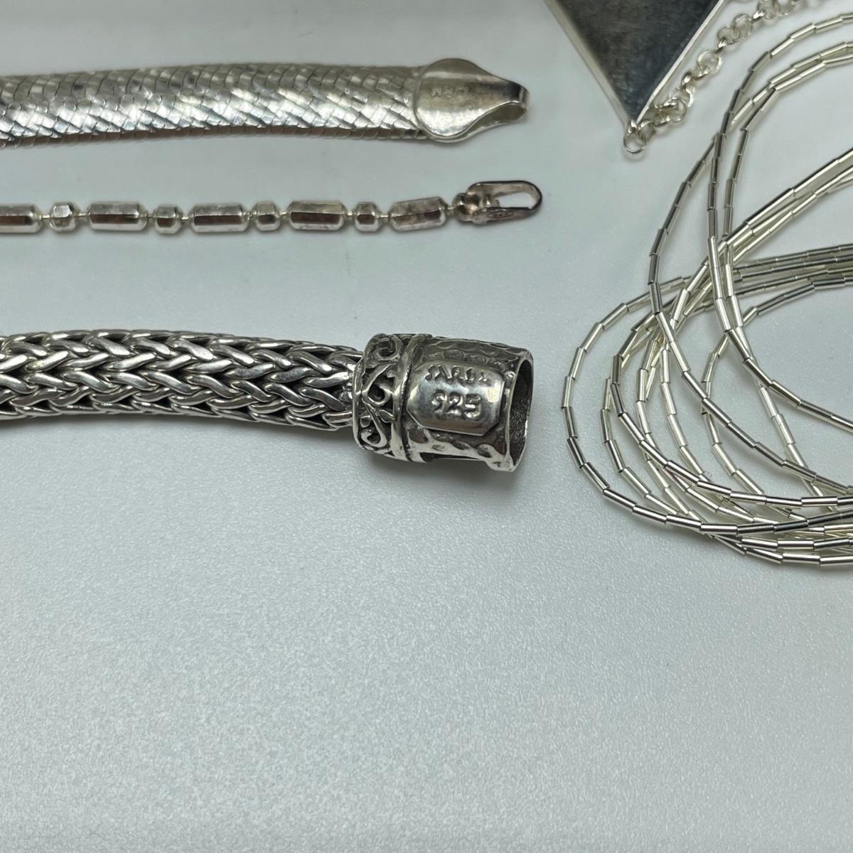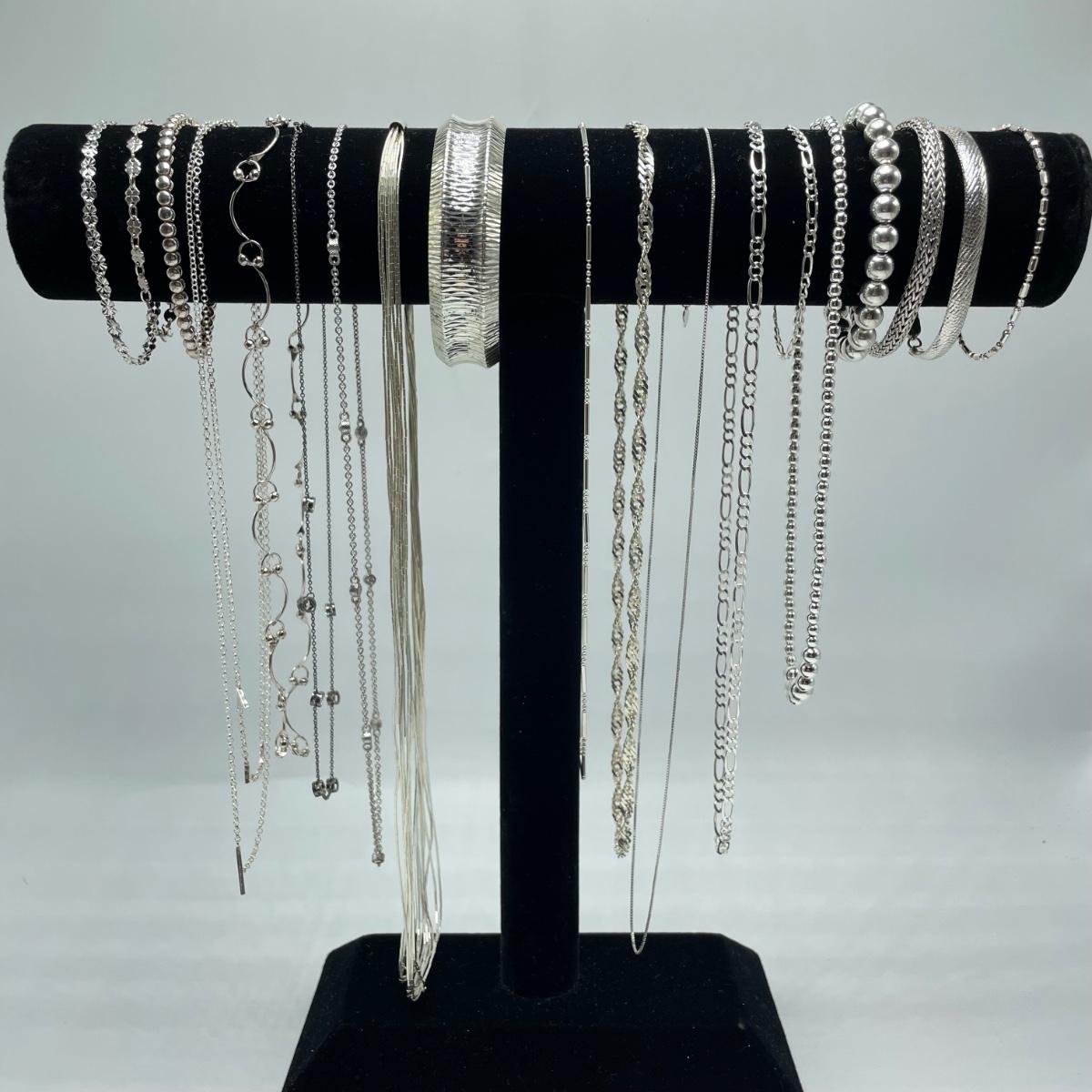 A matching set with bracelet and necklace plus another beaded necklace that complements a bracelet noted in photos. Lot contains a total of nine bracelets and and ten necklaces, each hosting a 925 stamp. The longest necklaces are 24” these are the multi strand and one that can be adjusted with a heart charm. The heaviest bracelet is also marked Sarda. Please see photos for all markings found. All sales are final. No returns or refunds. Please bid accordingly.