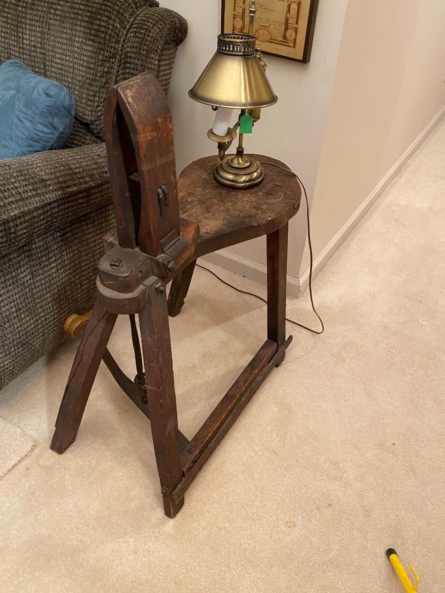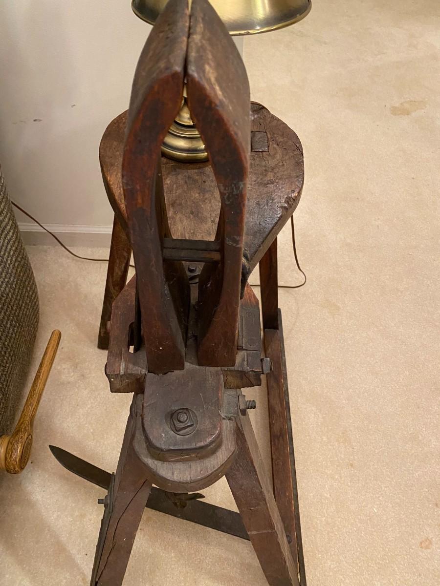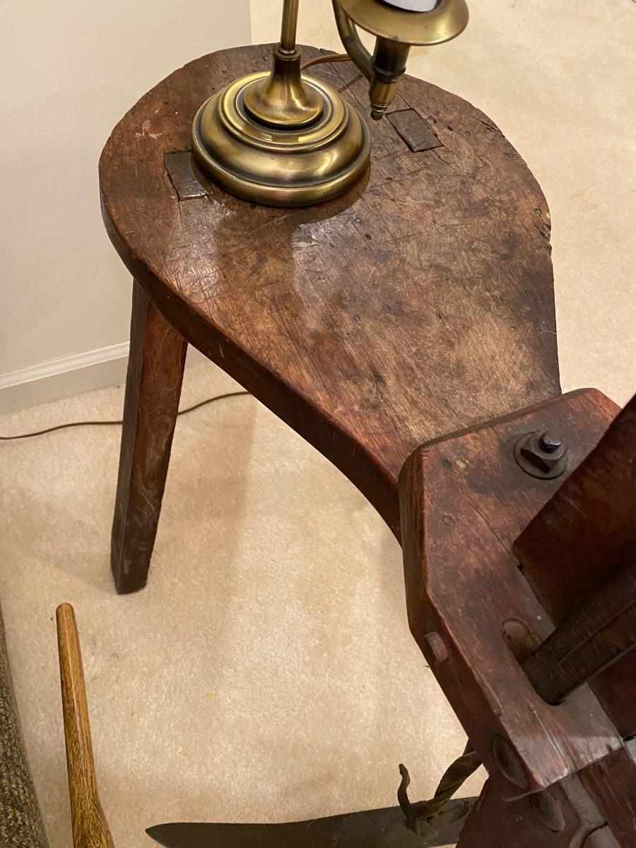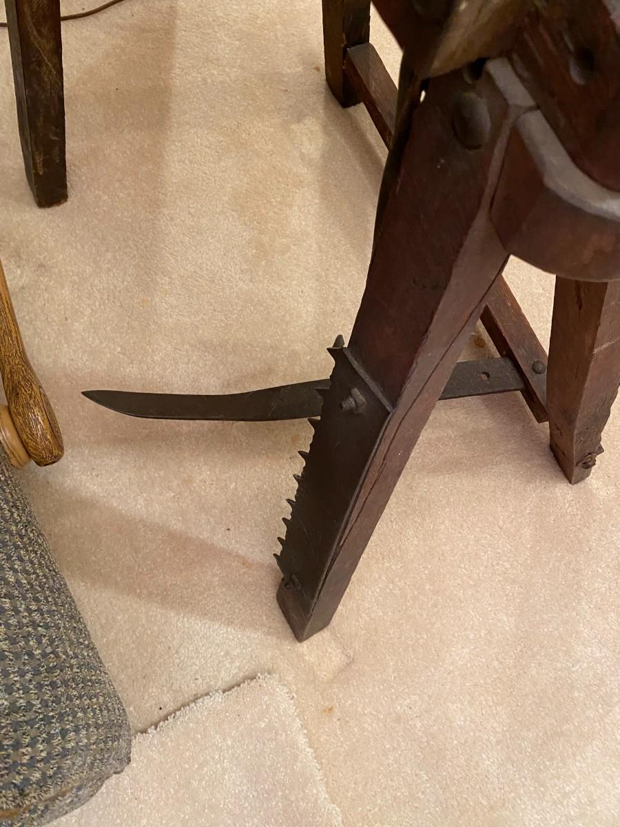 Has saw blade on one leg.