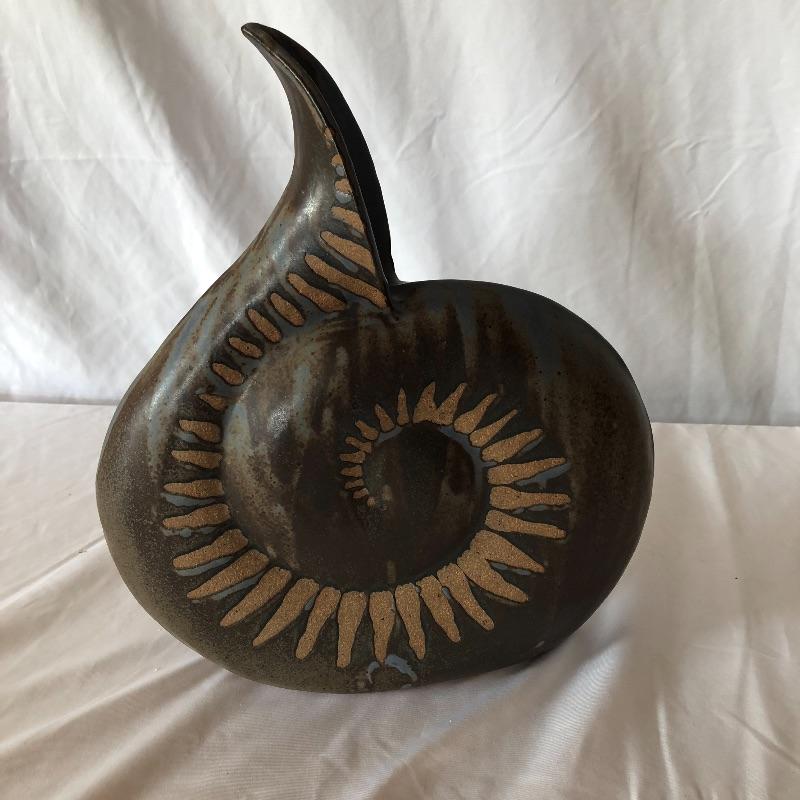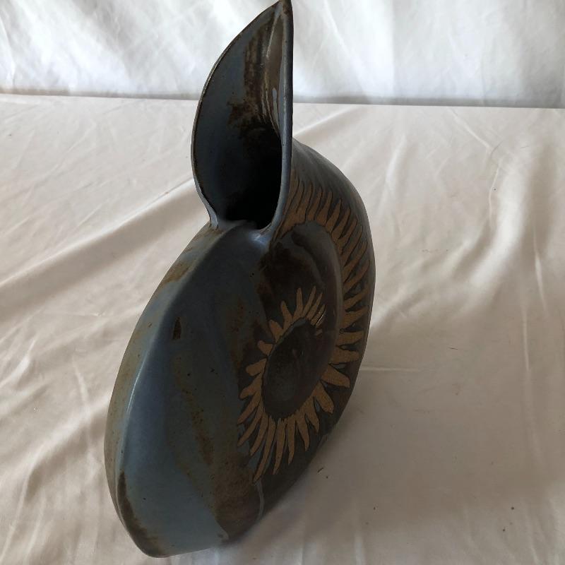 These unique vases are sure to catch anyone's eye! The snail - like vase features blues and browns in its' design and is signed from a
